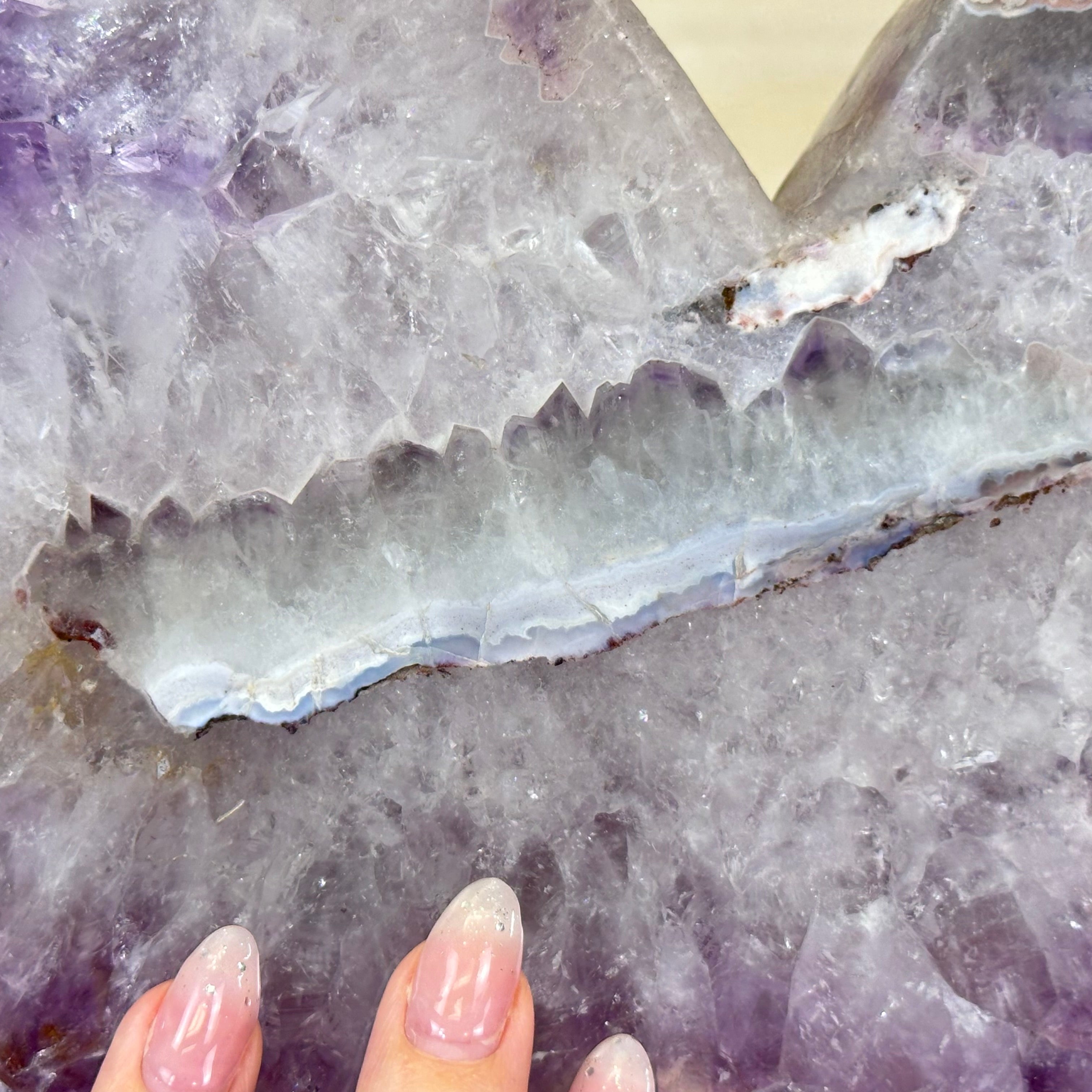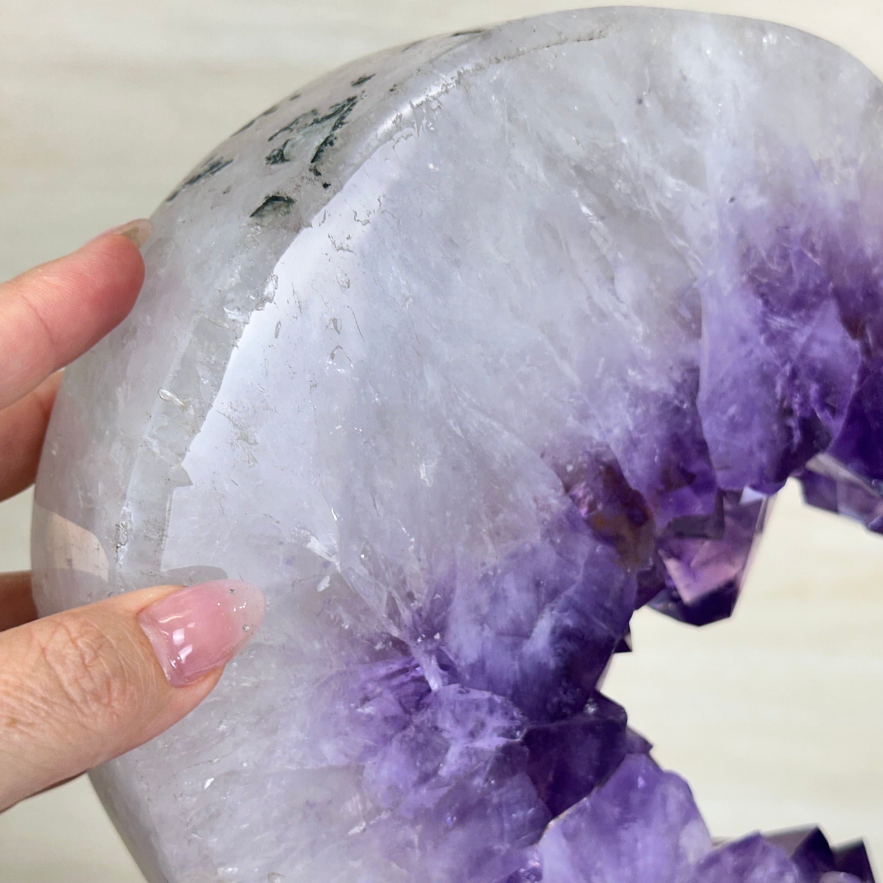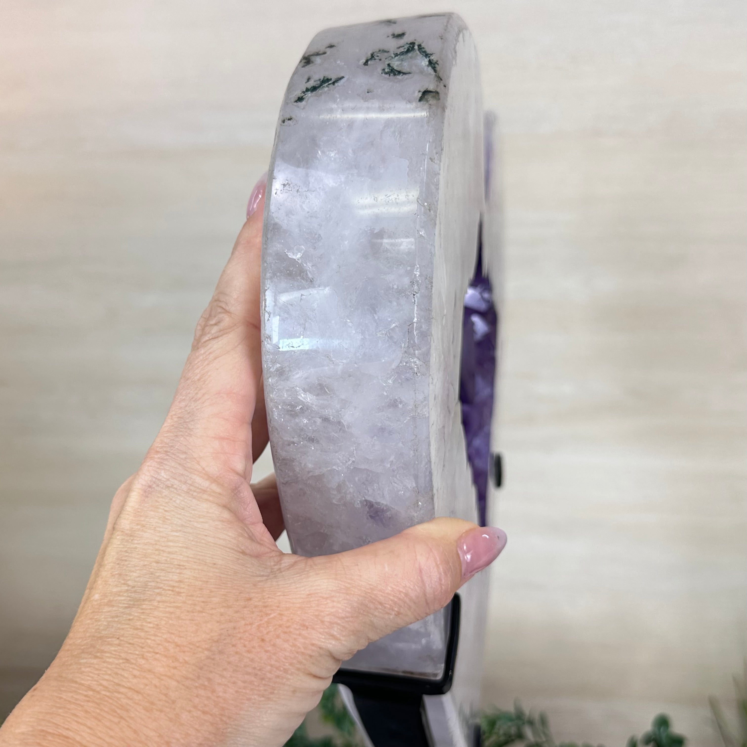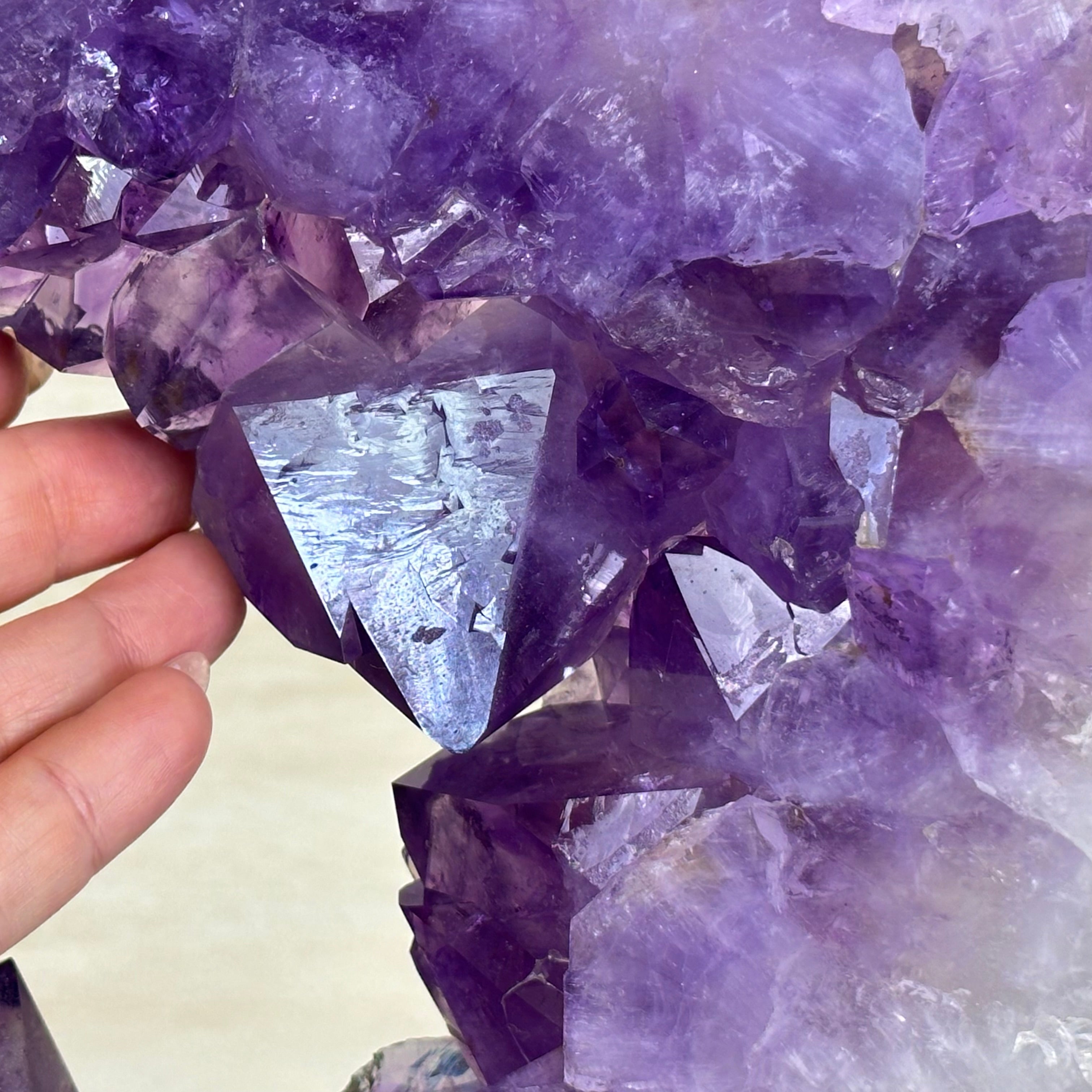 The more of these qualities an Amethyst possesses the more valuable it can be. Our Amethyst geode hearts for sale are top-quality and sure to impress. Here's the order we categorize our Amethyst geodes from higher to lower pricing: