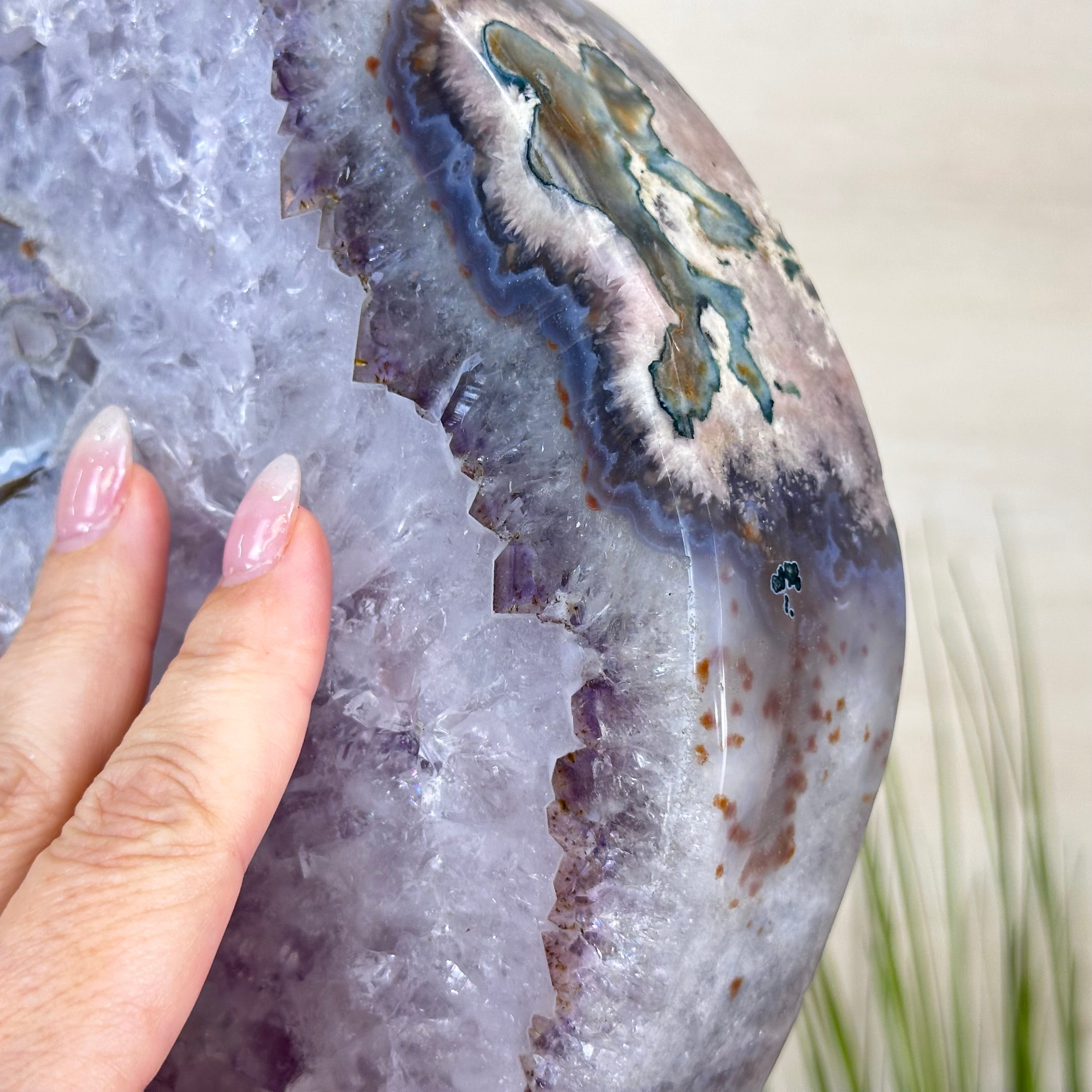 It also features vibrant violet colors and nicely shaped crystal points to admire for years to come. The polished heart shape will make the ultimate romantic gift to the one you love.
