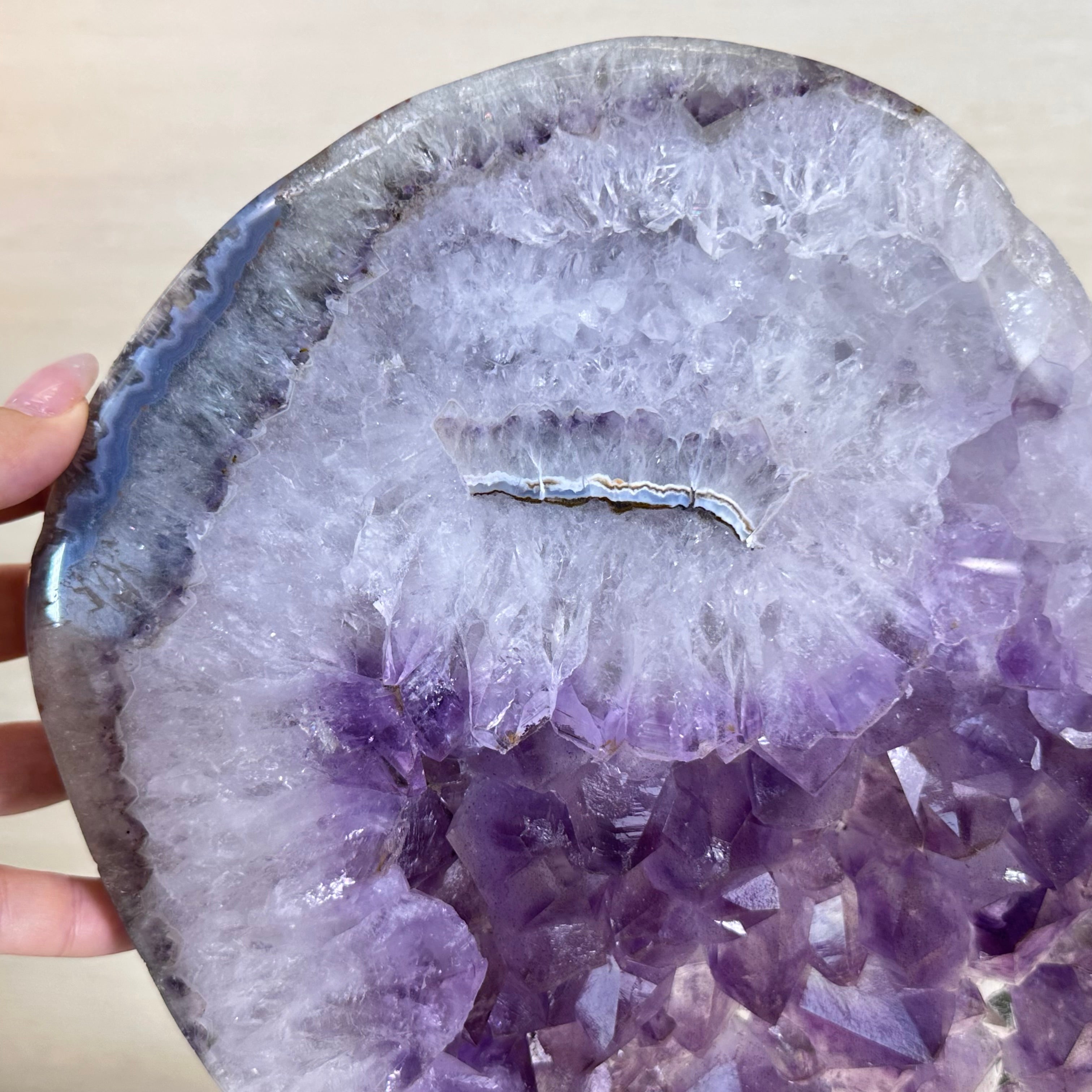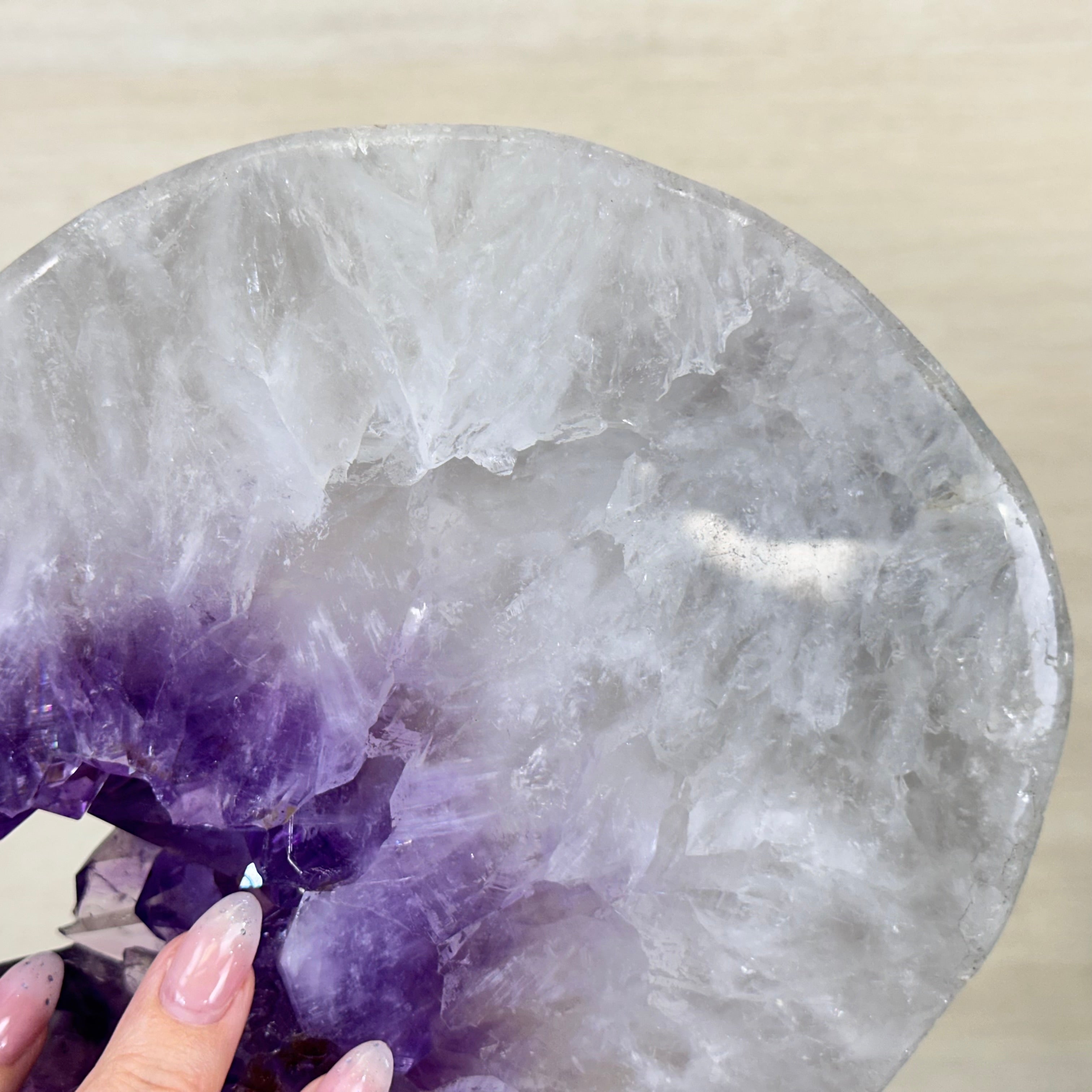 Amethyst quality can be subjective as many variables can play a role in determining a geode value. Qualities you should consider when shopping for an amethyst heart are (not in any particular order):