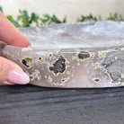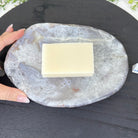Elegant and versatile, this White Amethyst decorative bowl is handcrafted from natural Brazilian stone and polished to reveal soft lilac and white tones with subtle crystal textures. Use it as a soap dish, jewelry and ring holder, or a decorative catch-all for small items like crystals, keys, or loose change. Its smooth, durable surface makes it ideal for bathroom countertops, bedside tables, or entryway décor.