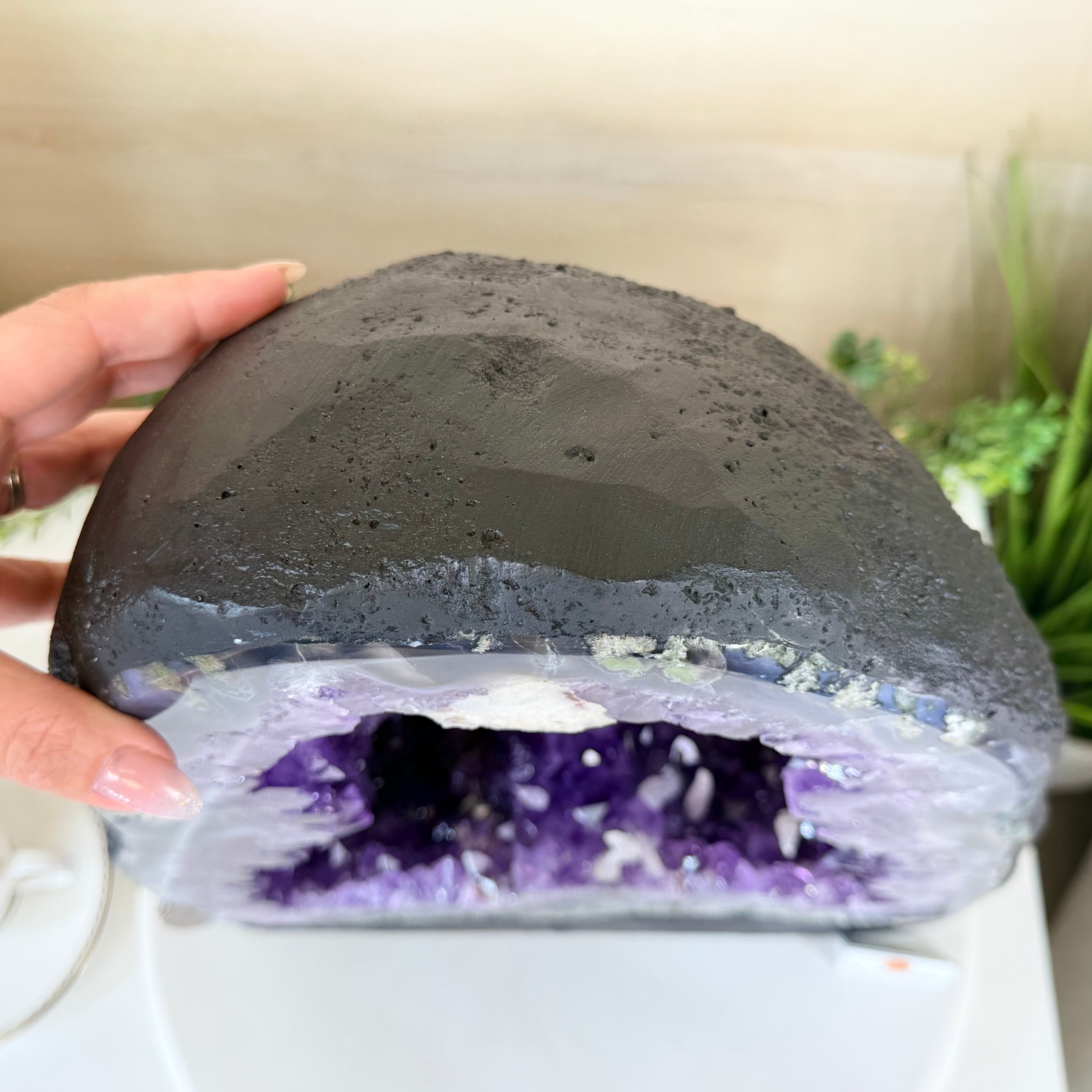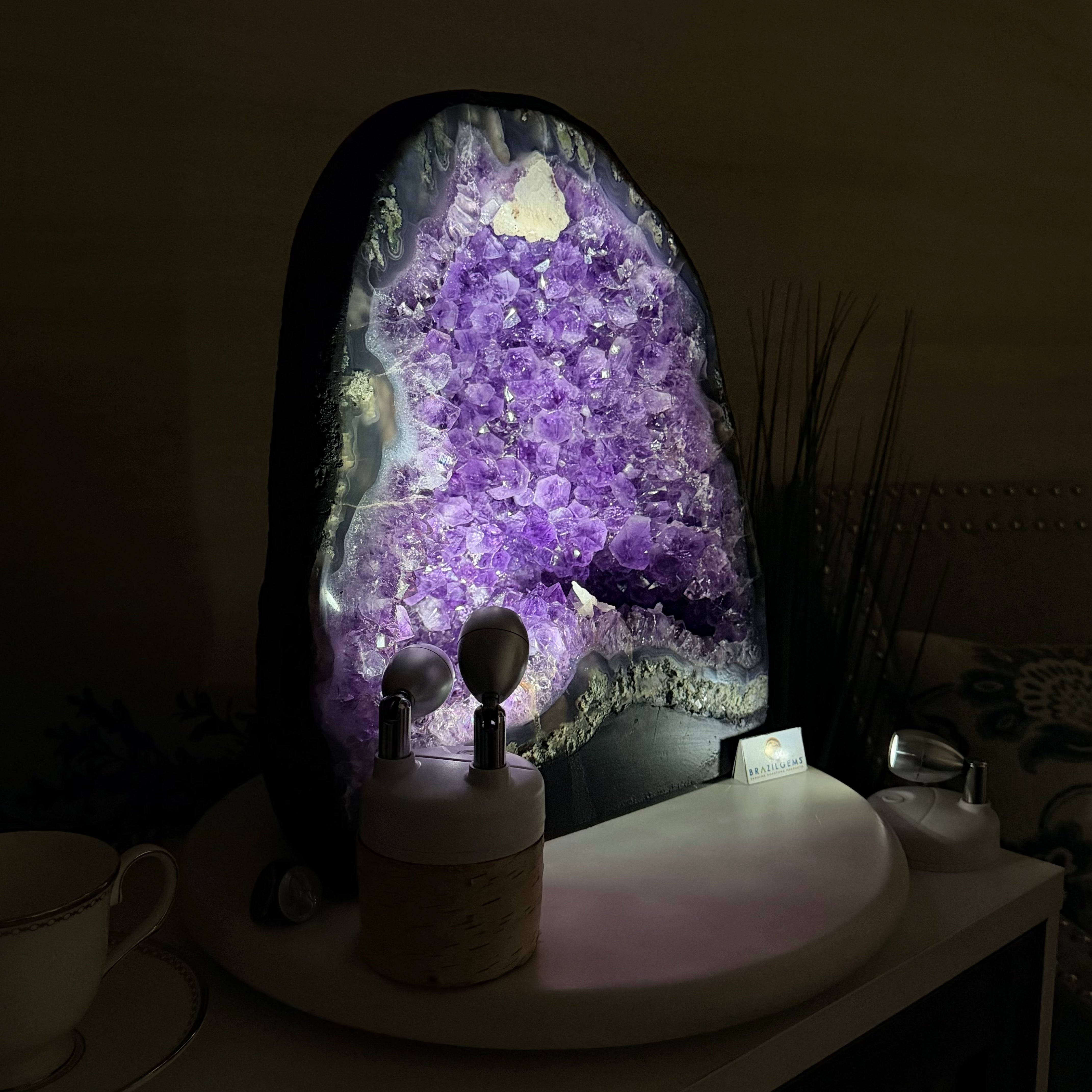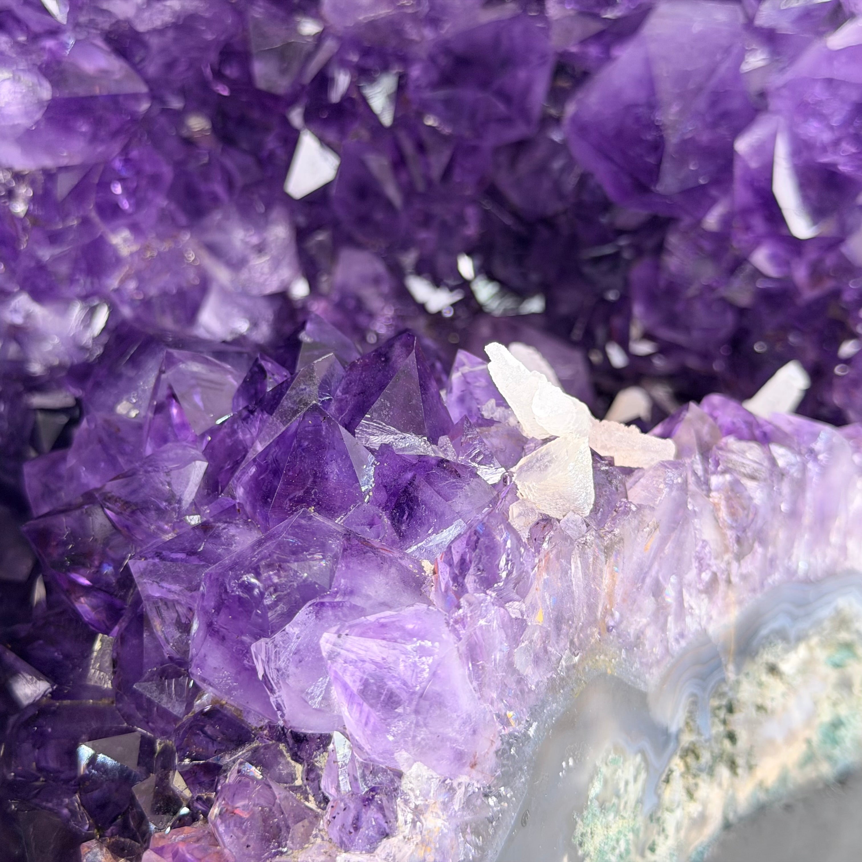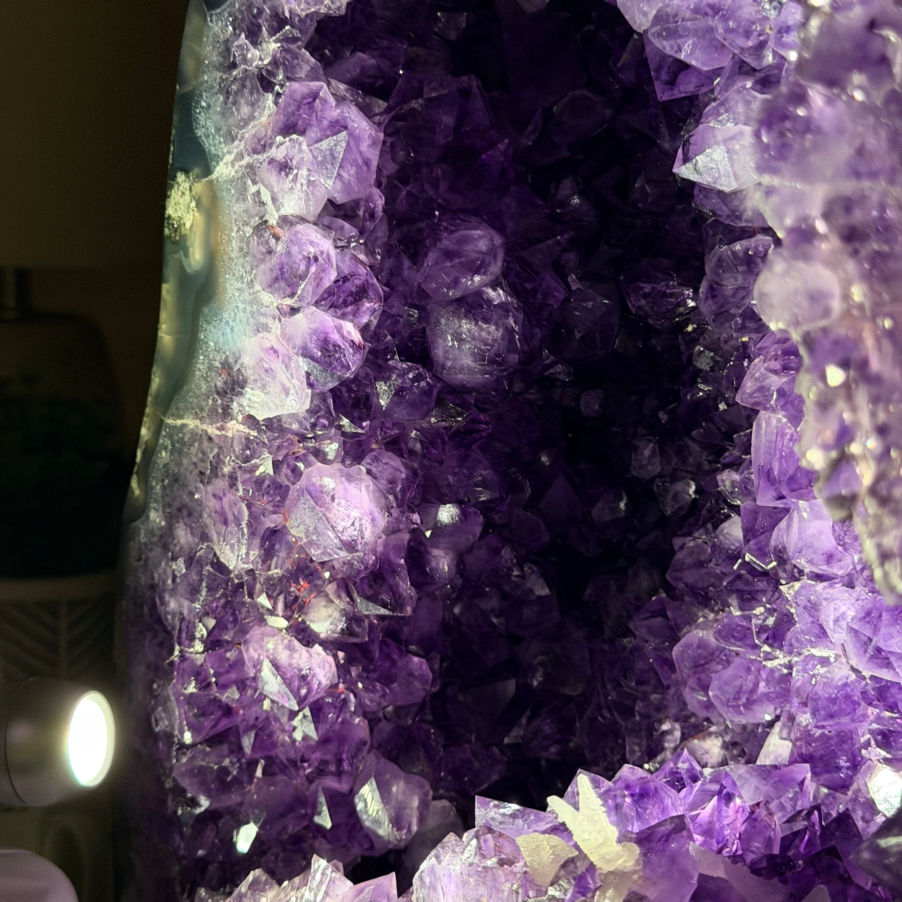 Sourced directly from Amethyst mine owners in Brazil, this magnificent piece showcases nature’s artistry at its finest, formed over millions of years in ancient volcanic cavities.