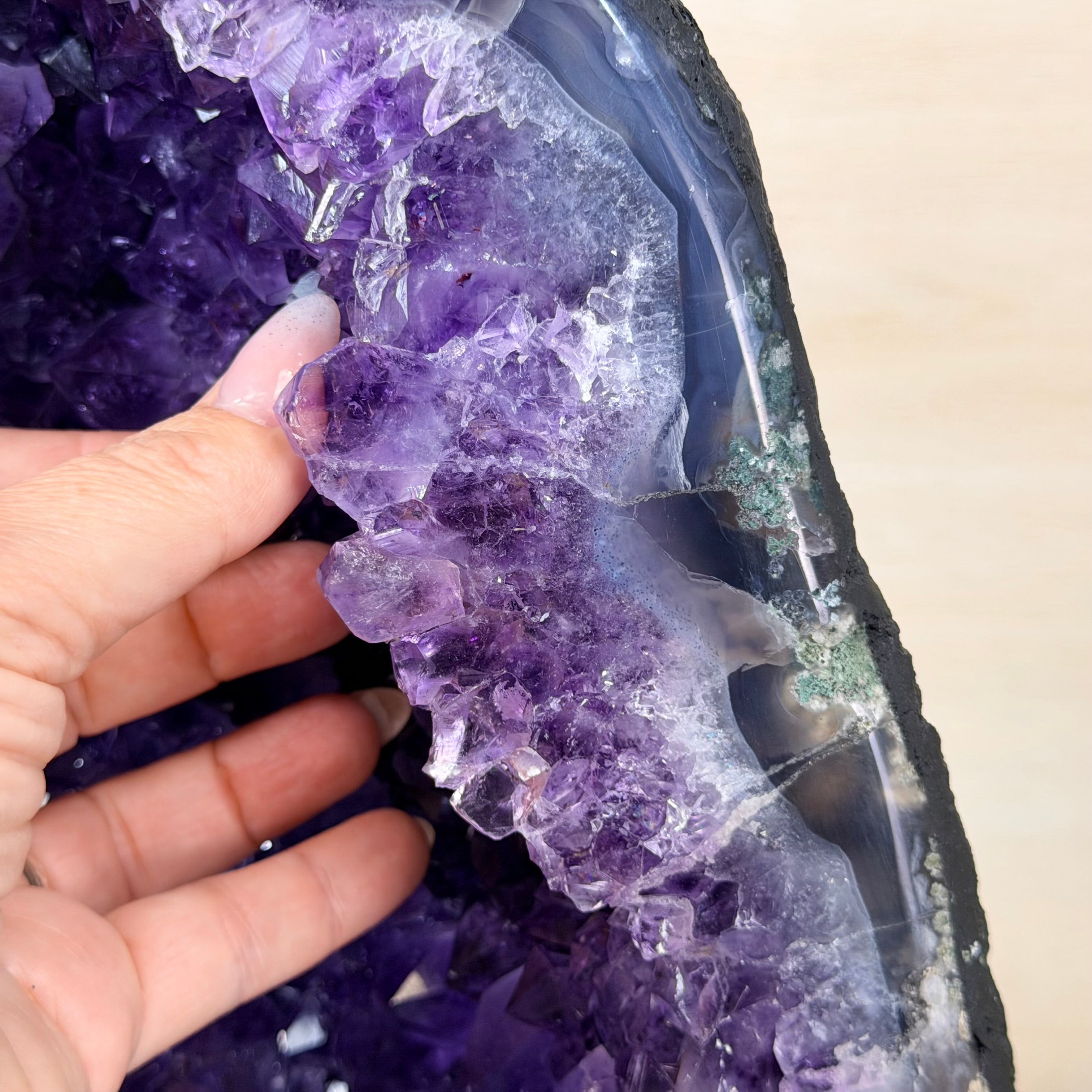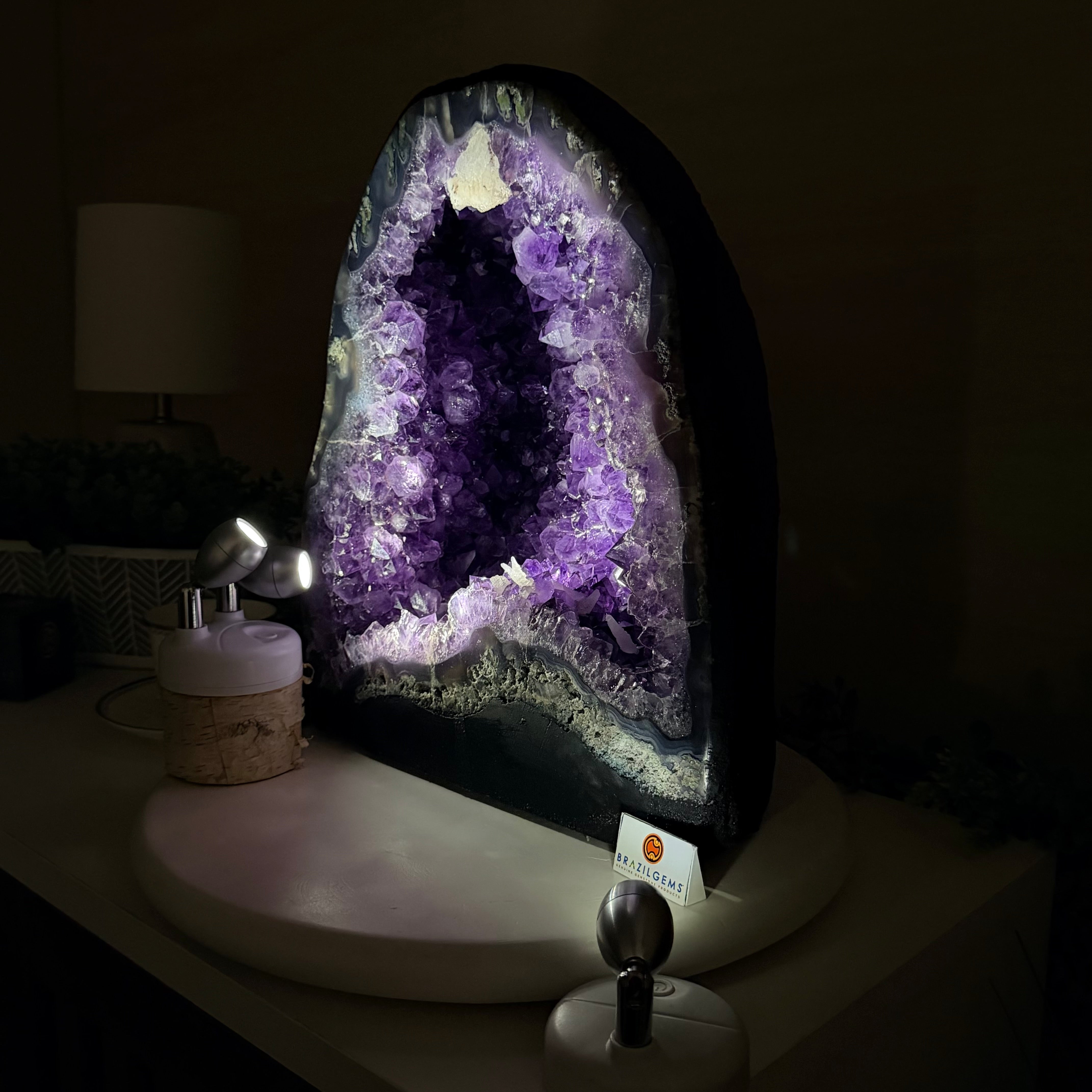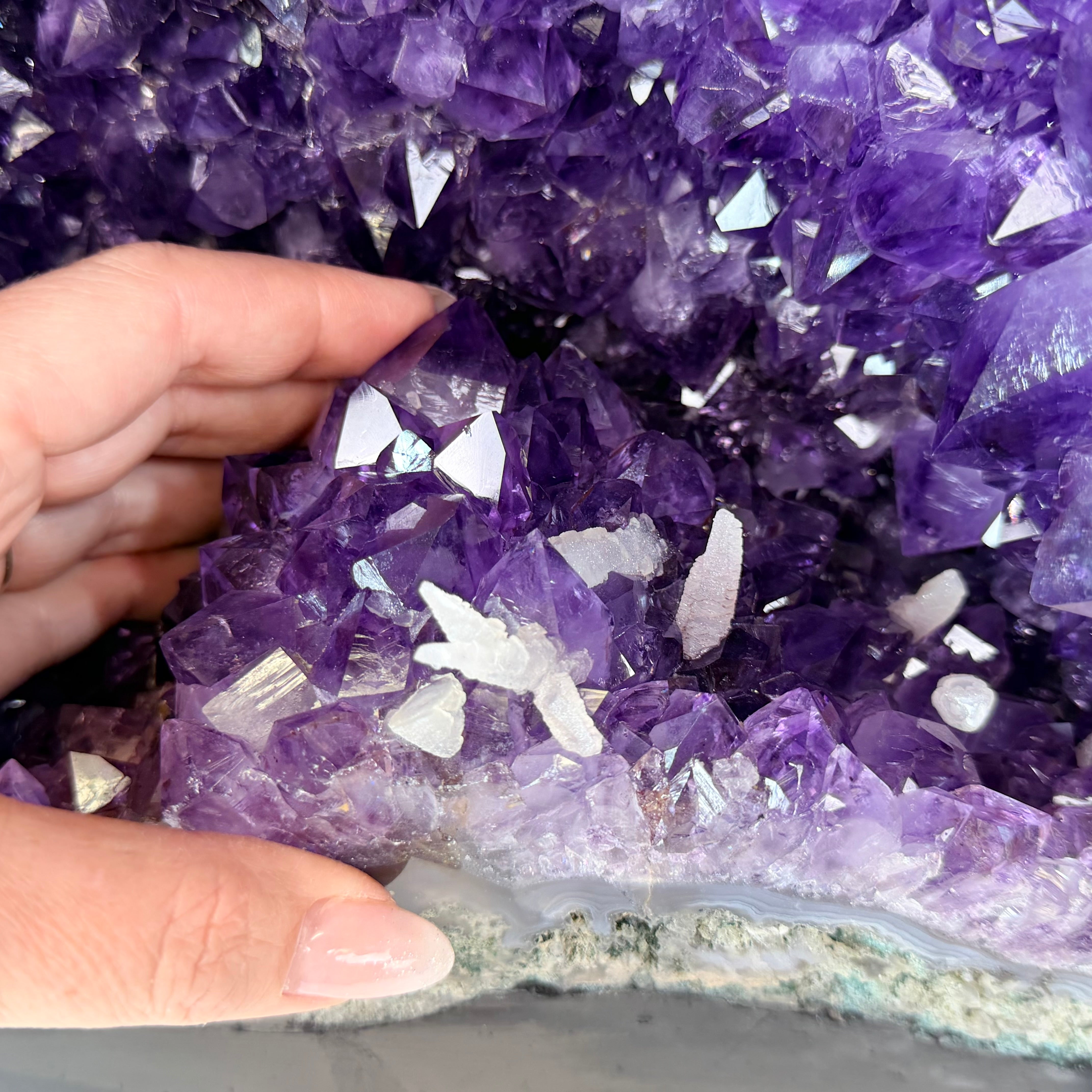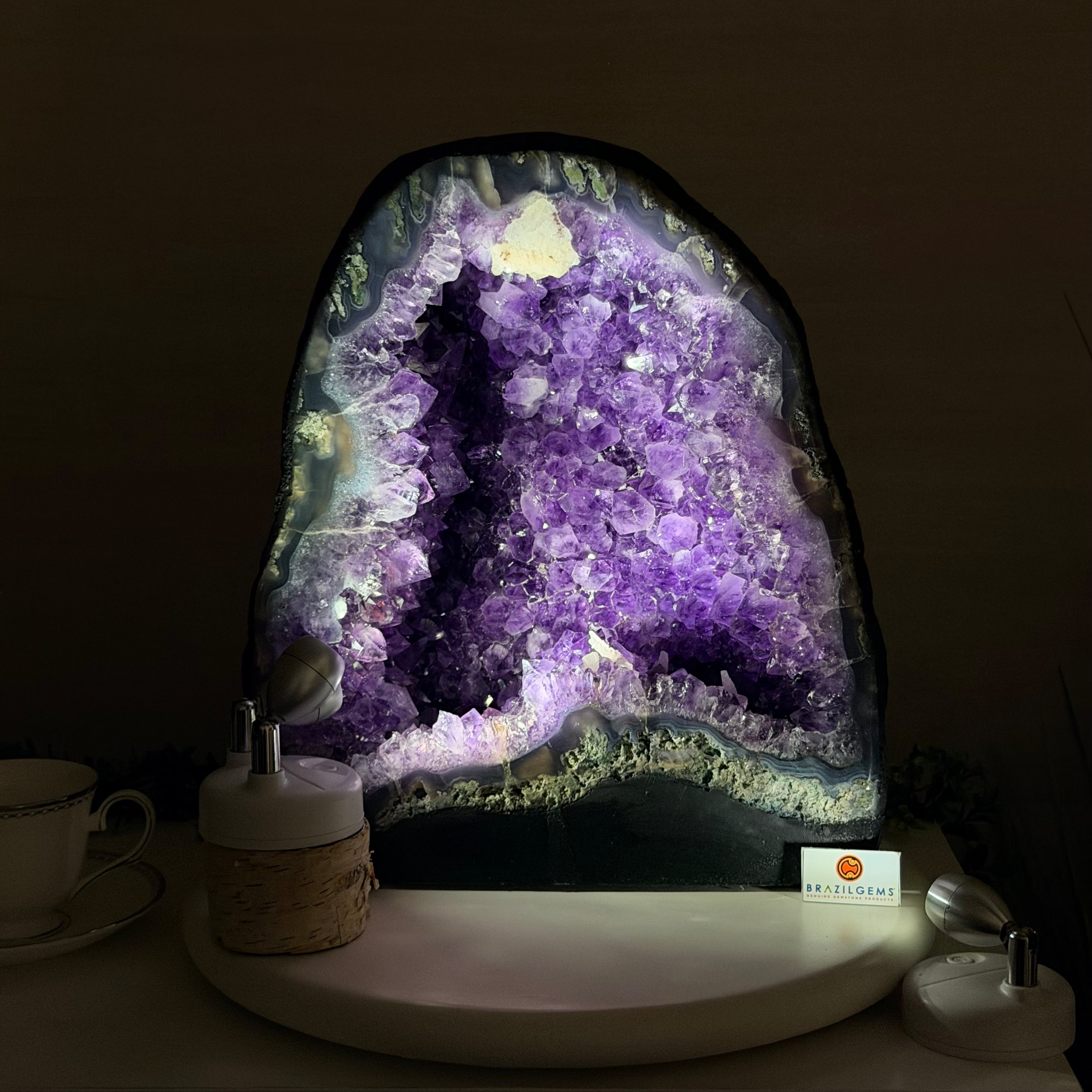 Sourced directly from Amethyst mine owners in Brazil, this magnificent piece showcases nature’s artistry at its finest, formed over millions of years in ancient volcanic cavities.