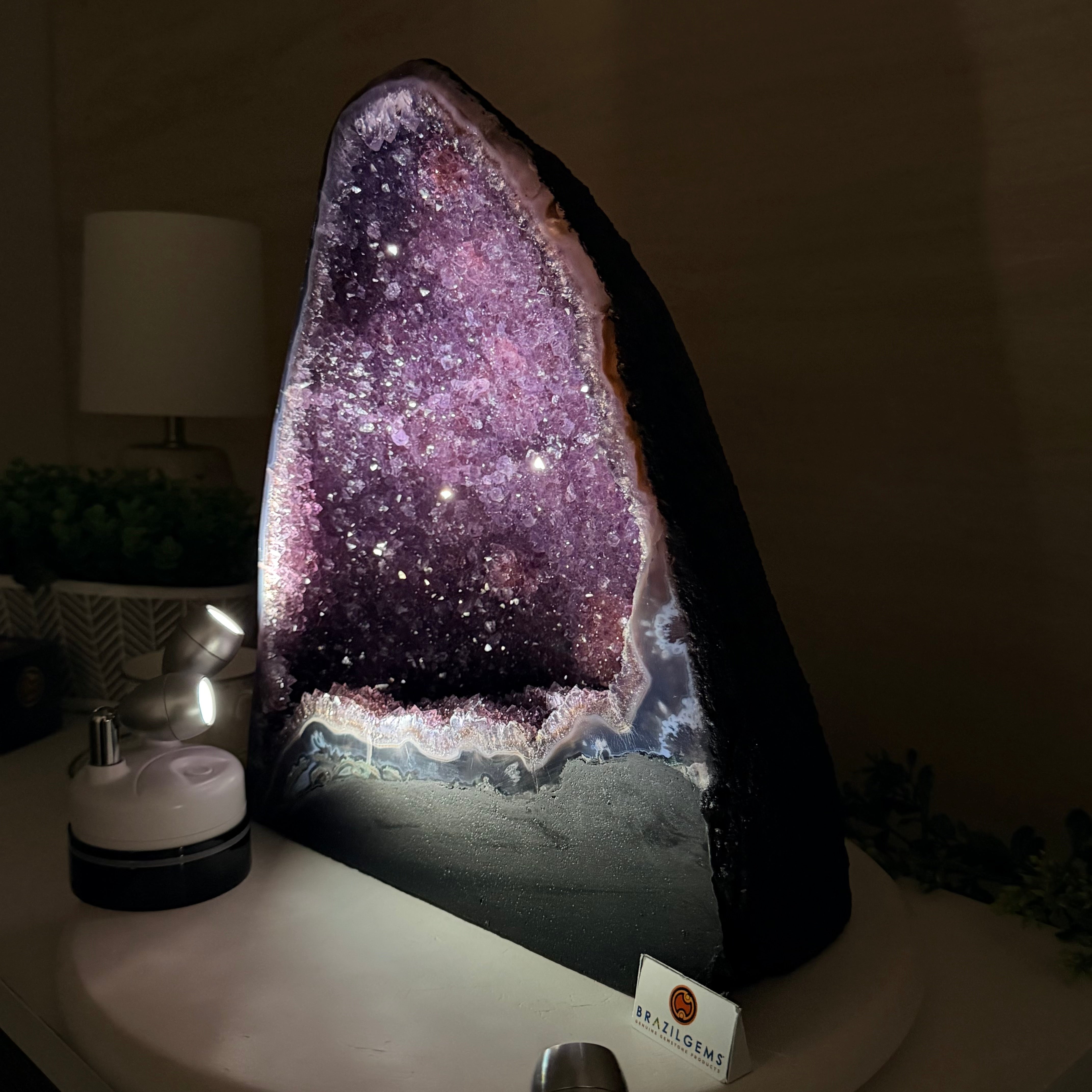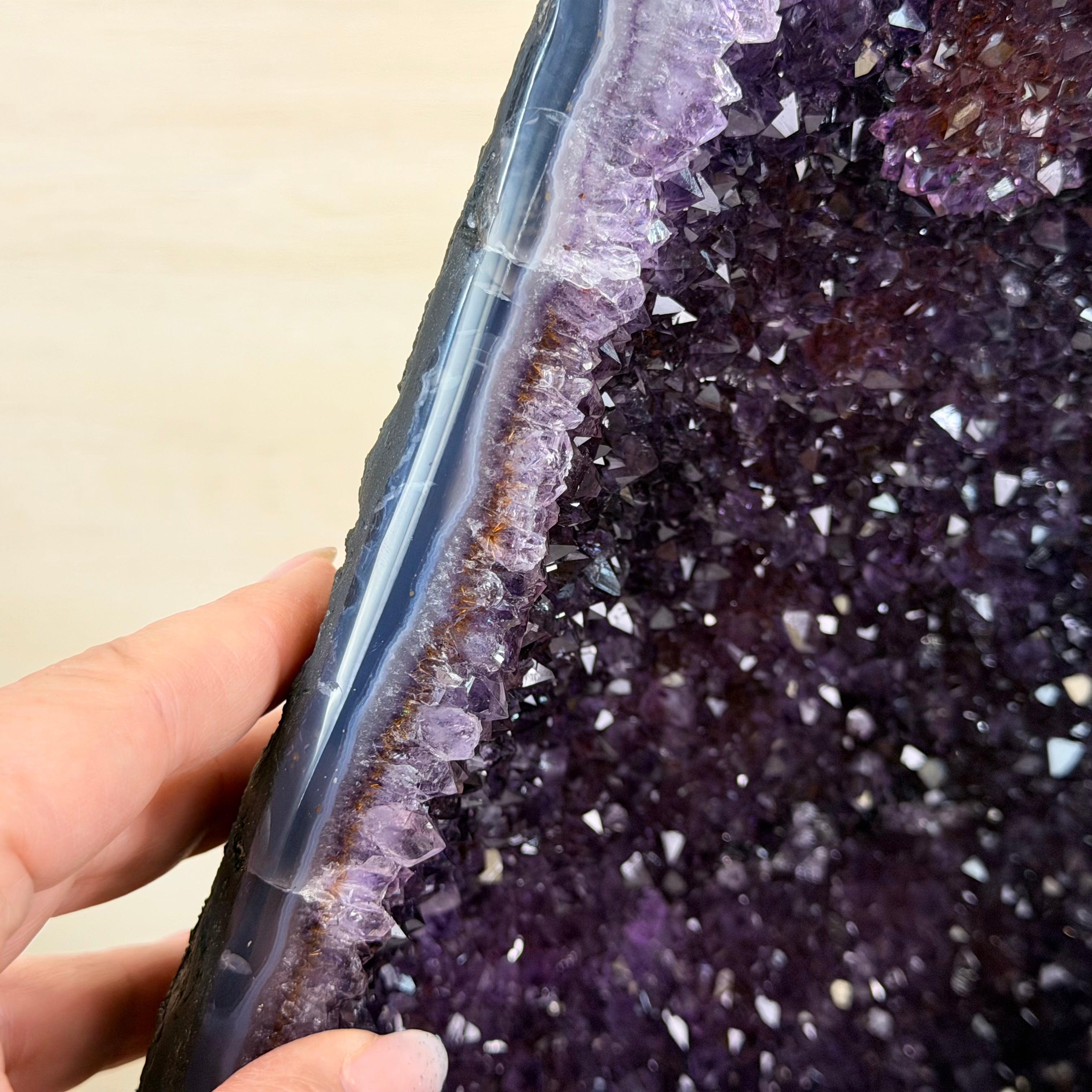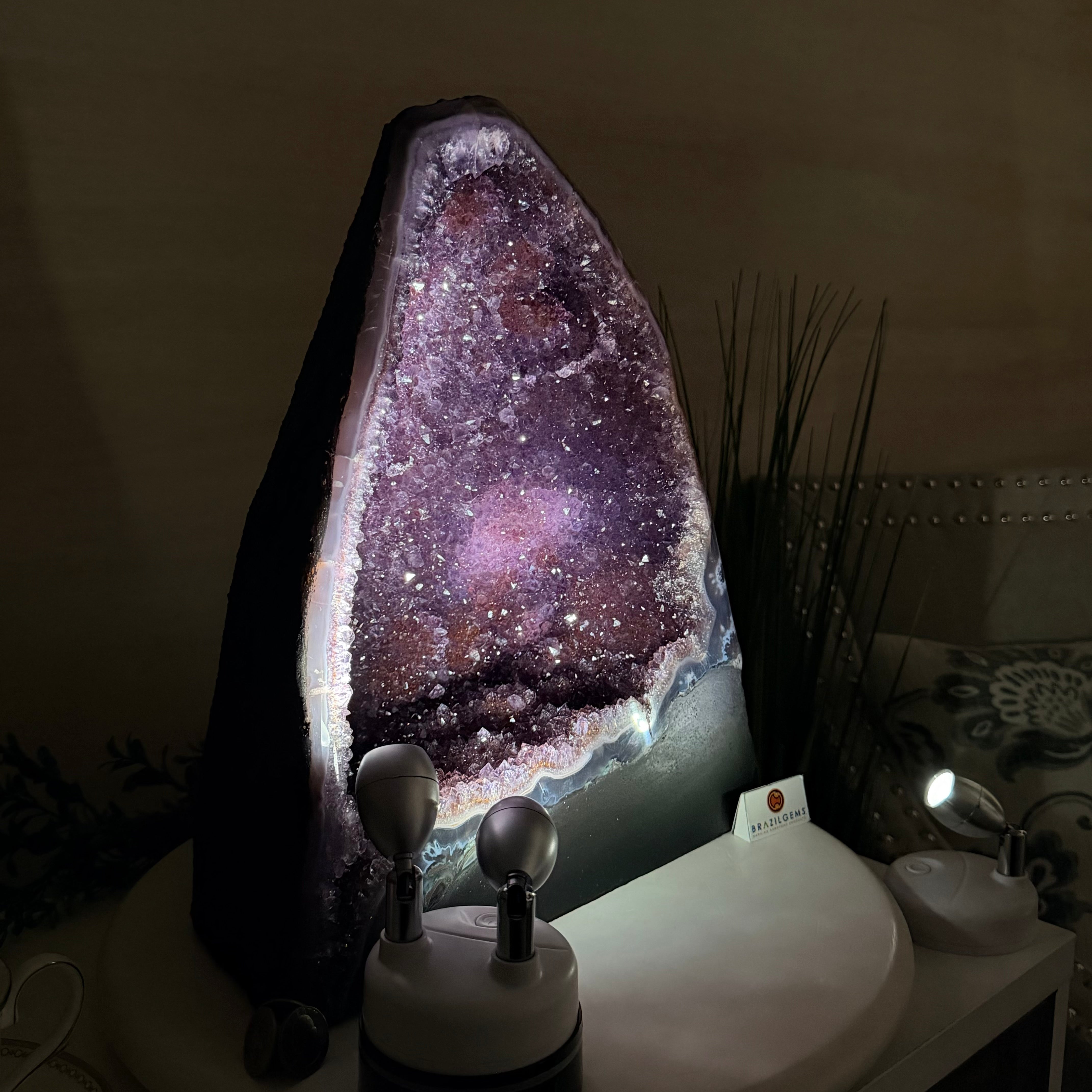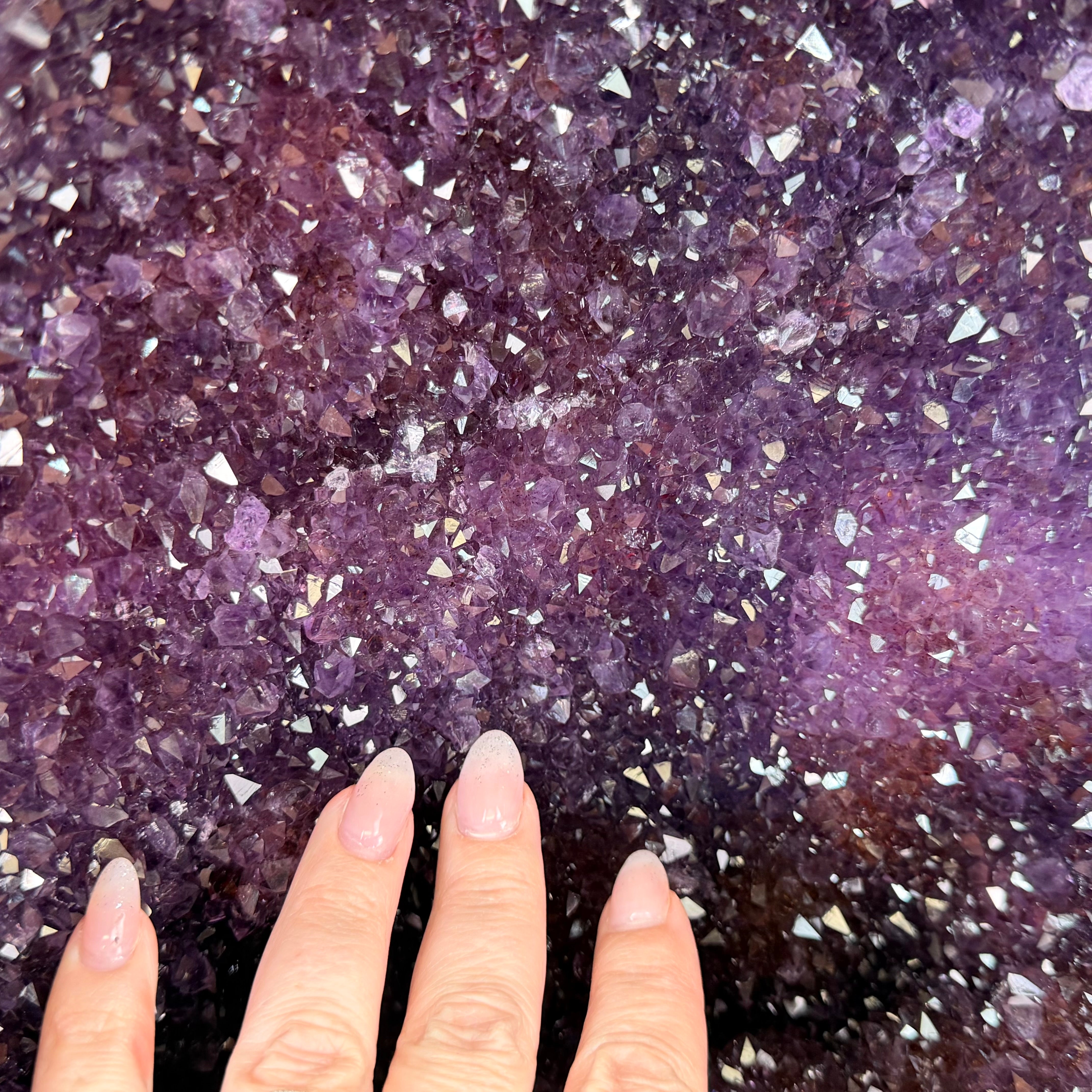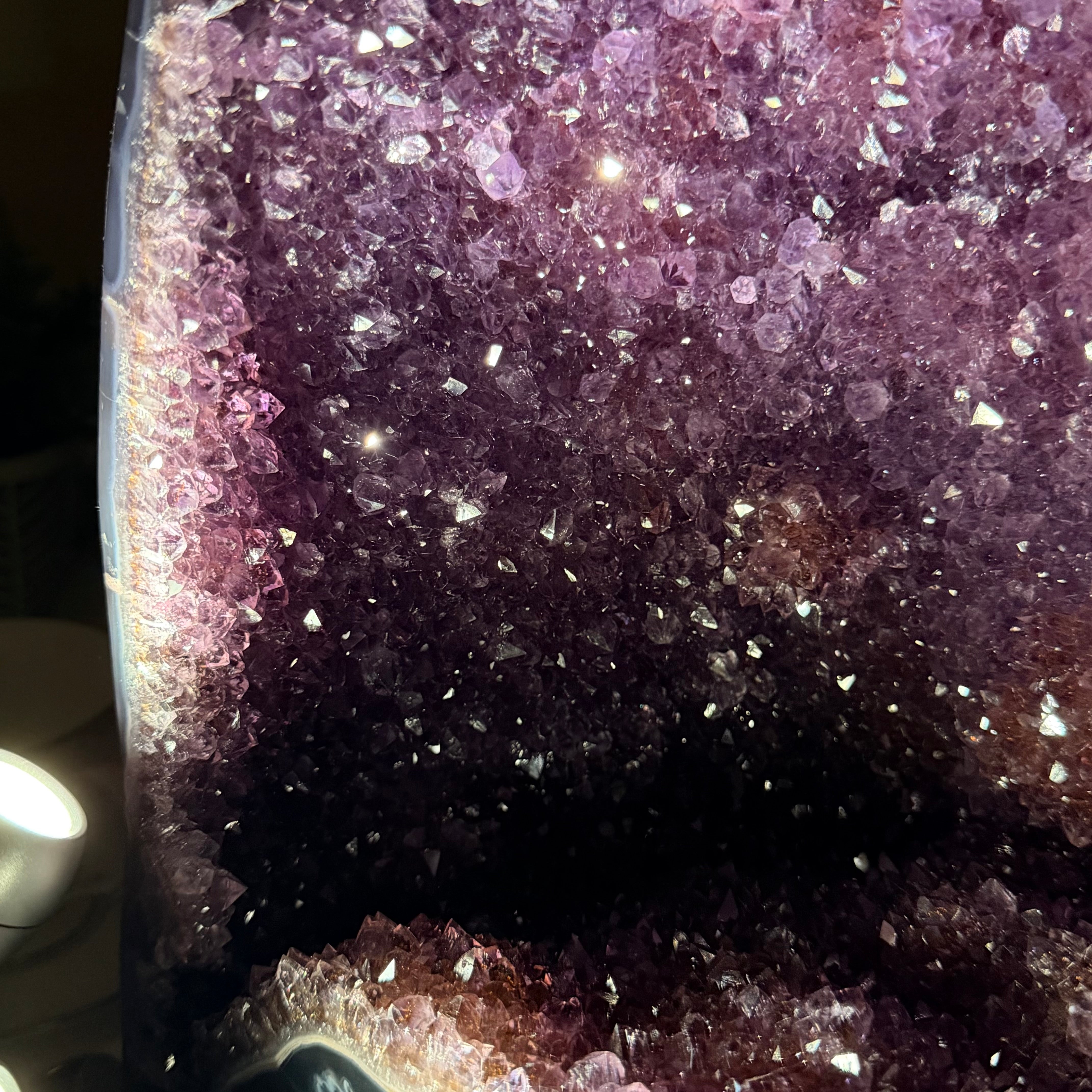 Sourced directly from Amethyst mine owners in Brazil, this magnificent piece showcases nature’s artistry at its finest, formed over millions of years in ancient volcanic cavities.