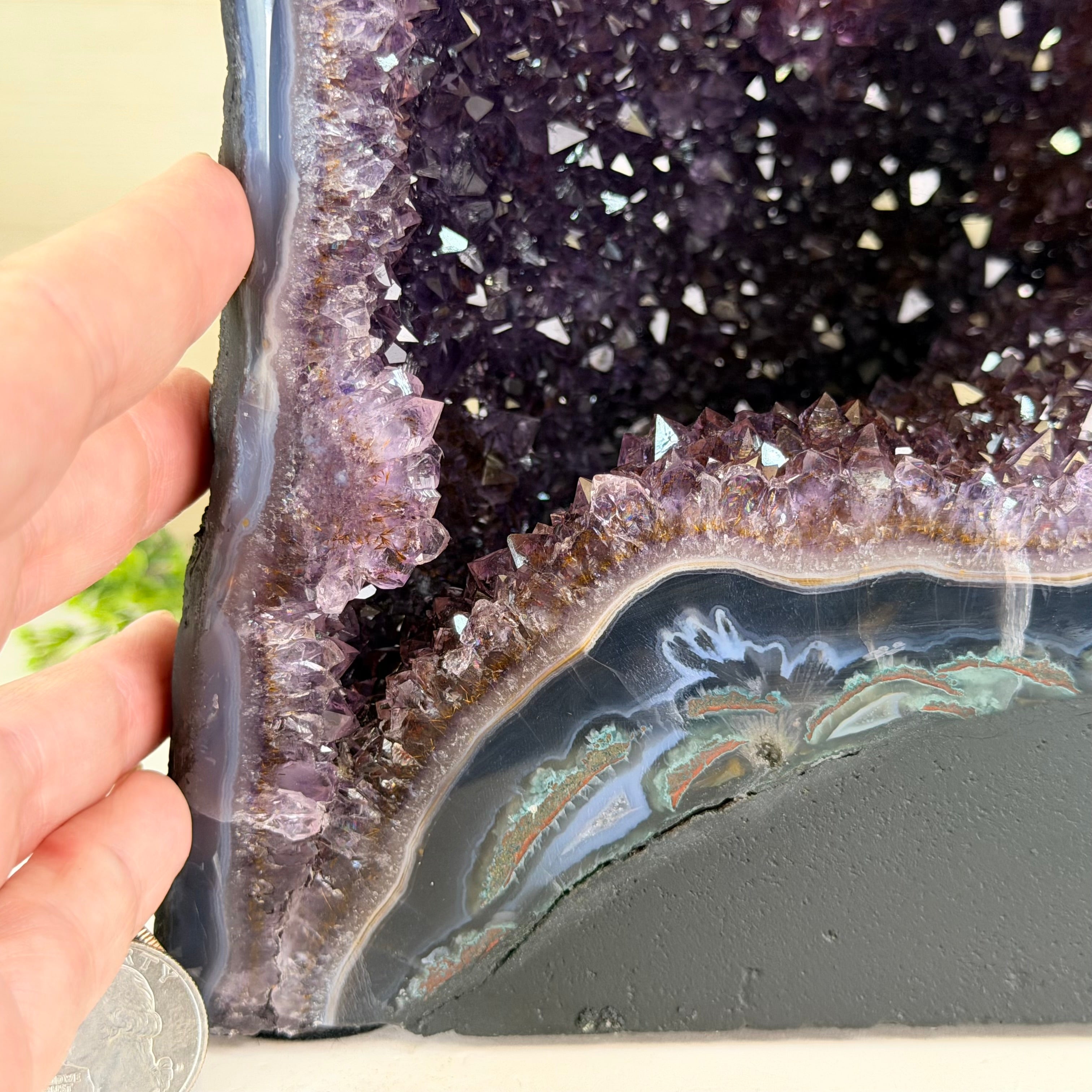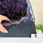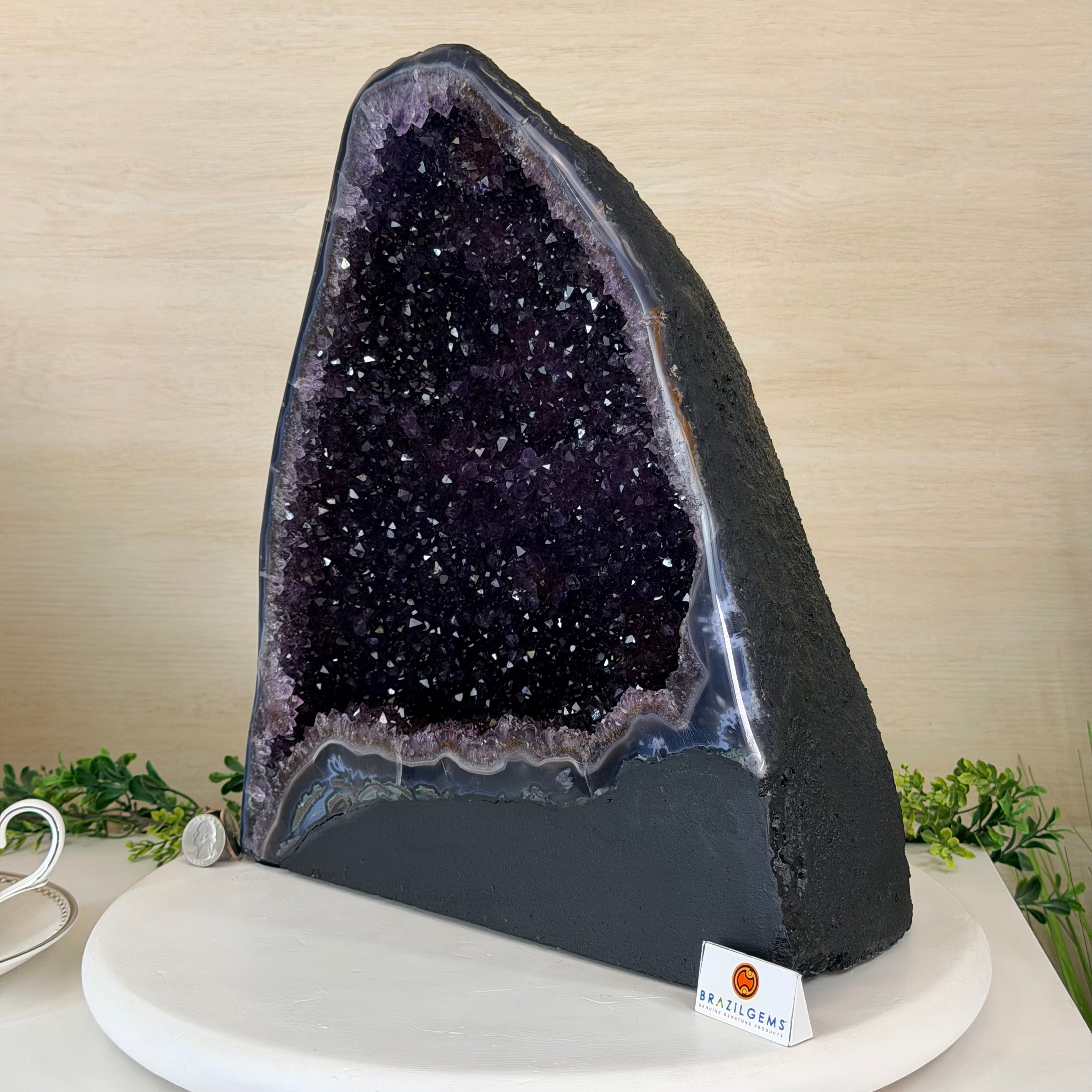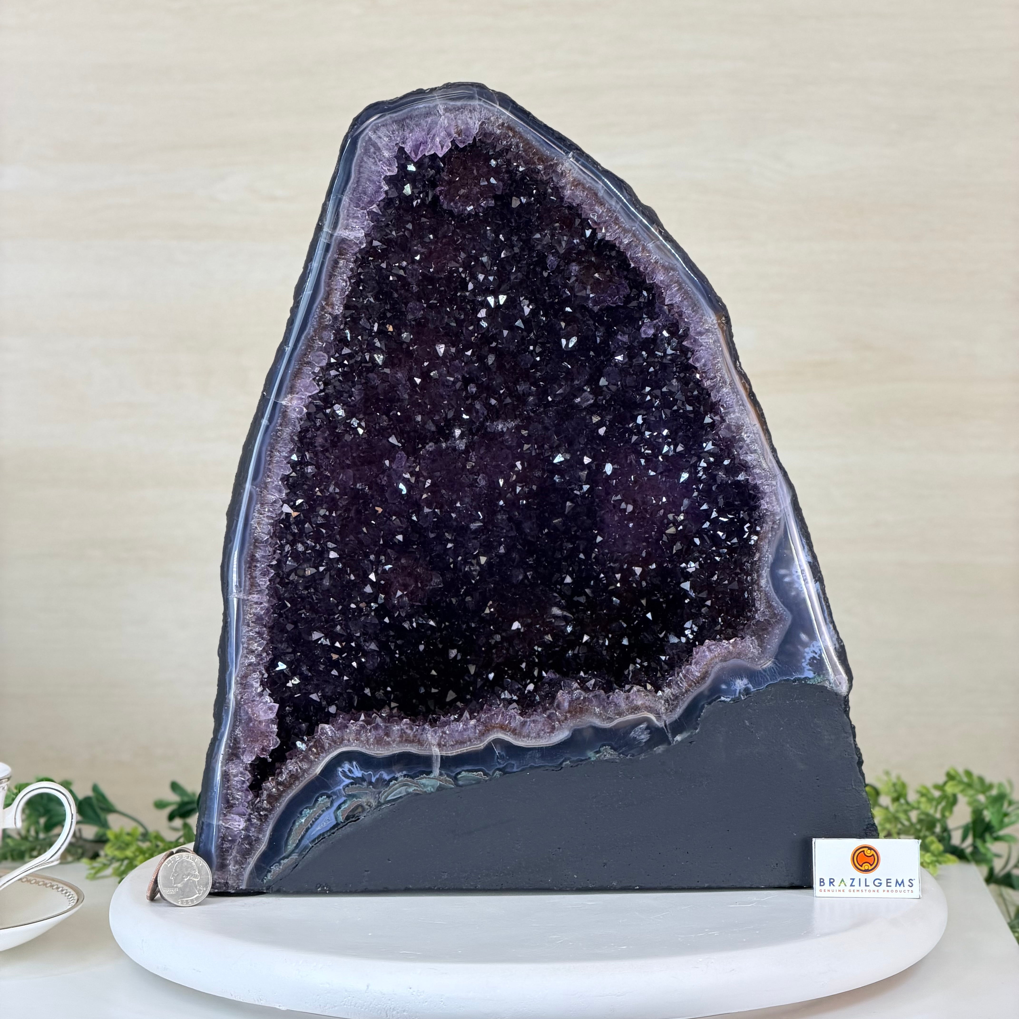 Disclaimer: This is a natural gemstone crystal sold by Brazil Gems® as is and as you see it in its images and video. It is the exact one you will receive. It may contain natural imperfections as well as imperfections, broken edges and repairs from the extraction, polishing and prepping processes. In order for it to stand on its own, the back and bottom have been reinforced with a small amount of cement then painted black. At Brazil Gems® we make every effort to get measurements as exact as possible but they are done by human hands and eyes and therefore may have minor discrepancies.
