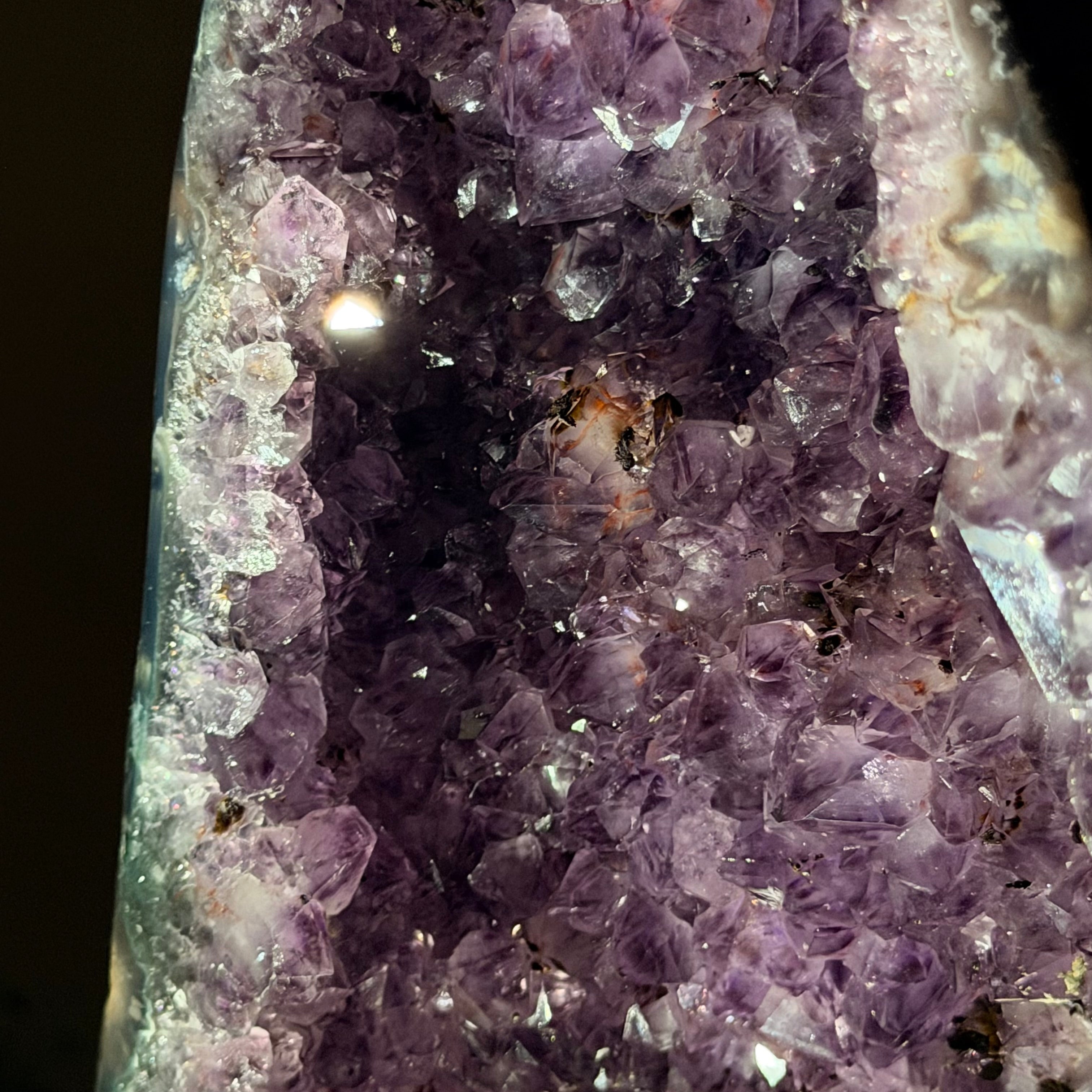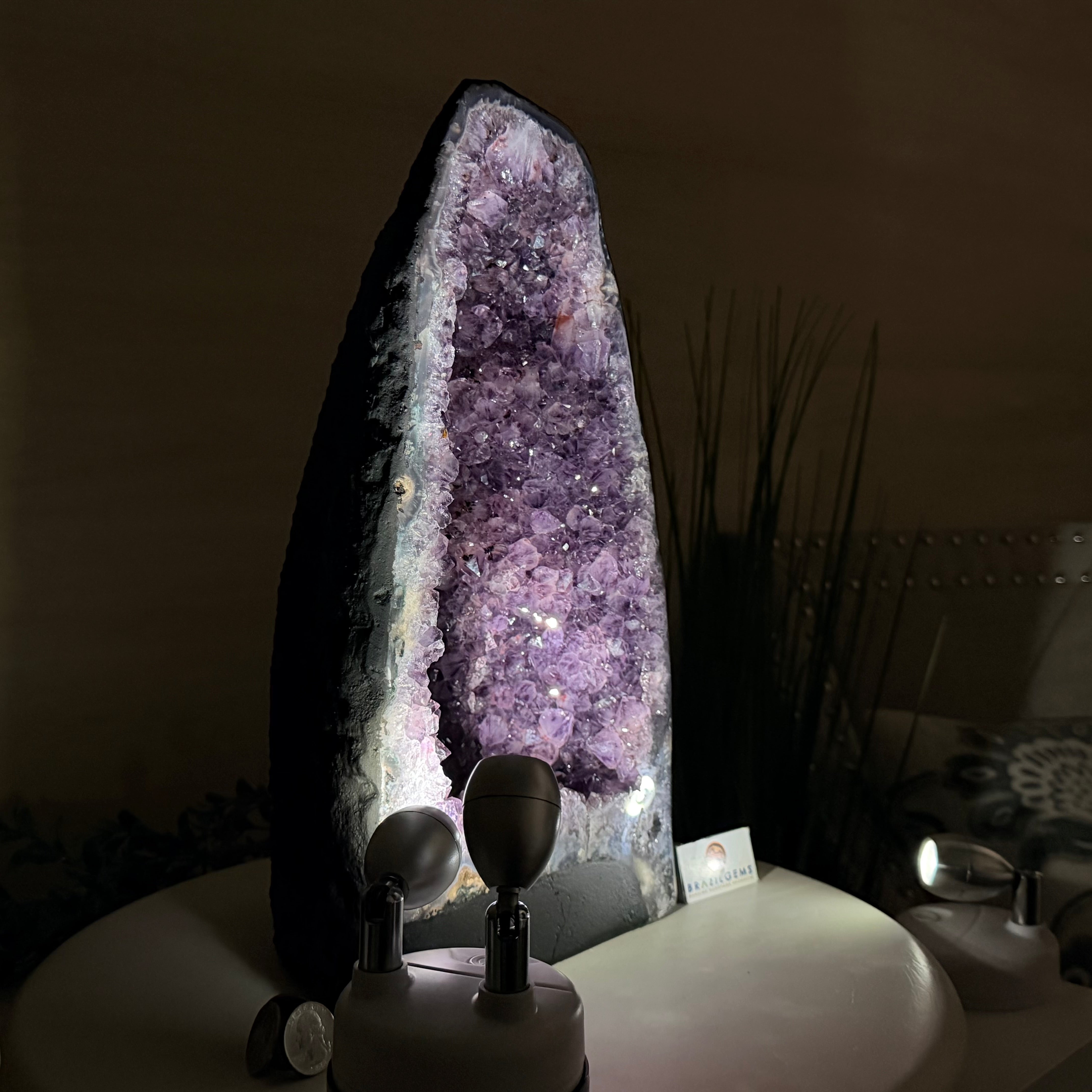 Sourced directly from Amethyst mine owners in Brazil, this magnificent piece showcases nature’s artistry at its finest, formed over millions of years in ancient volcanic cavities.