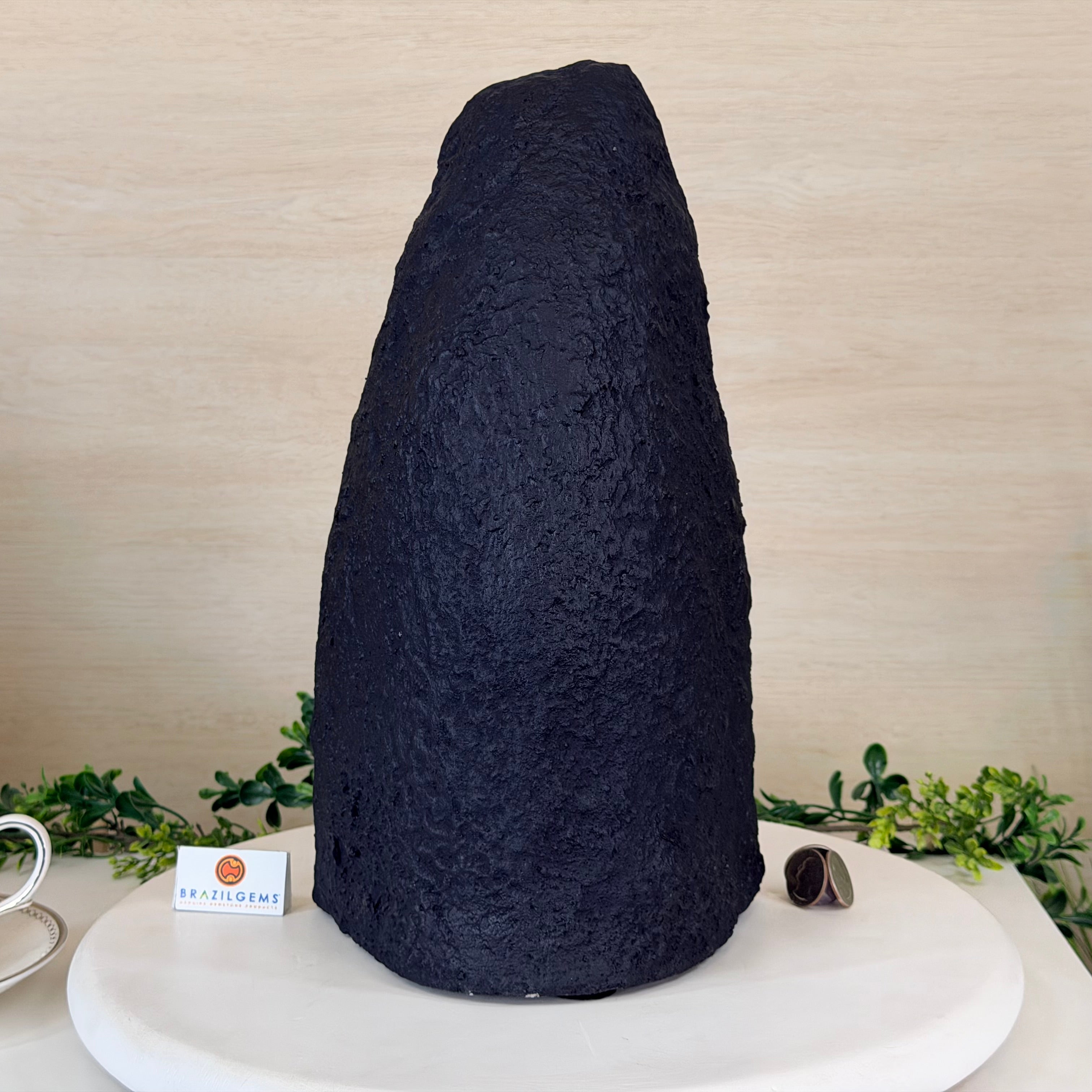 This is a natural gemstone crystal sold by Brazil Gems® as is and as you see it in its images and video. It is the exact one you will receive. It may contain natural imperfections as well as imperfections, broken edges and repairs from the extraction, polishing and prepping processes. In order for it to stand on its own, the back and bottom have been reinforced with a small amount of cement then painted black. At Brazil Gems® we make every effort to get measurements as exact as possible but they are done by human hands and eyes and therefore may have minor discrepancies.