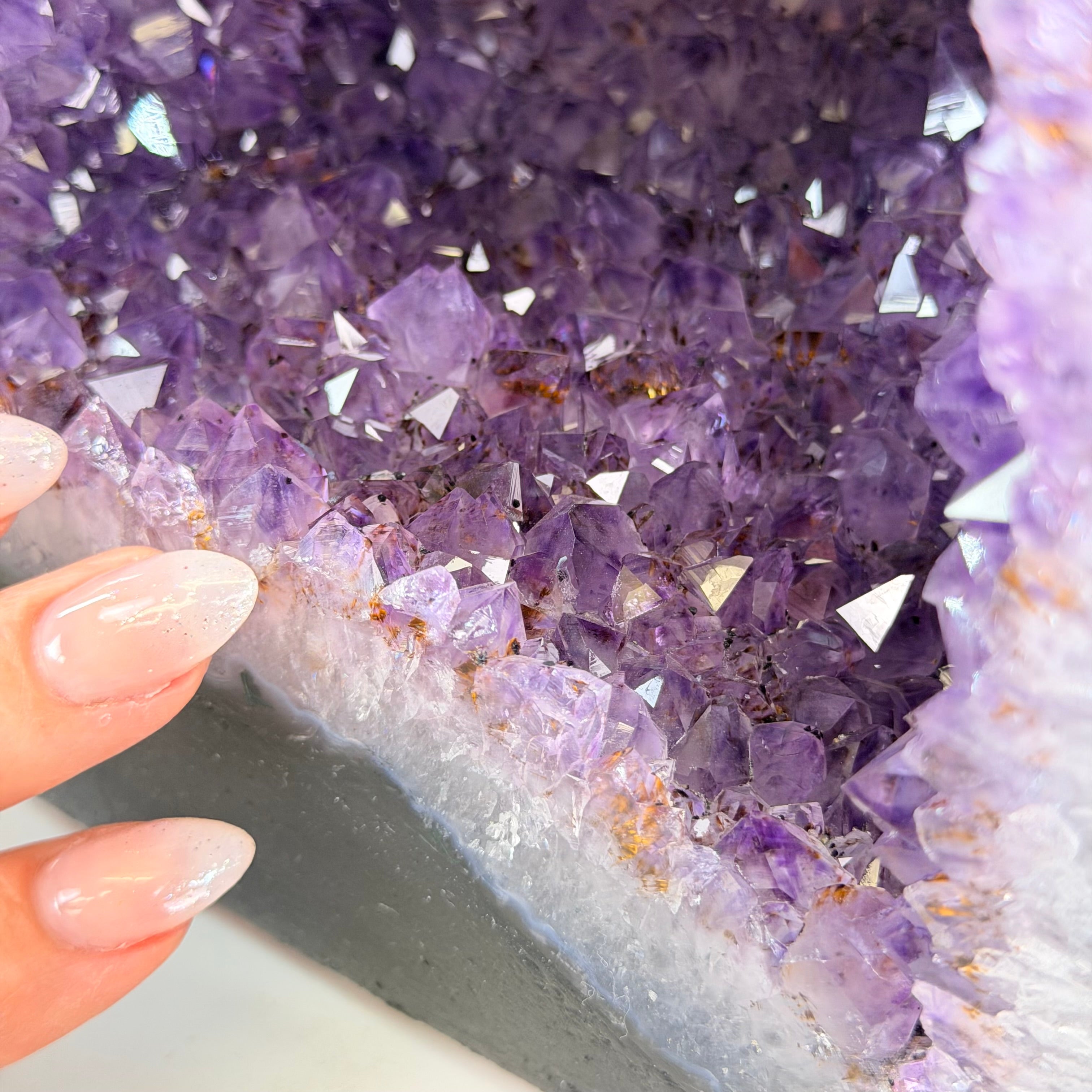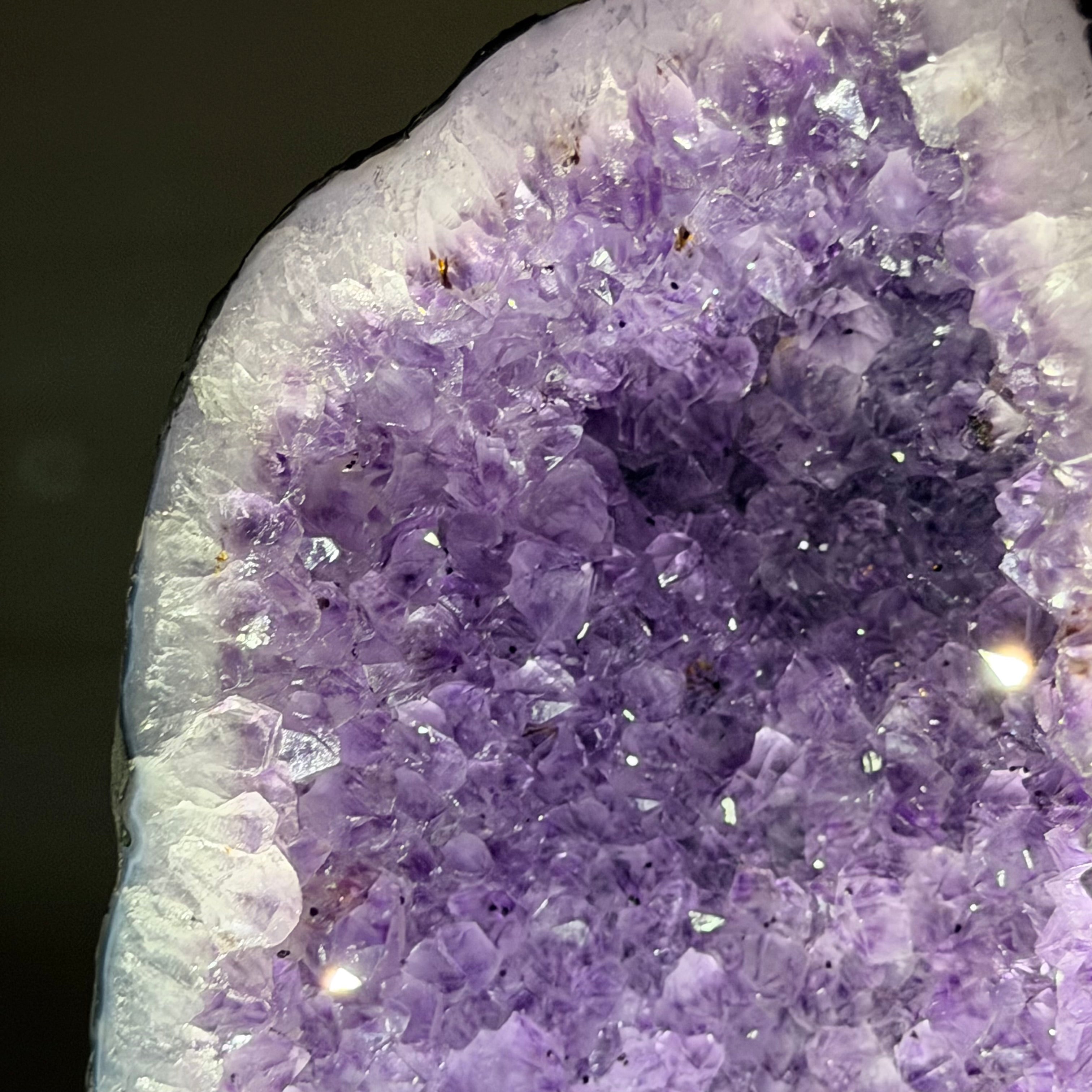 Sourced directly from Amethyst mine owners in Brazil, this magnificent piece showcases nature’s artistry at its finest, formed over millions of years in ancient volcanic cavities.