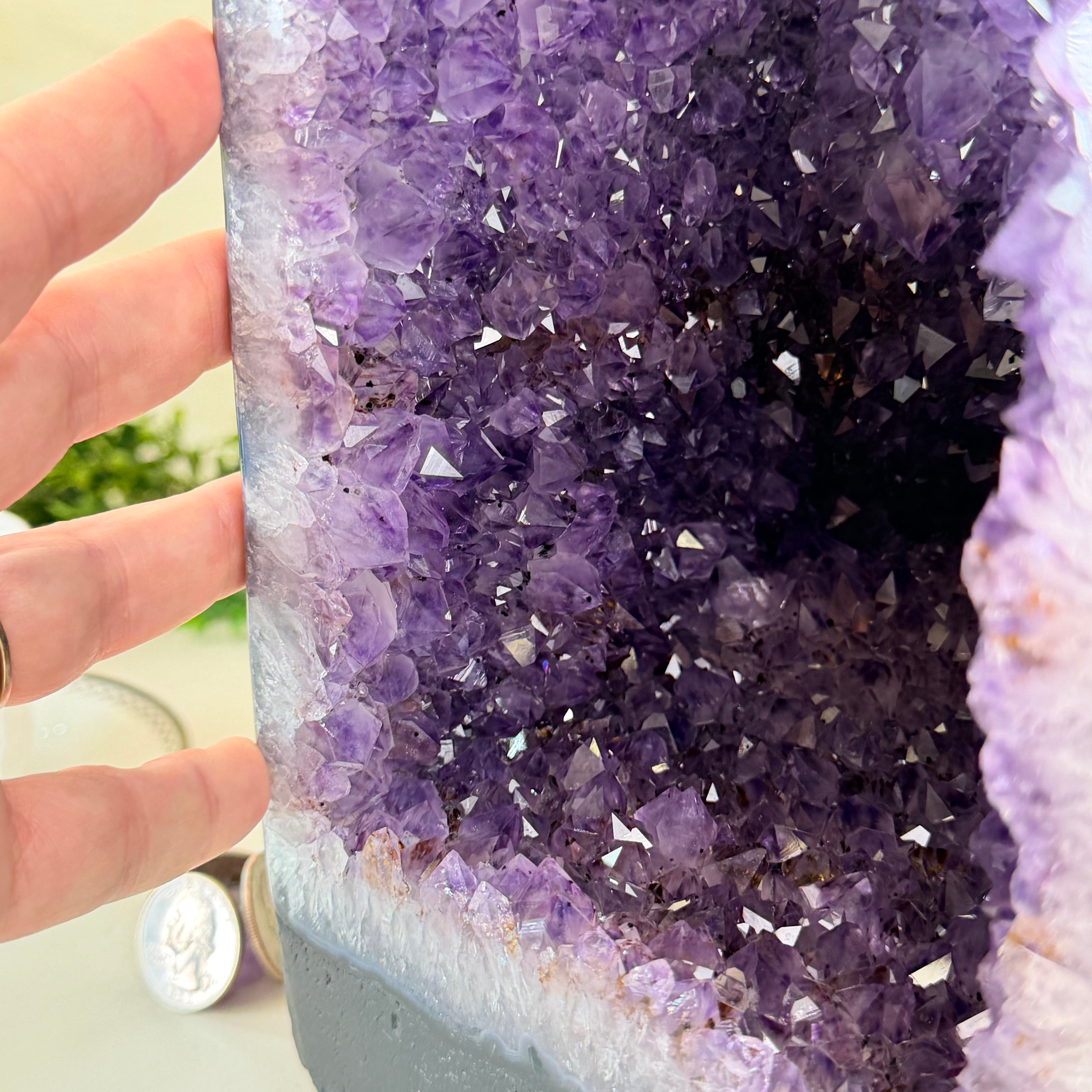 Disclaimer: This is a natural gemstone crystal sold by Brazil Gems® as is and as you see it in its images and video. It is the exact one you will receive. It may contain natural imperfections as well as imperfections, broken edges and repairs from the extraction, polishing and prepping processes. In order for it to stand on its own, the back and bottom have been reinforced with a small amount of cement then painted black. At Brazil Gems® we make every effort to get measurements as exact as possible but they are done by human hands and eyes and therefore may have minor discrepancies.