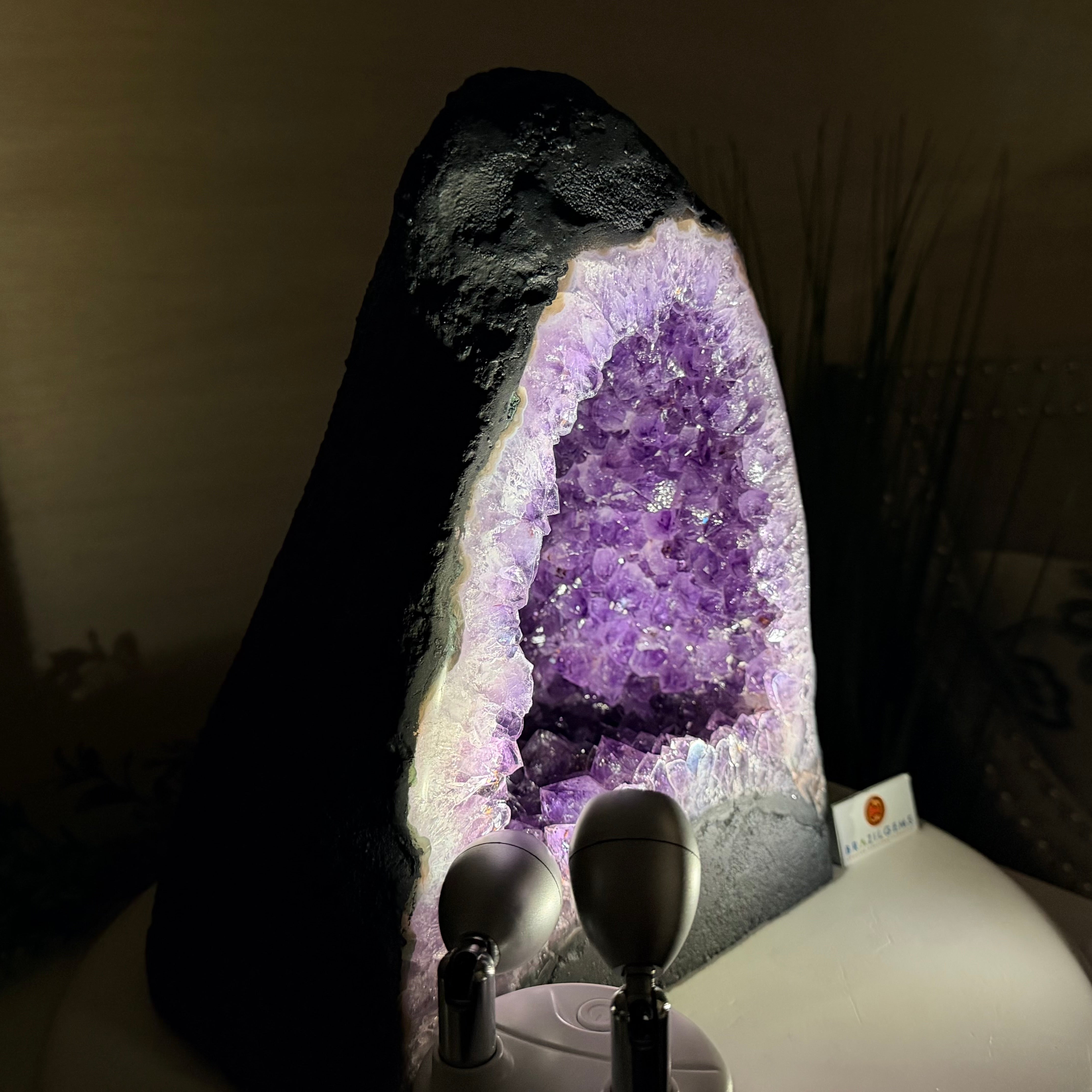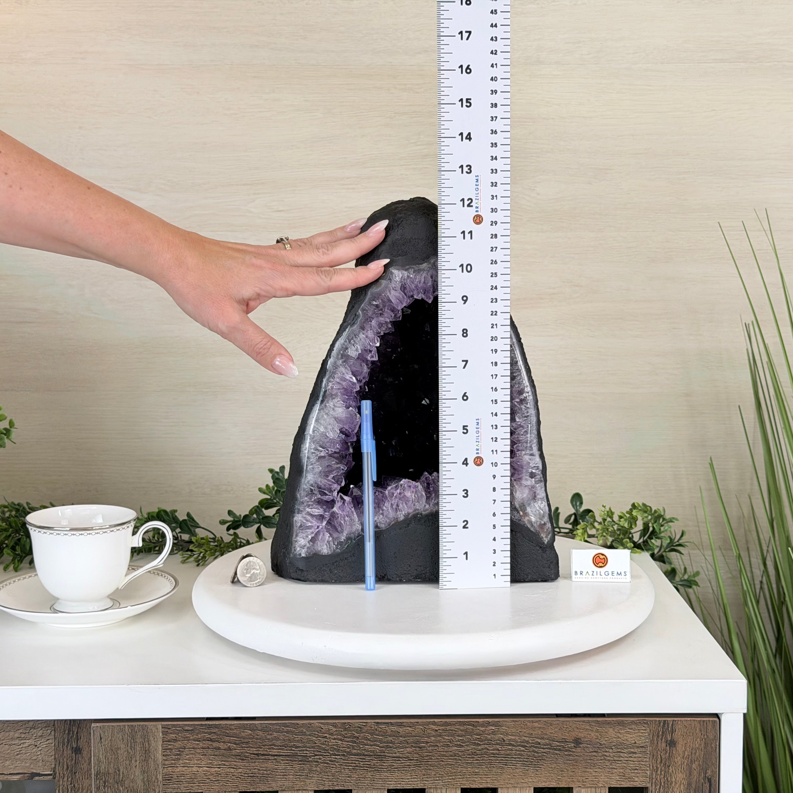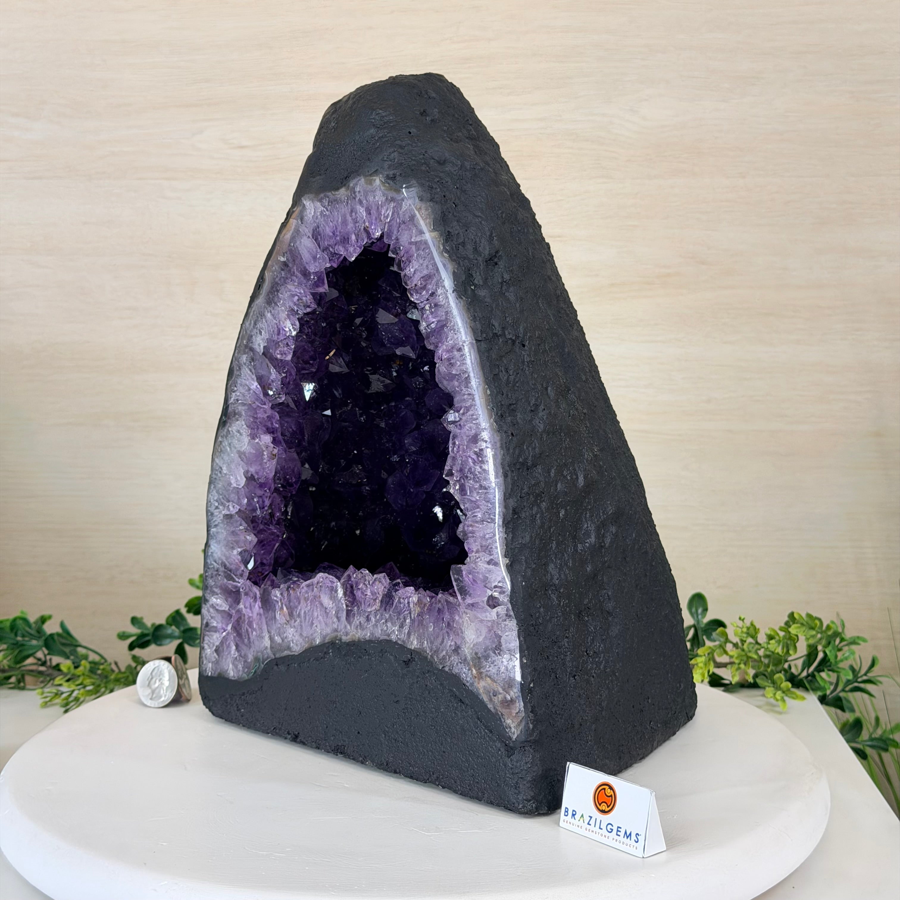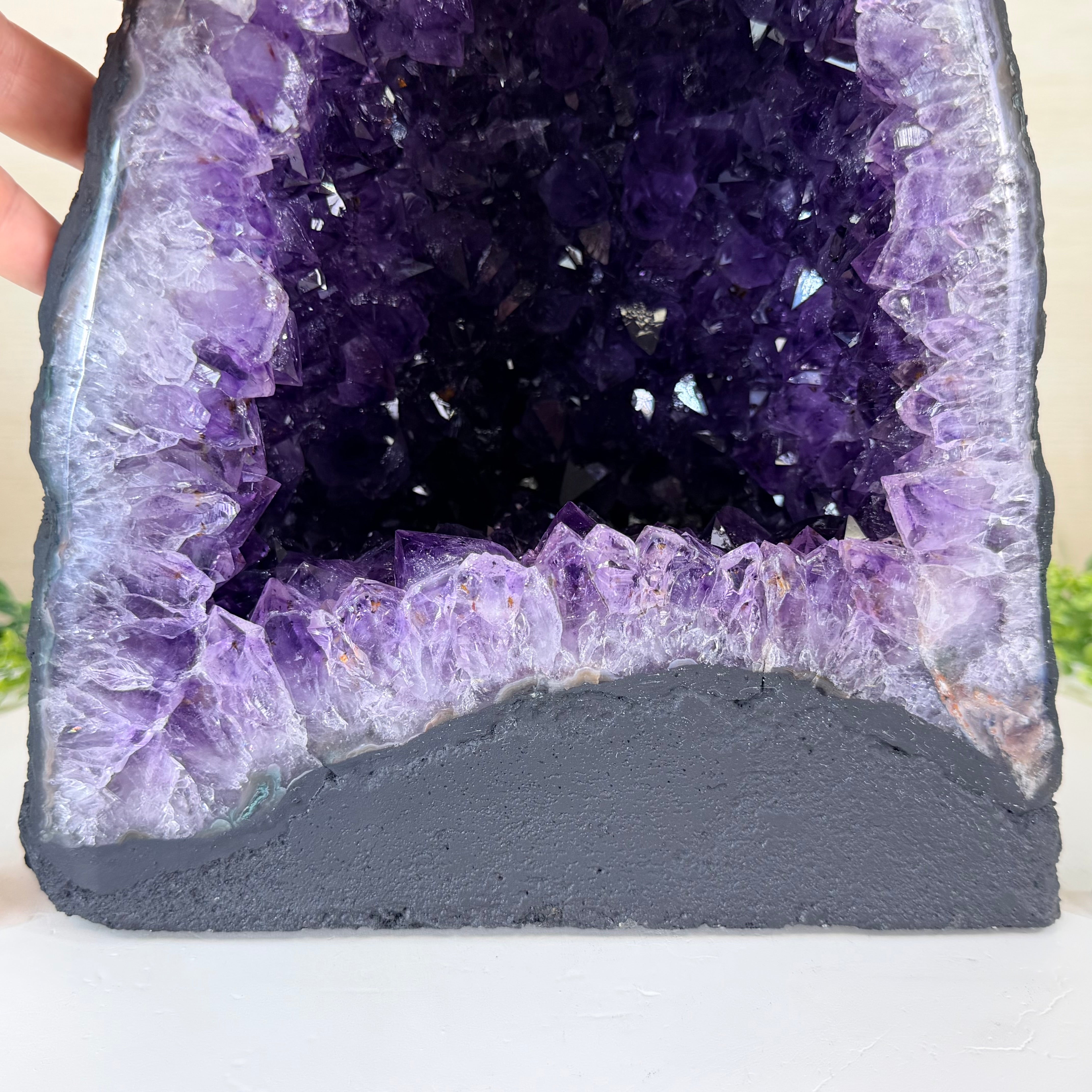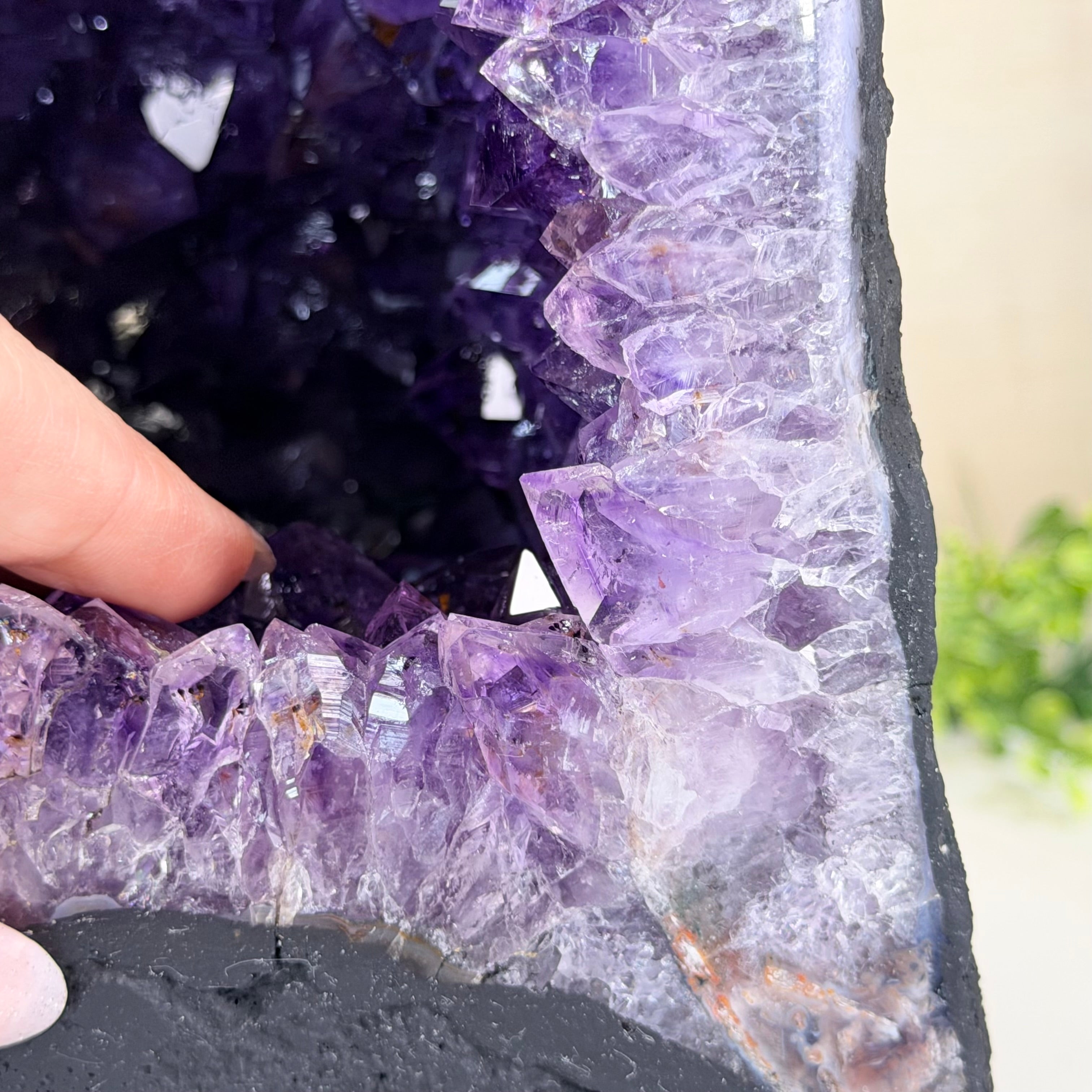 Disclaimer: This is a natural gemstone crystal sold by Brazil Gems® as is and as you see it in its images and video. It is the exact one you will receive. It may contain natural imperfections as well as imperfections, broken edges and repairs from the extraction, polishing and prepping processes. In order for it to stand on its own, the back and bottom have been reinforced with a small amount of cement then painted black. At Brazil Gems® we make every effort to get measurements as exact as possible but they are done by human hands and eyes and therefore may have minor discrepancies.