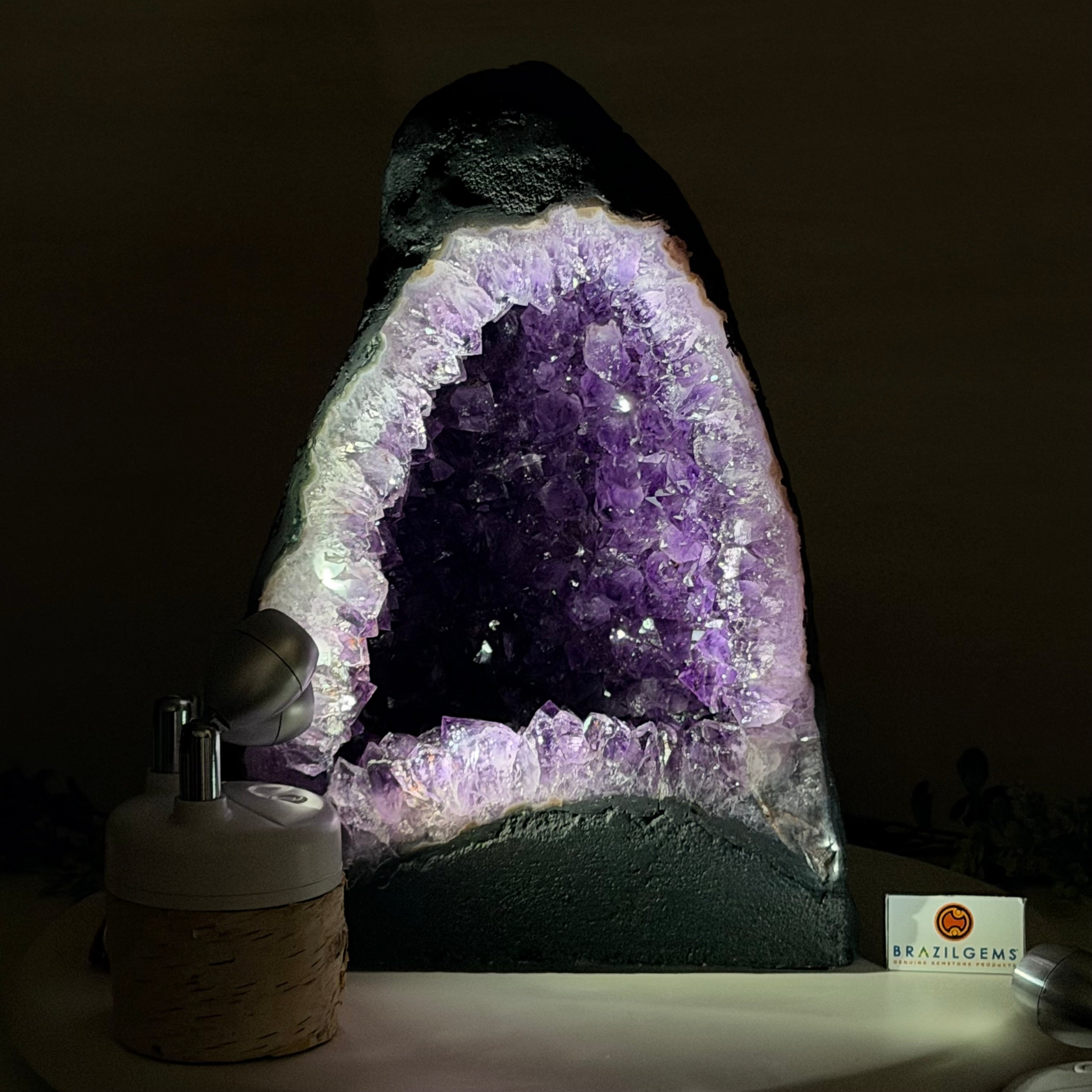 Bring timeless beauty into your home with this Super Quality Brazilian Amethyst Cathedral, featuring rich violet tones and beautifully defined crystal points.