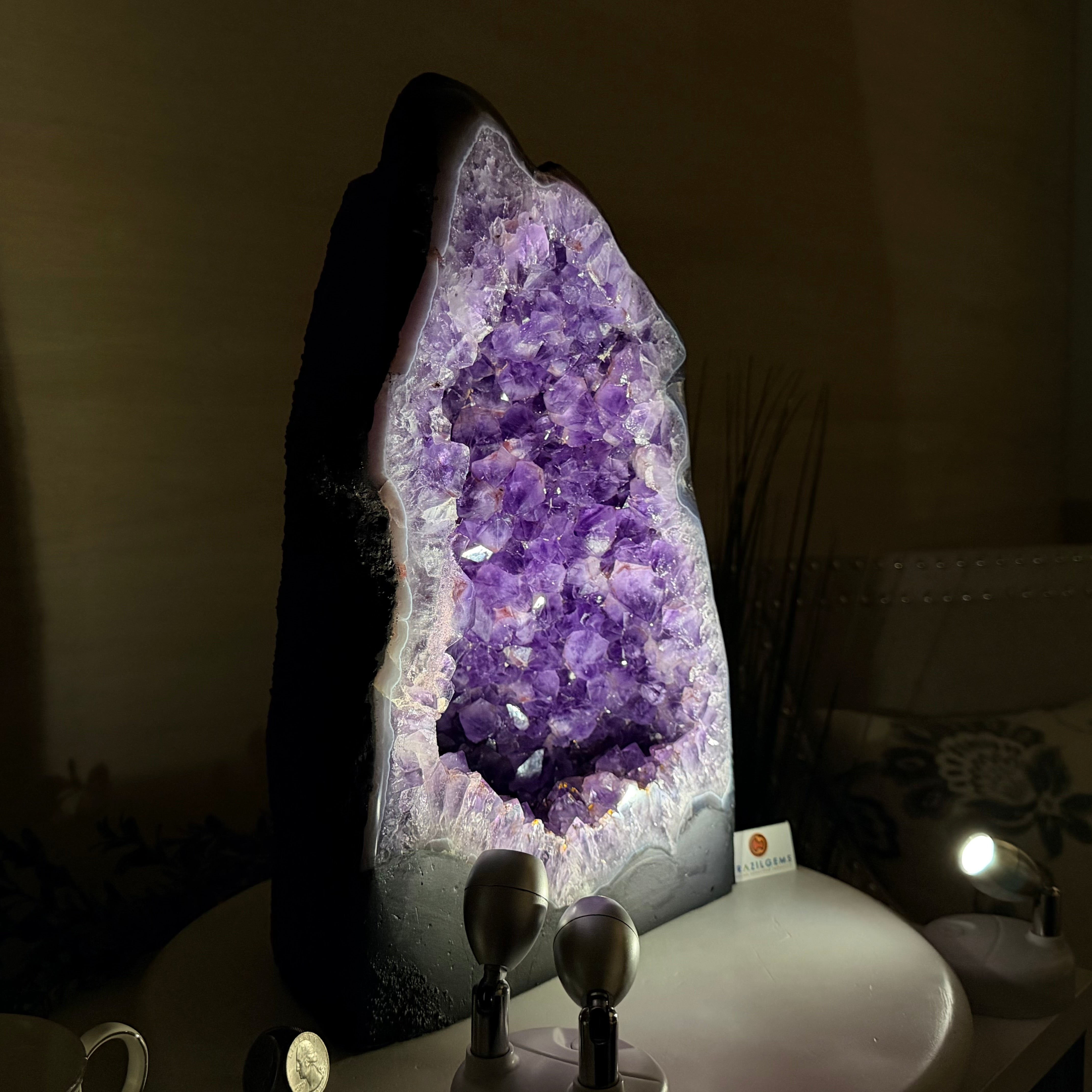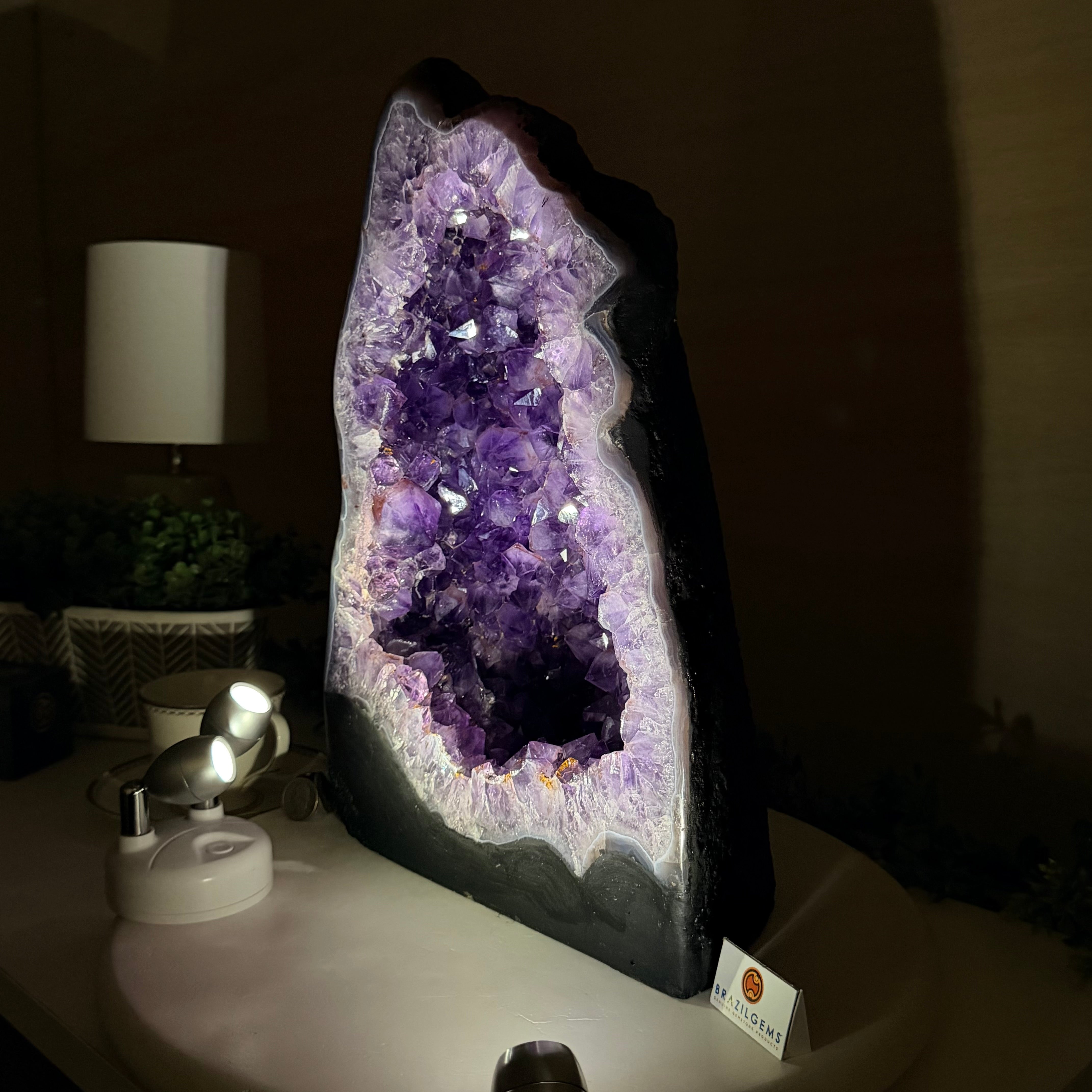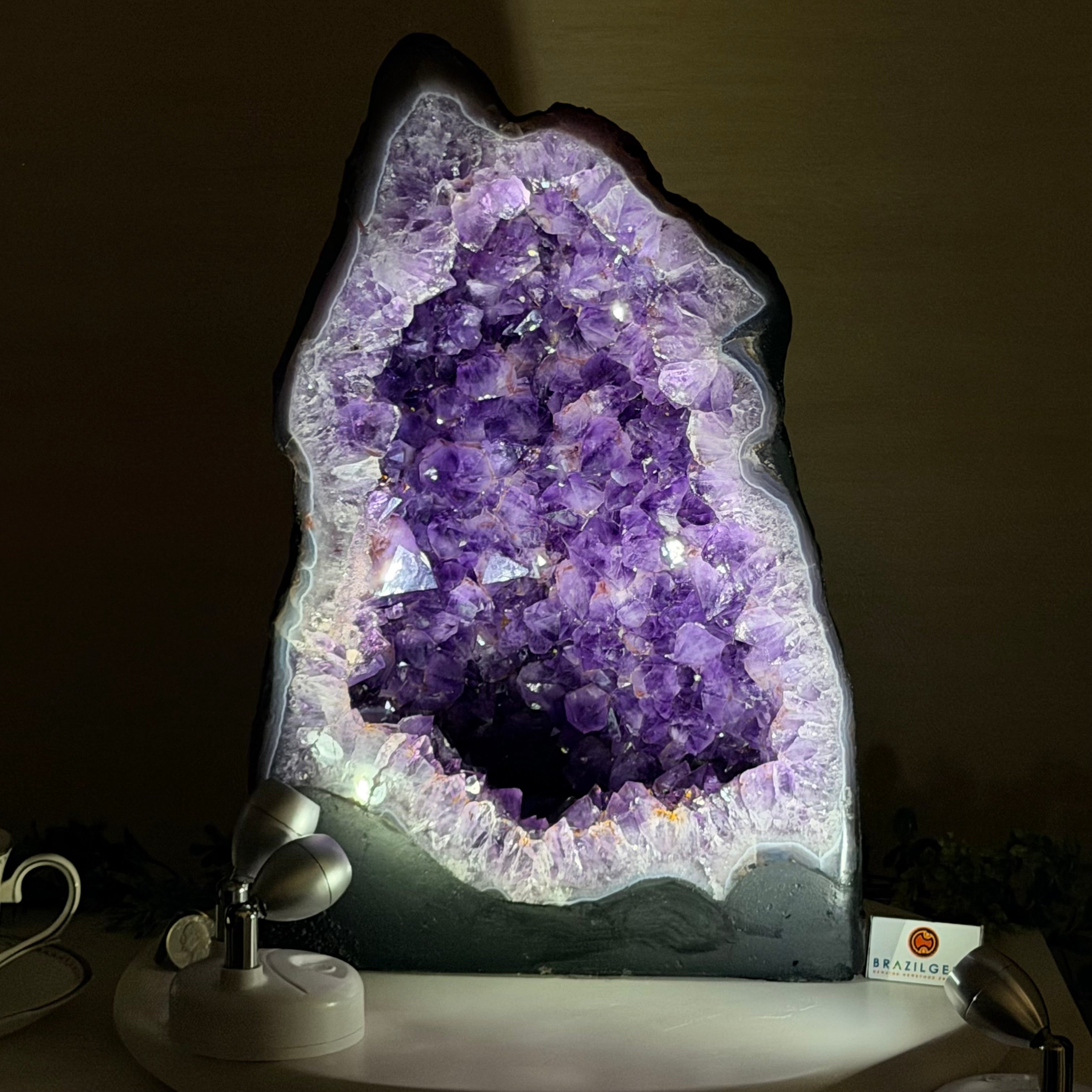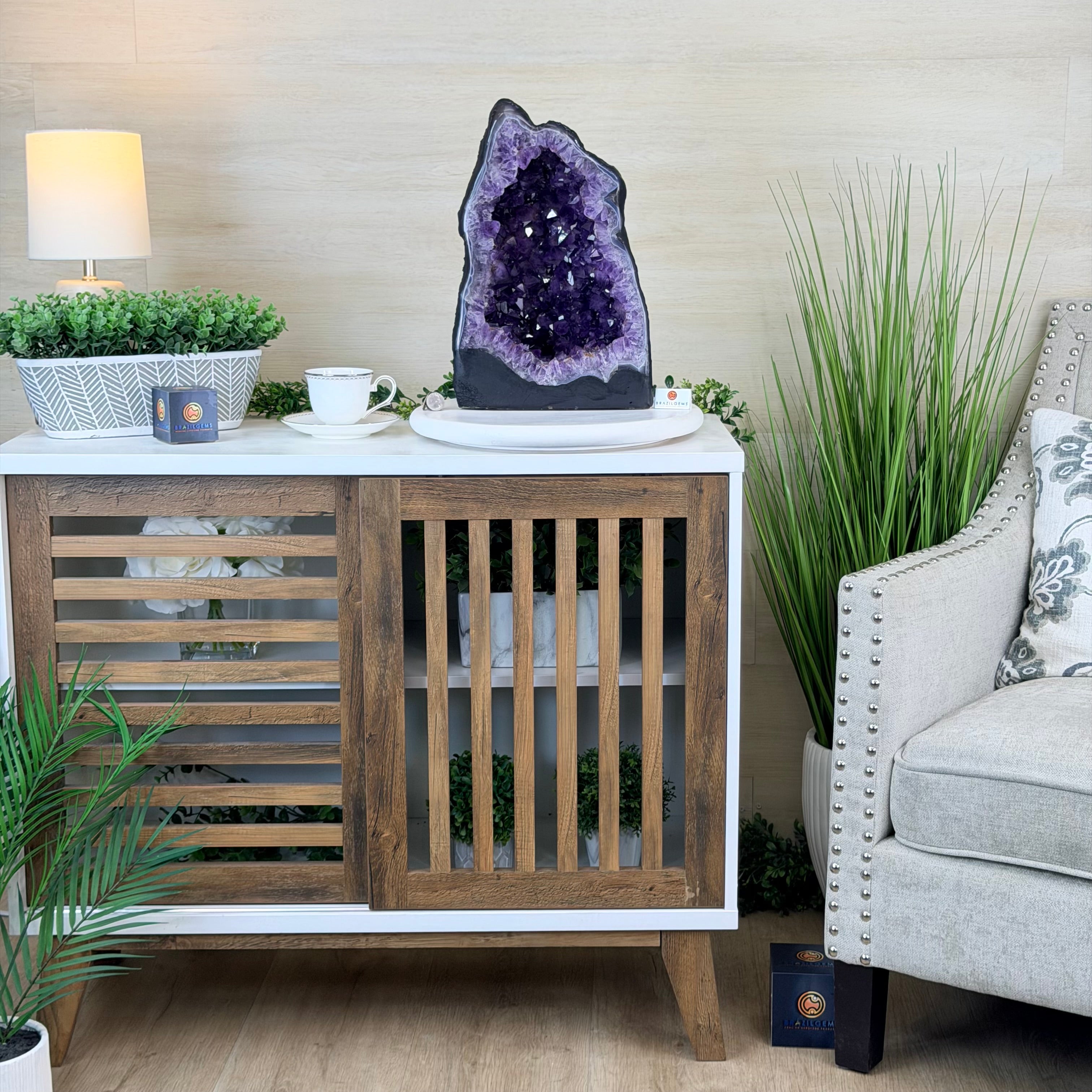 Sourced directly from Amethyst mine owners in Brazil, this magnificent piece showcases nature’s artistry at its finest, formed over millions of years in ancient volcanic cavities.