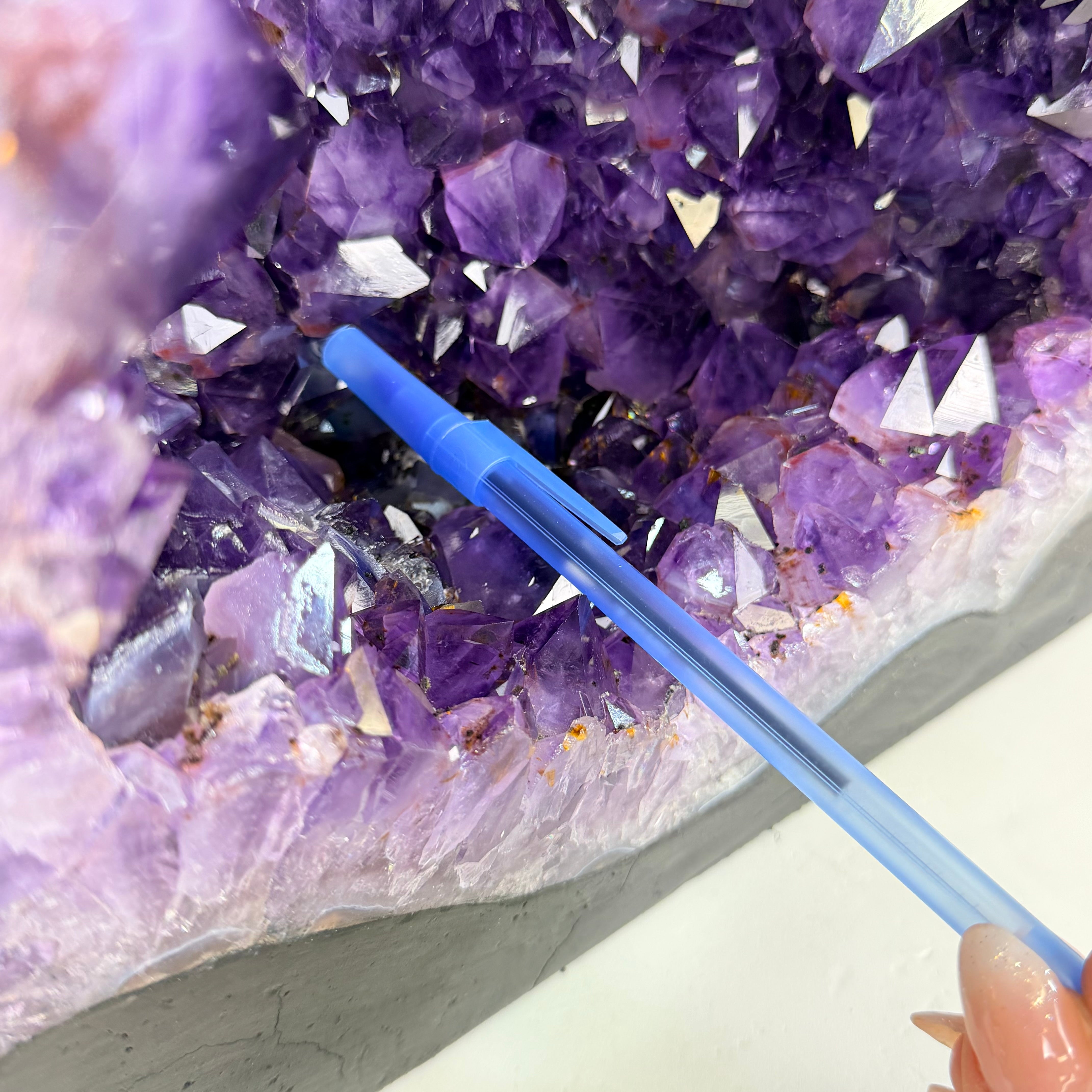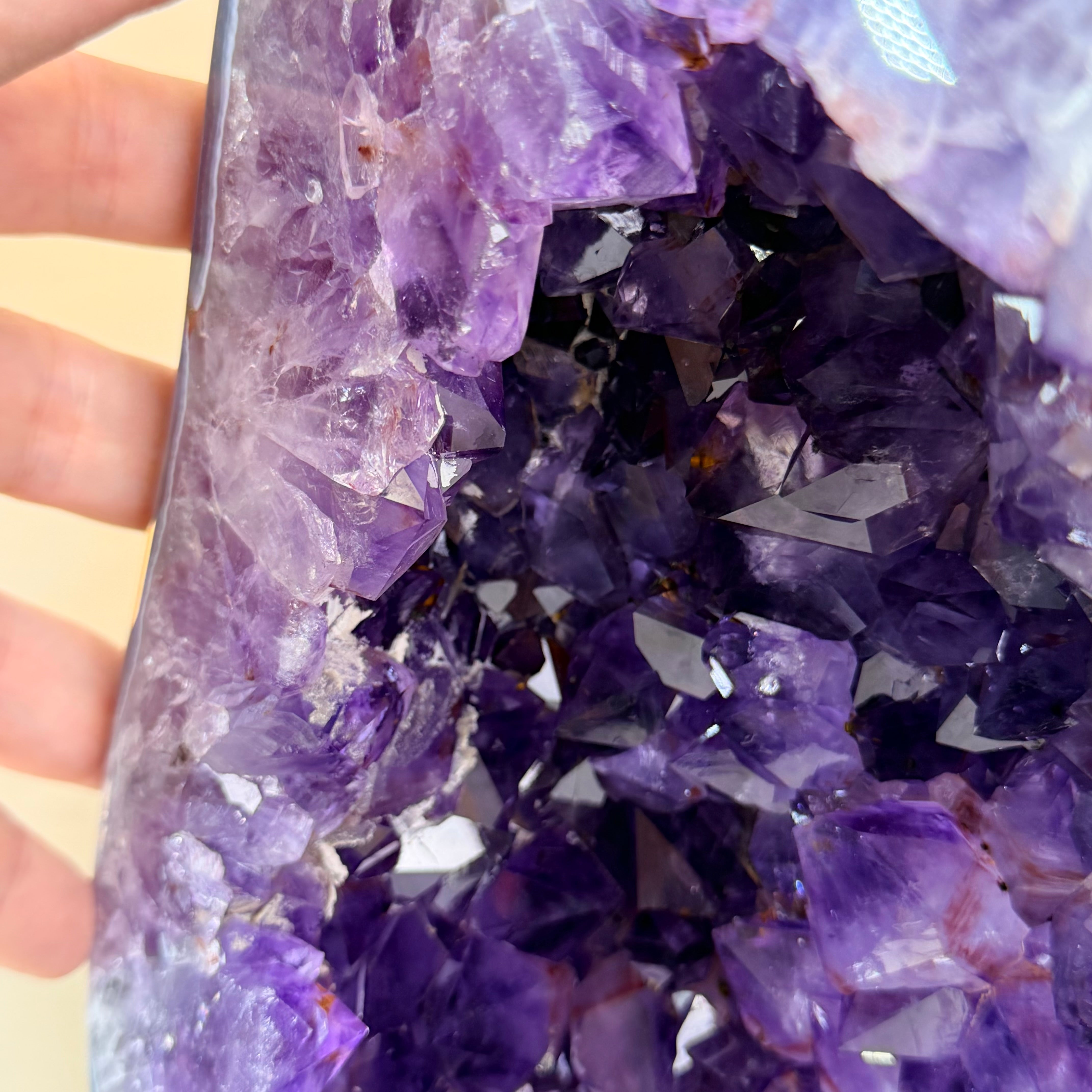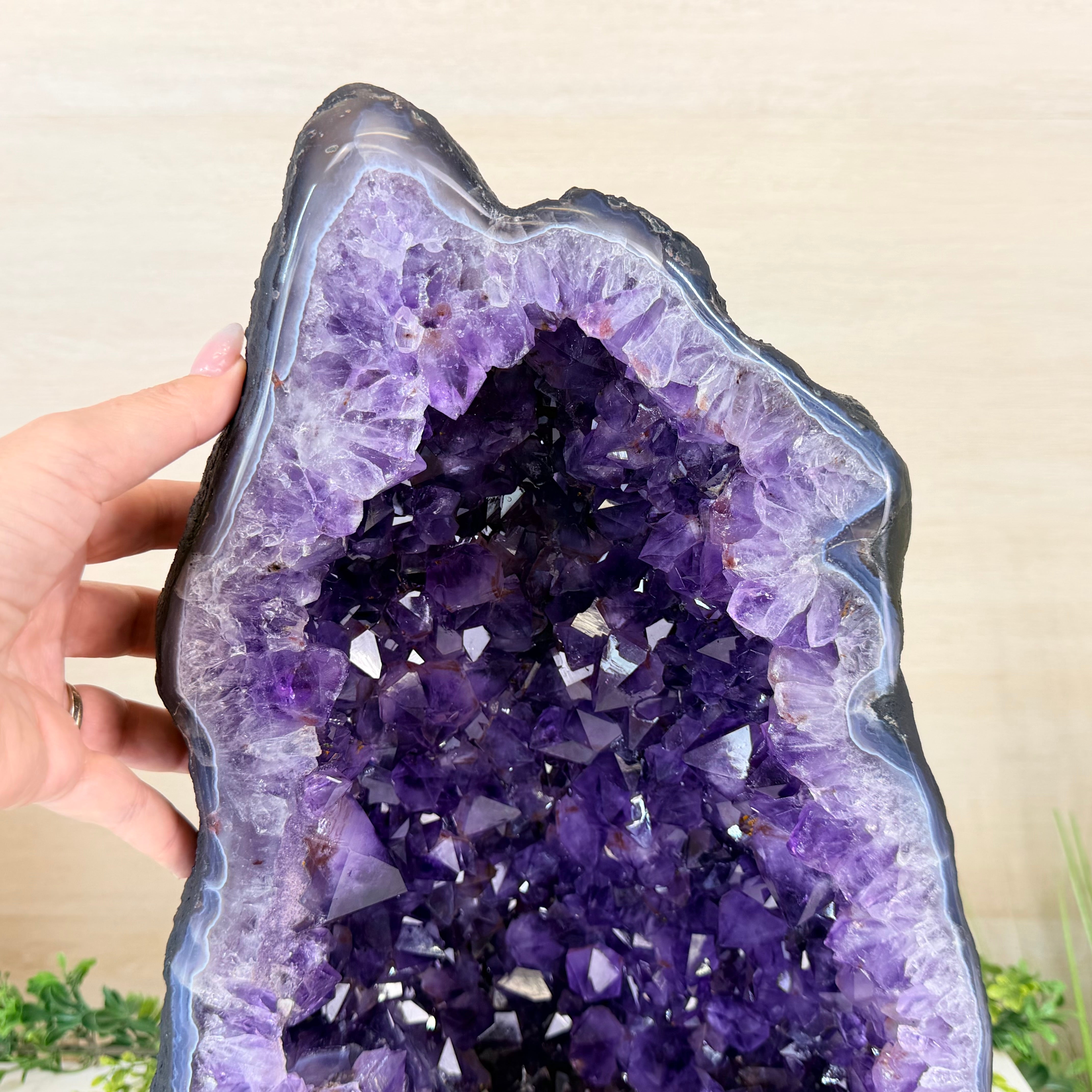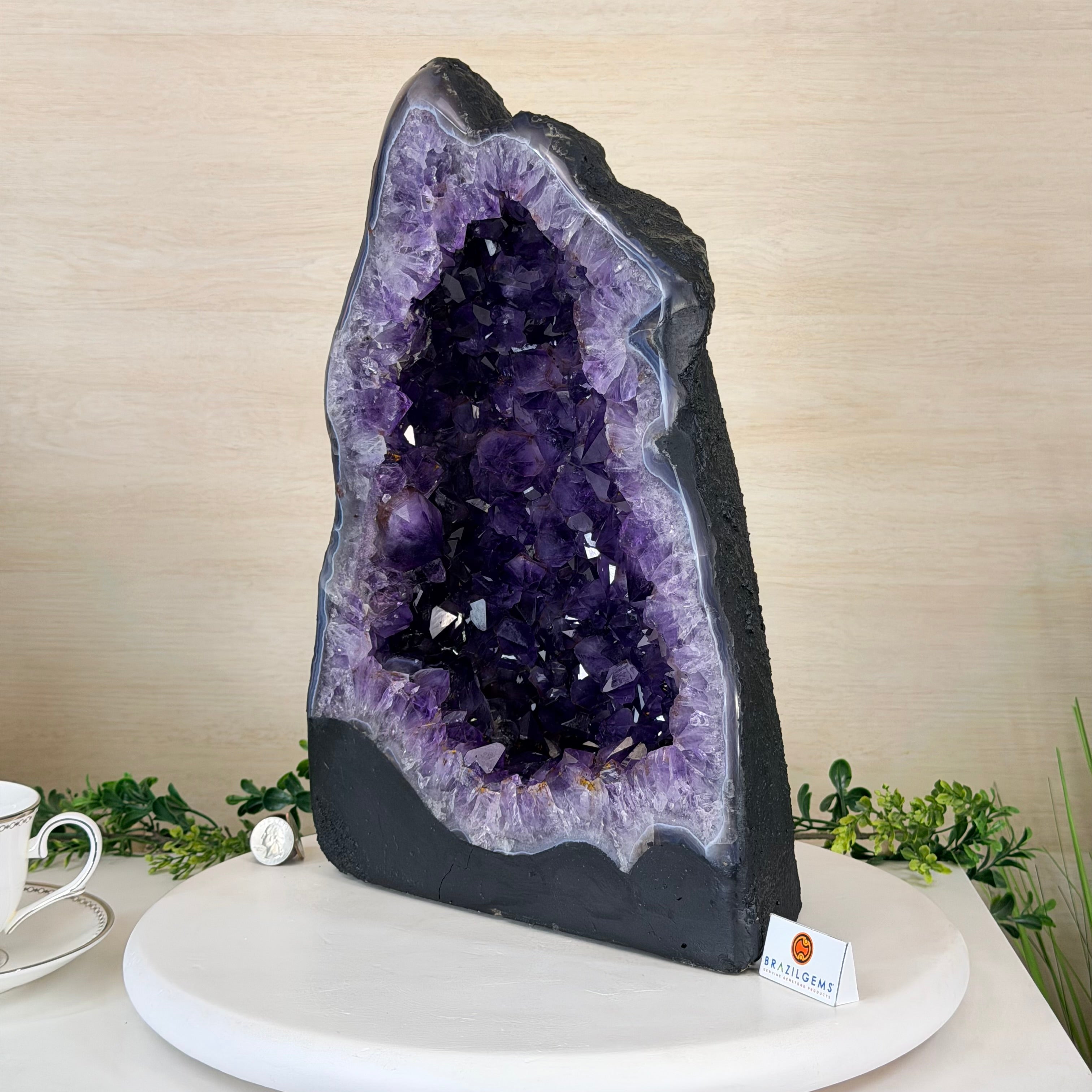 Sourced directly from Amethyst mine owners in Brazil, this magnificent piece showcases nature’s artistry at its finest, formed over millions of years in ancient volcanic cavities.