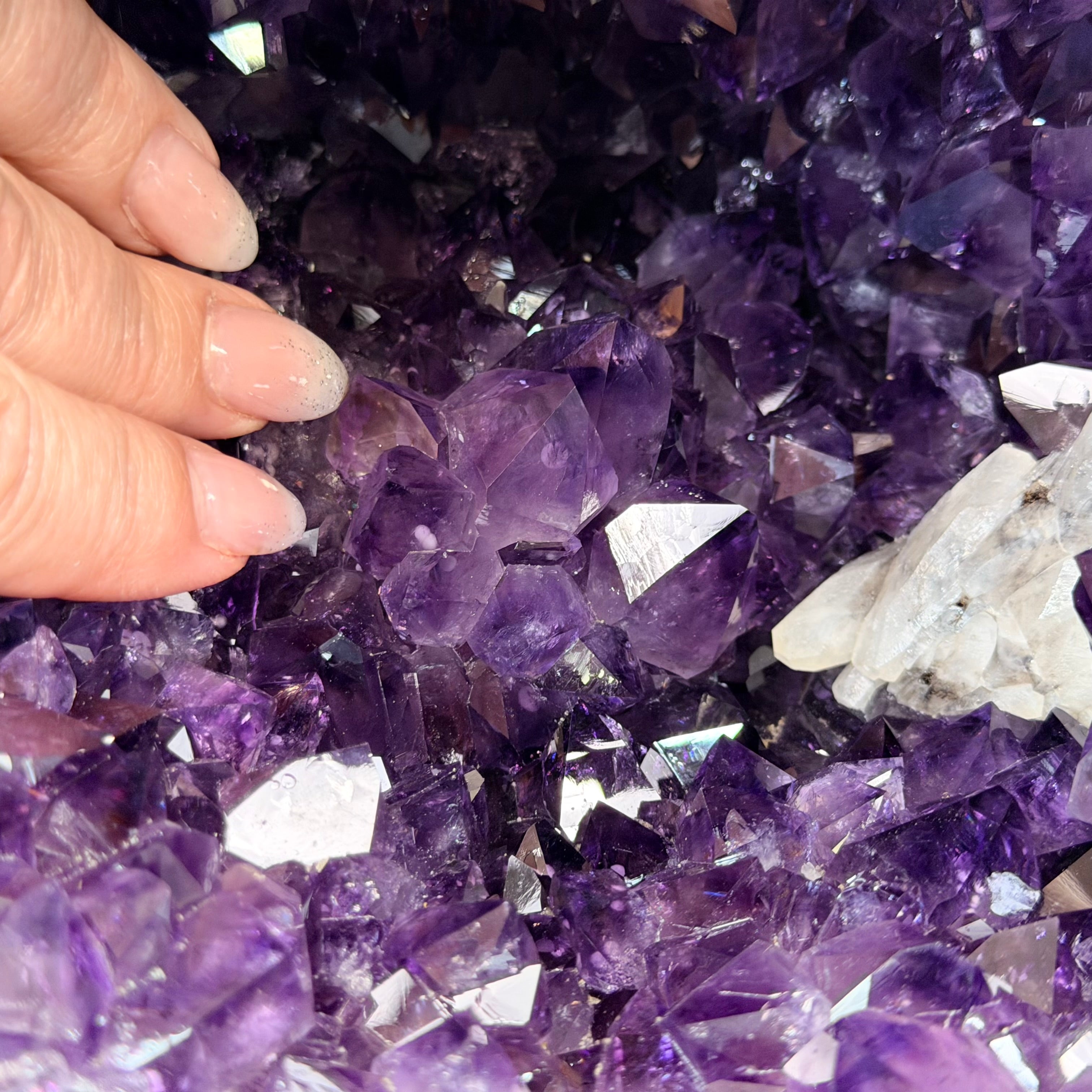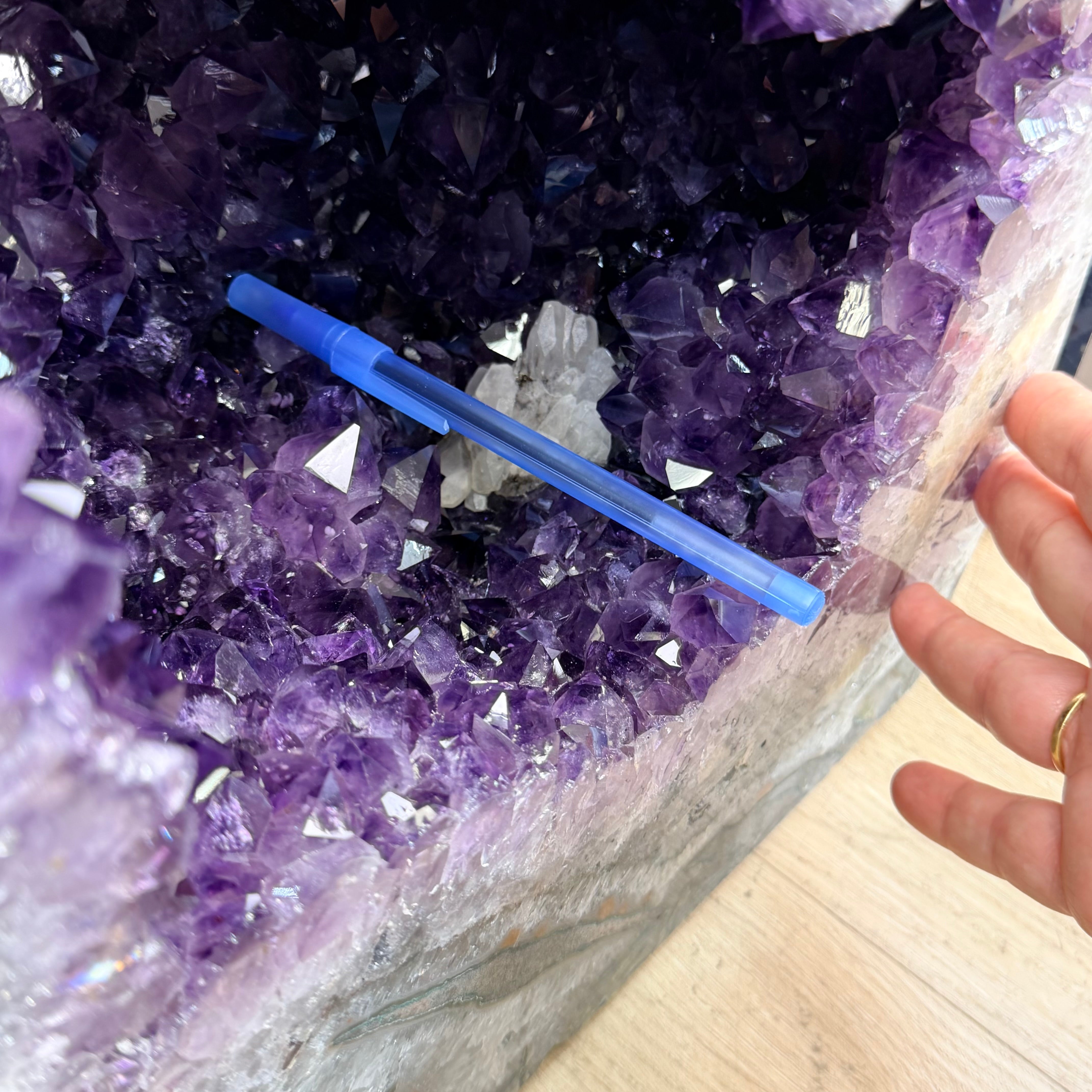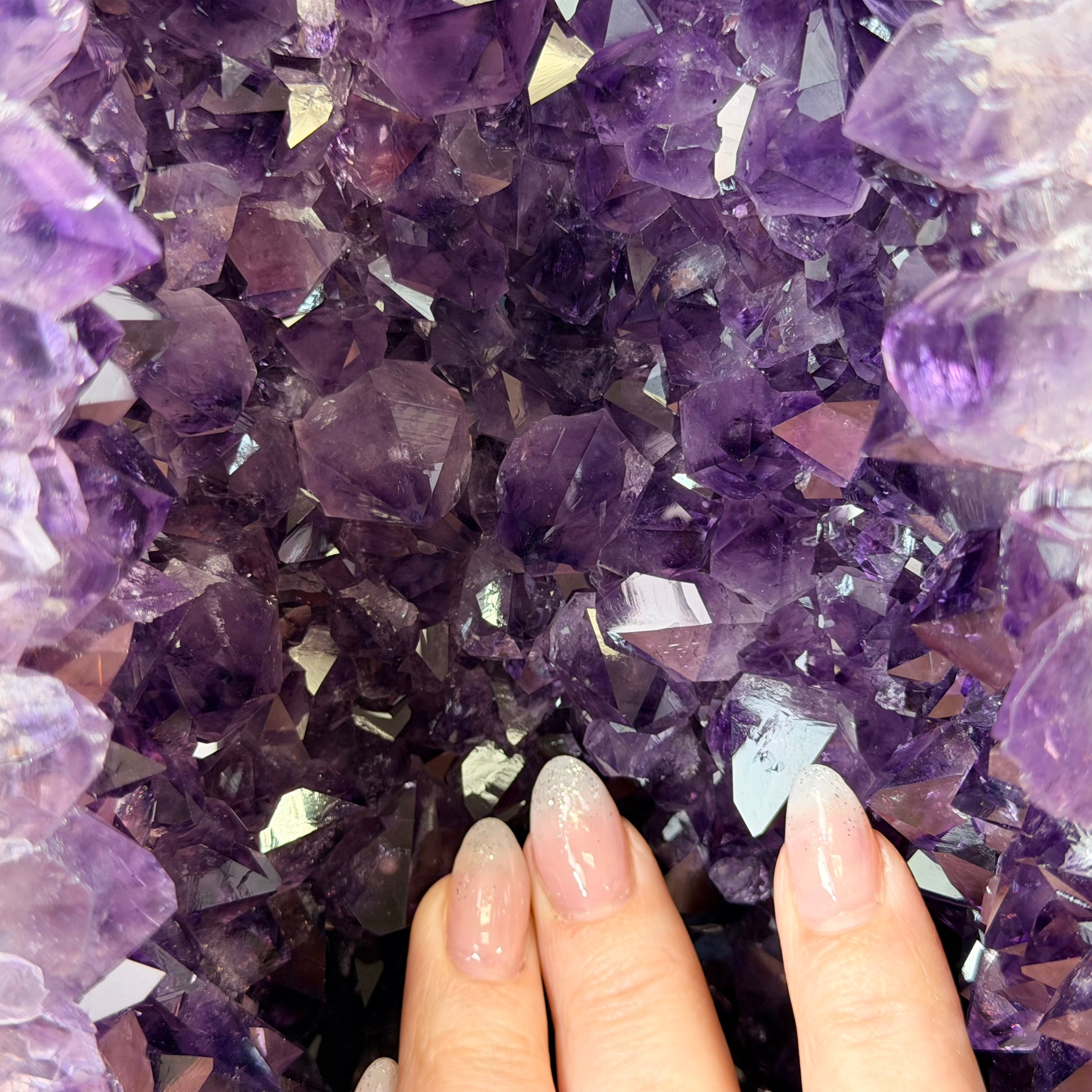 Sourced directly from Amethyst mine owners in Brazil, this magnificent piece showcases nature’s artistry at its finest, formed over millions of years in ancient volcanic cavities.