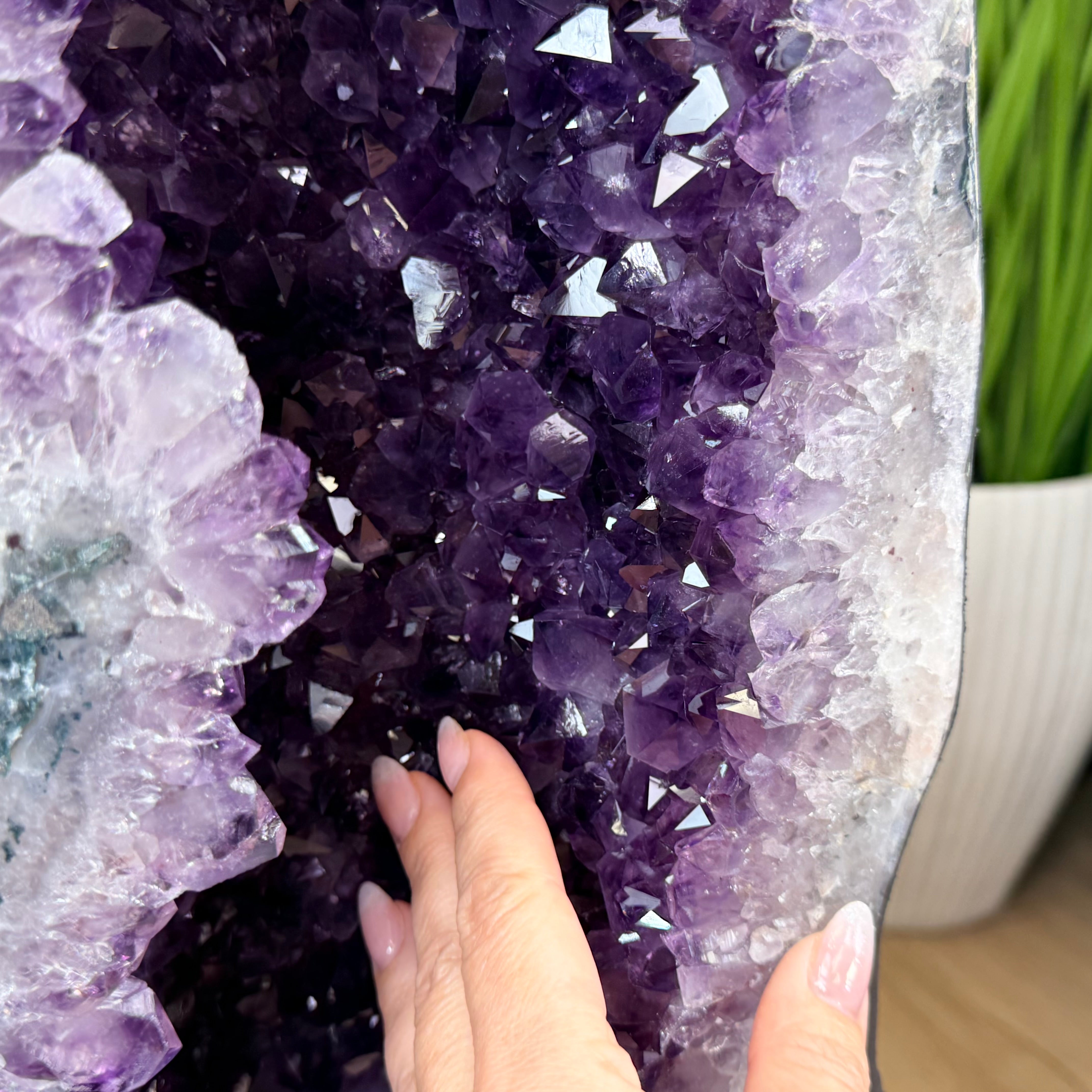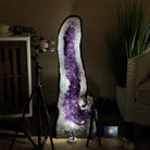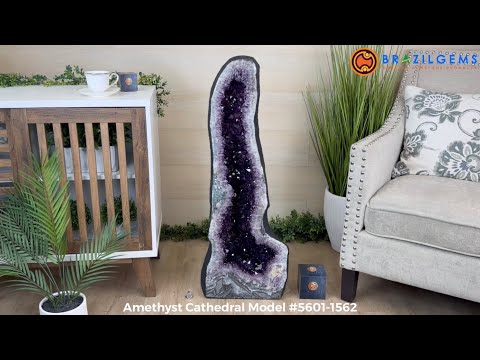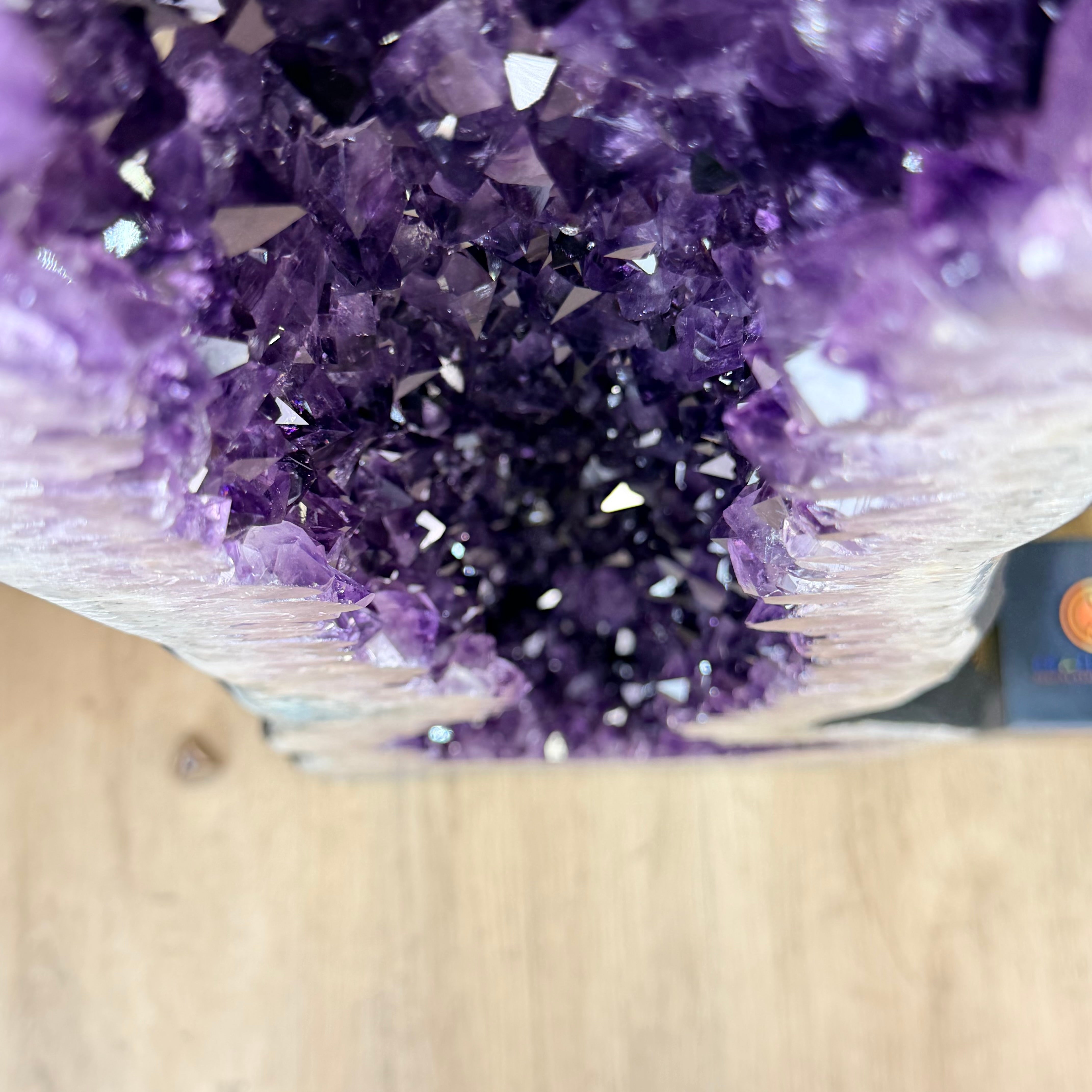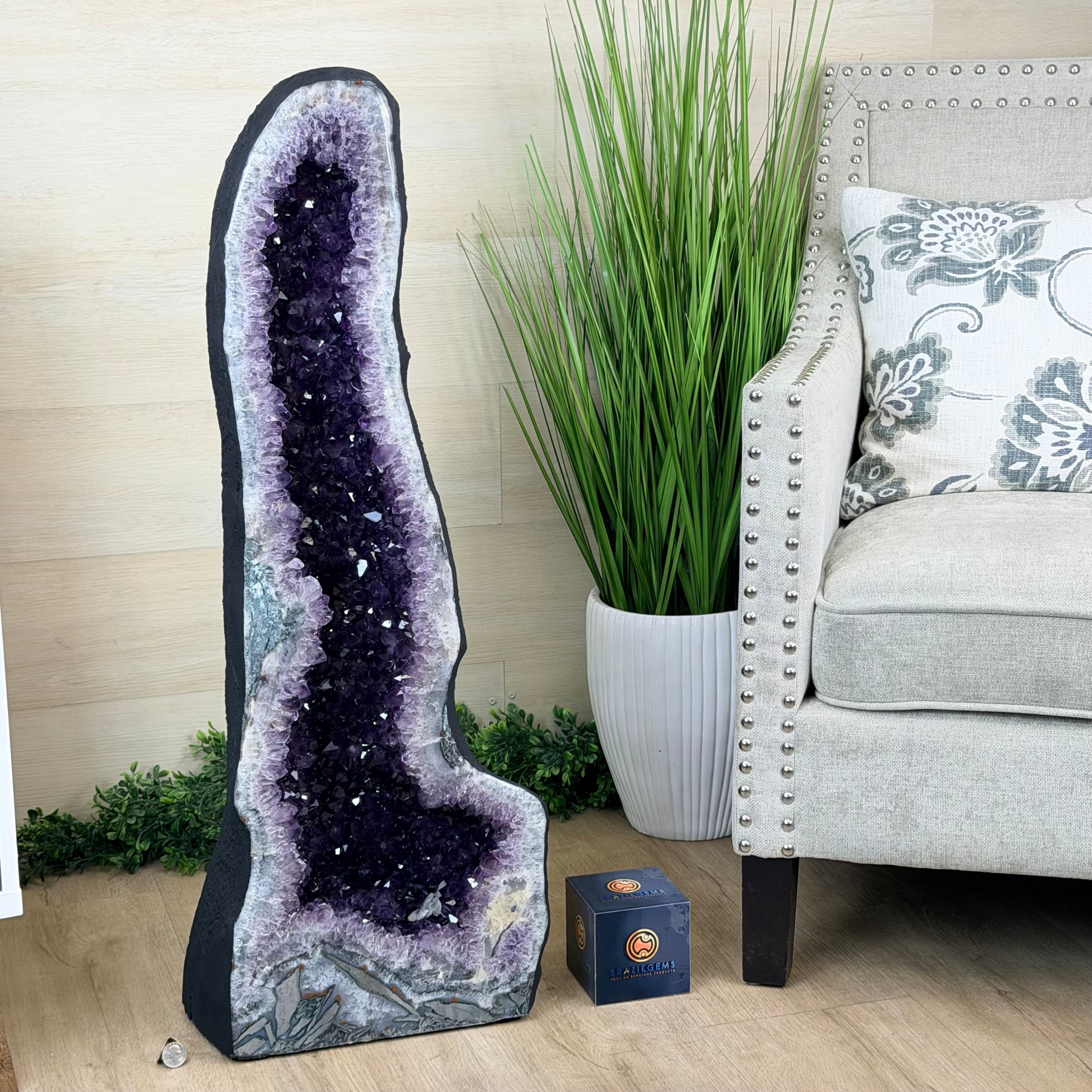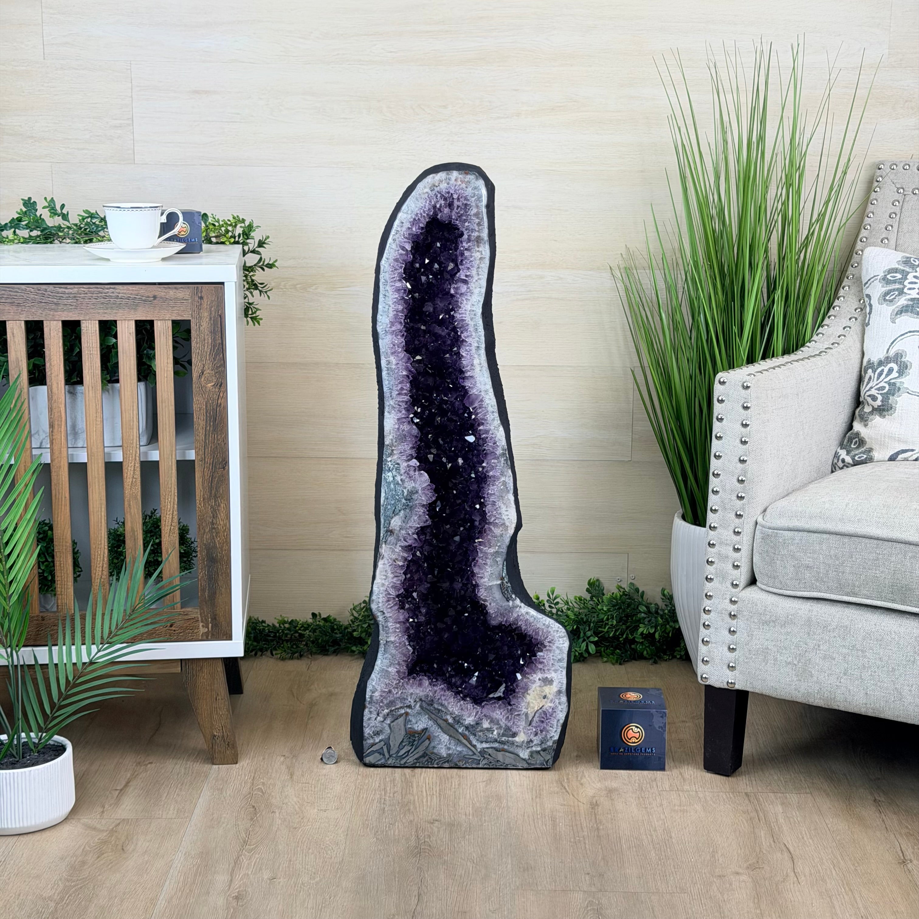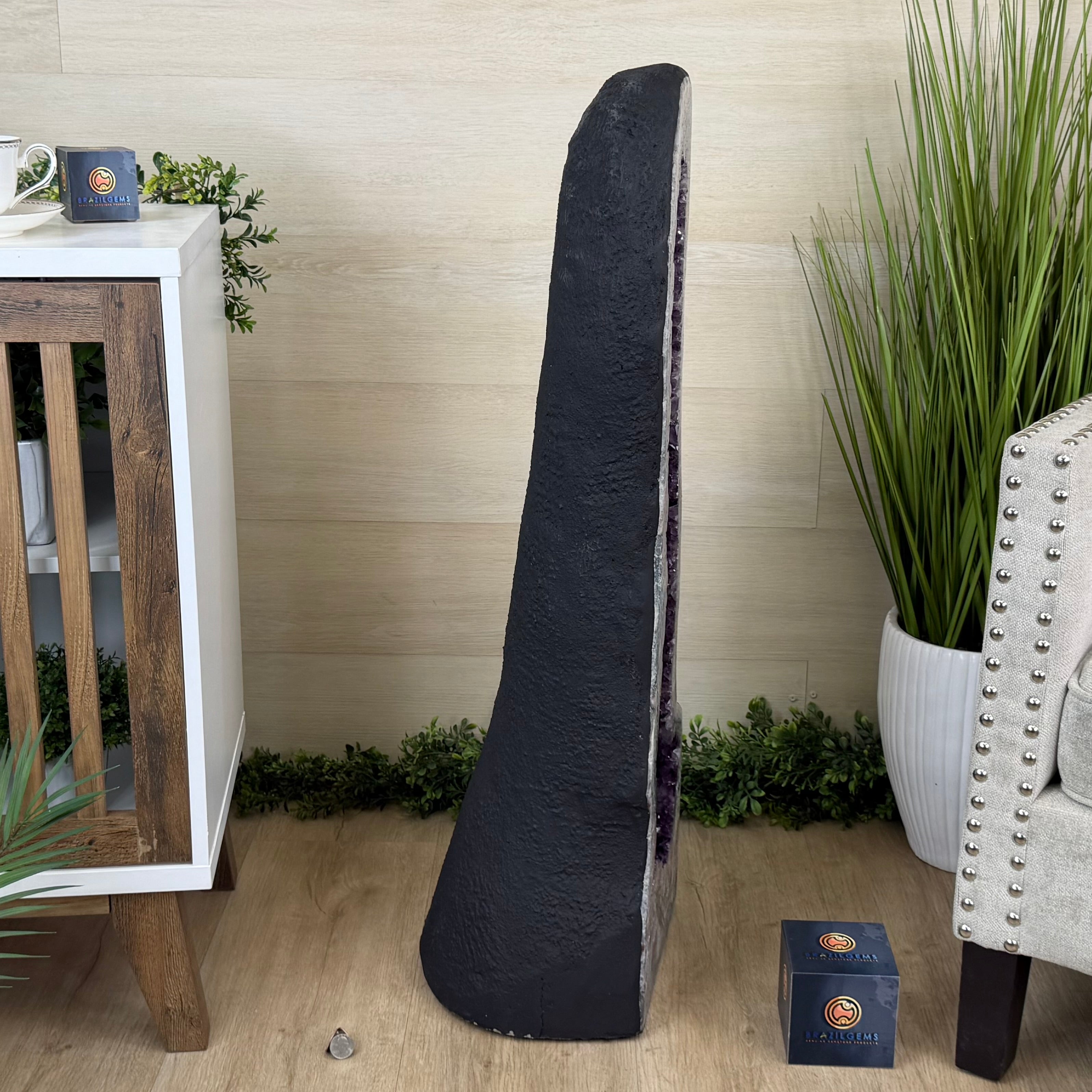 A Majestic statement piece for your space, this elegant awe-inspiring Brazilian Amethyst Cathedral, a Super Quality geode, commands attention with its towering presence and vibrant energy by Brazil Gems®.