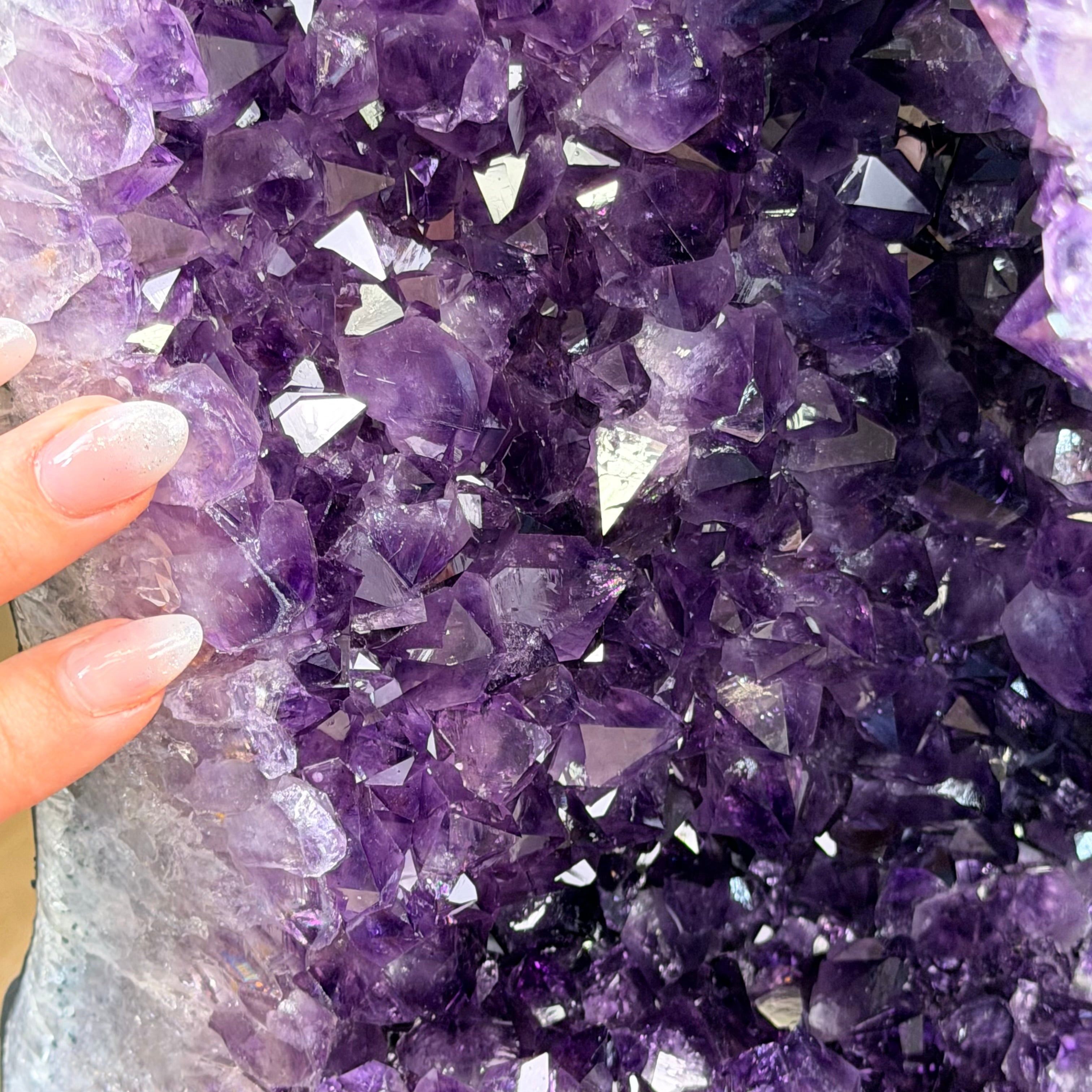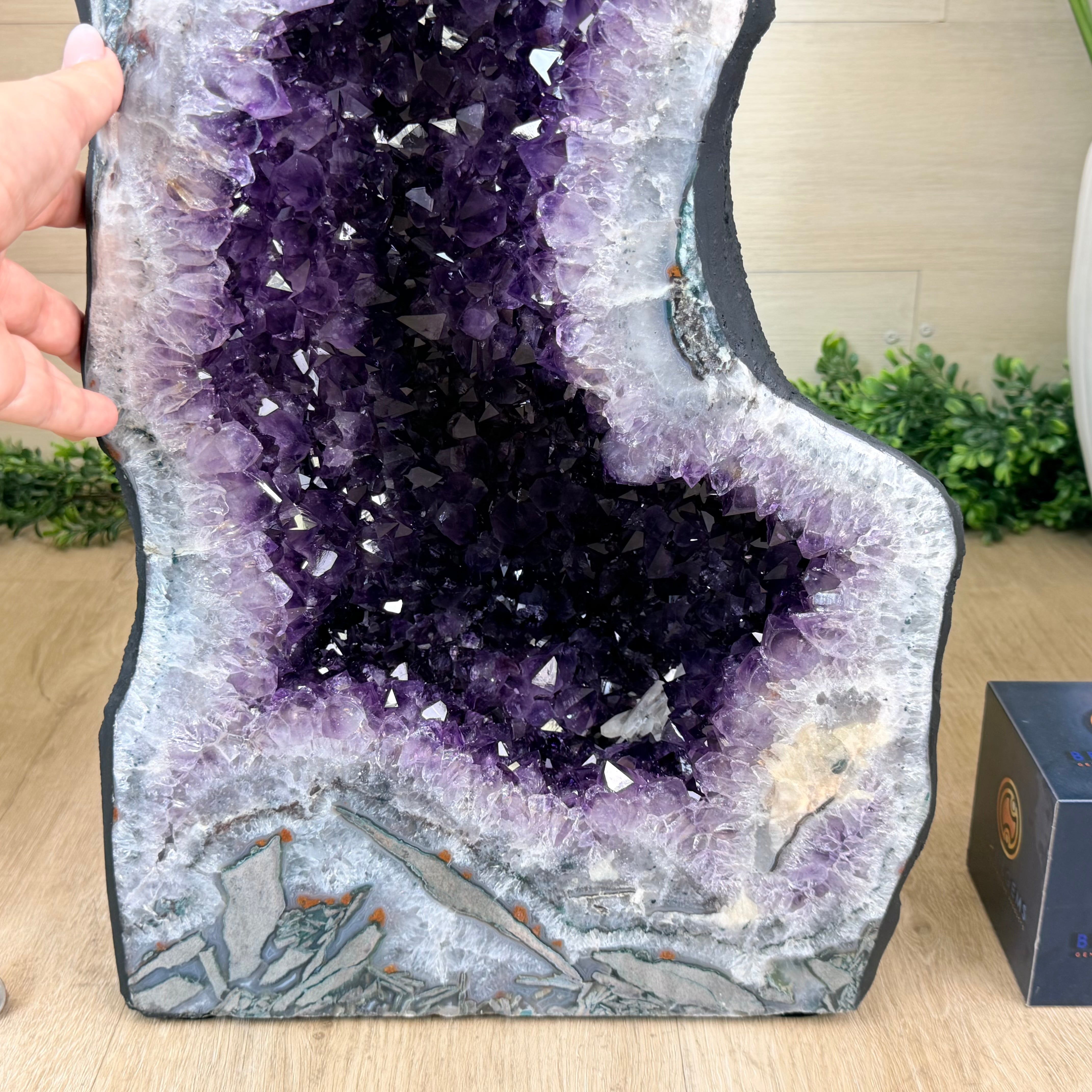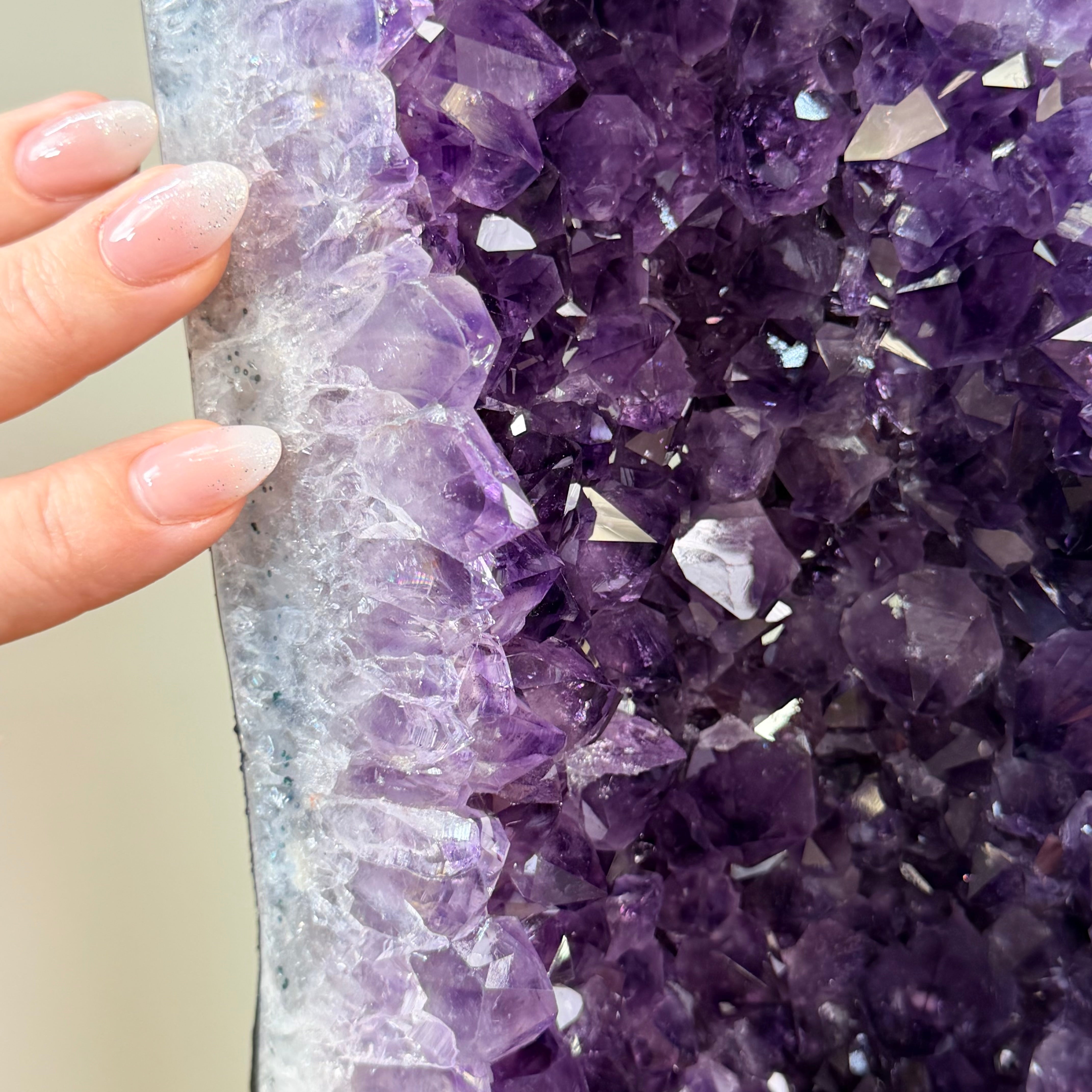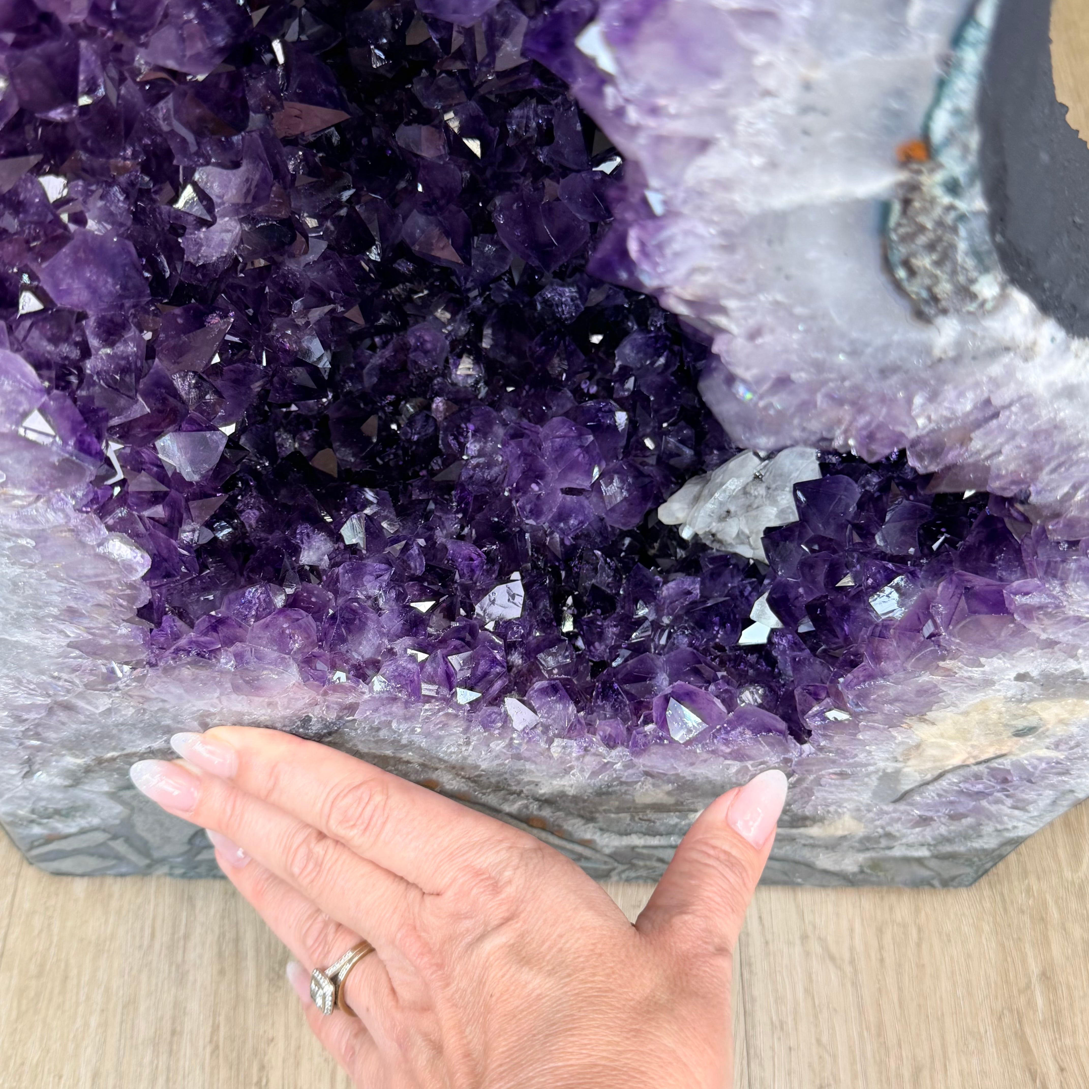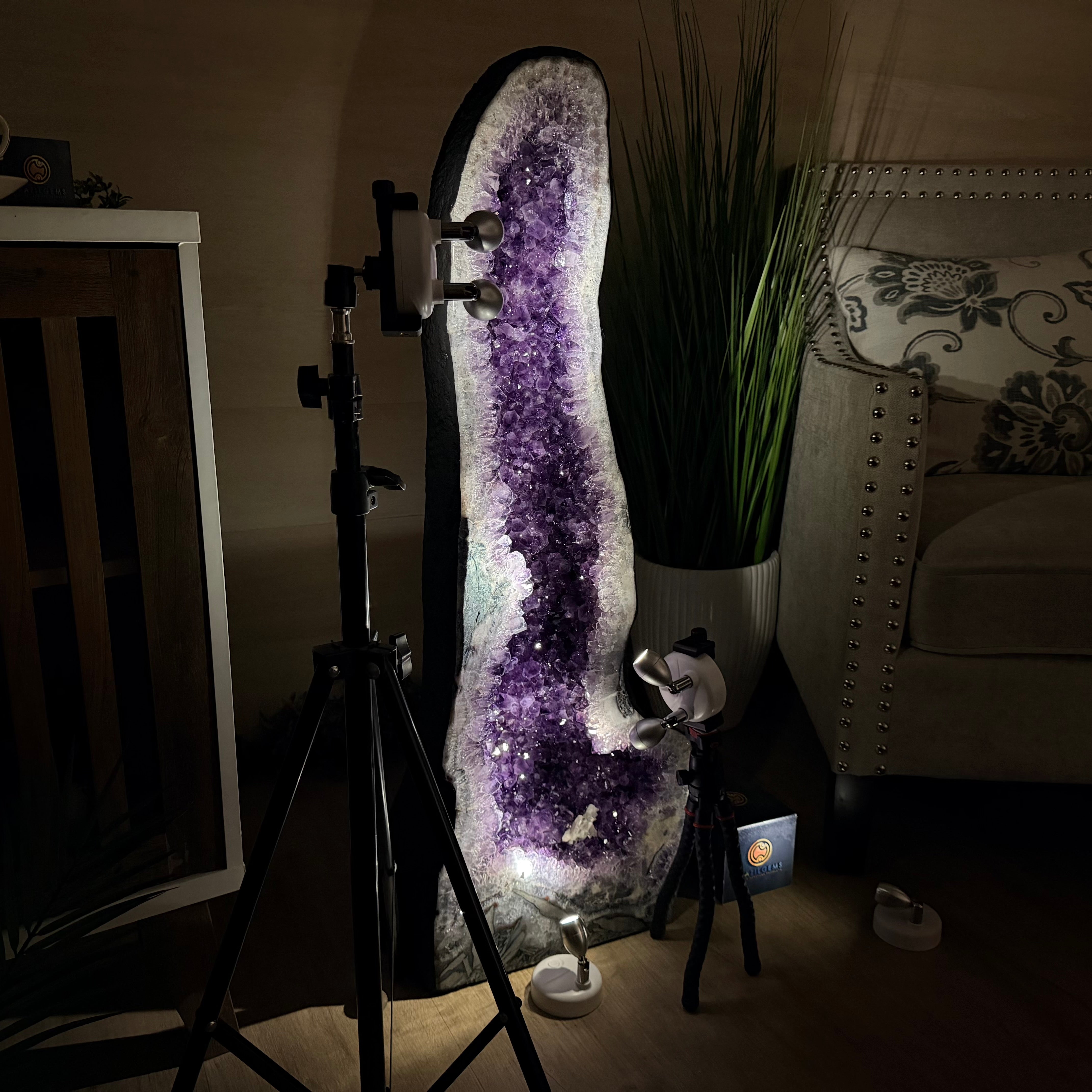 A Majestic statement piece for your space, this elegant awe-inspiring Brazilian Amethyst Cathedral, a Super Quality geode, commands attention with its towering presence and vibrant energy by Brazil Gems®.