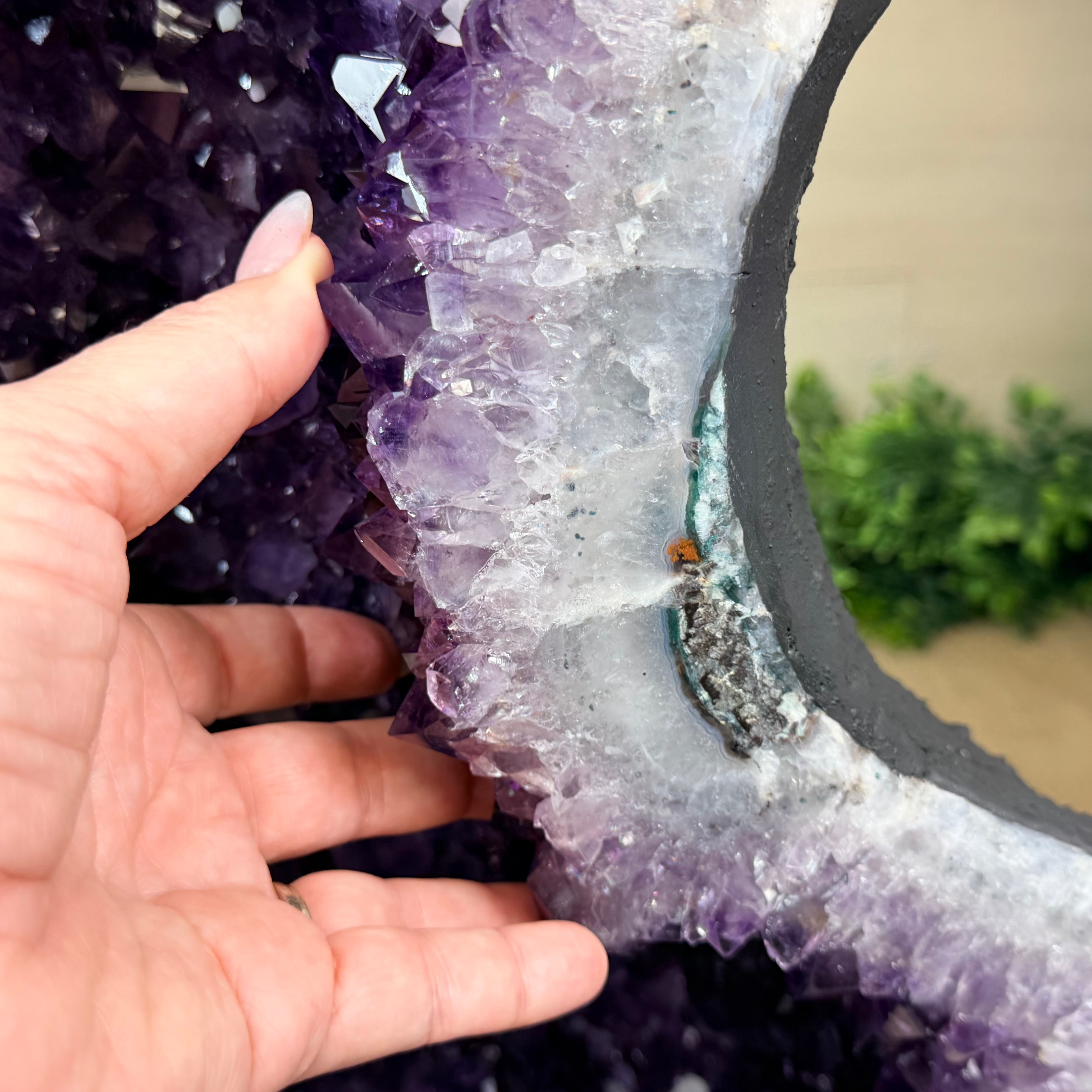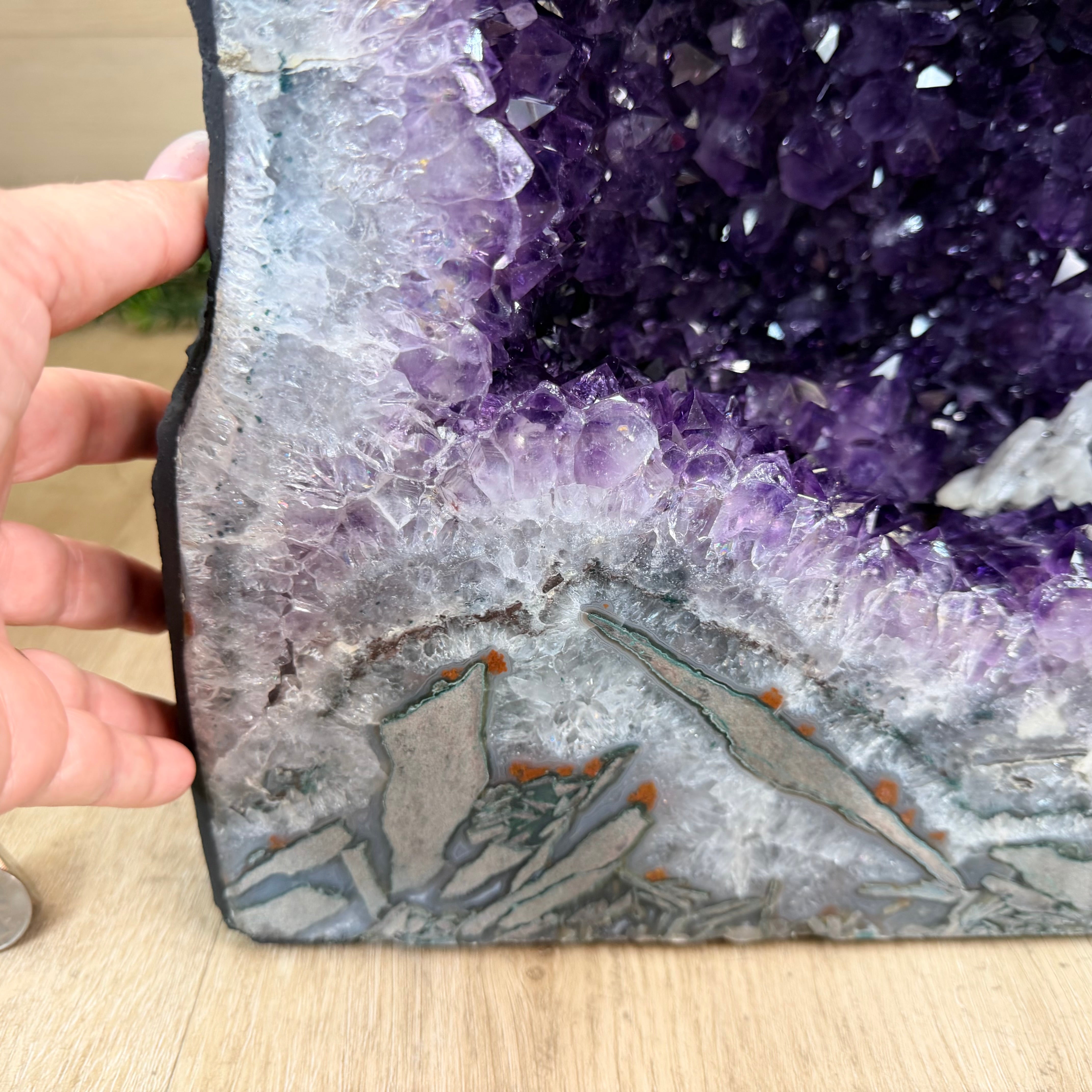 Disclaimer: This is a natural gemstone crystal sold by Brazil Gems® as is and as you see it in its images and video. It is the exact one you will receive. It may contain natural imperfections as well as imperfections, broken edges and repairs from the extraction, polishing and prepping processes. In order for it to stand on its own, the back and bottom have been reinforced with a small amount of cement then painted black. At Brazil Gems® we make every effort to get measurements as exact as possible but they are done by human hands and eyes and therefore may have minor discrepancies.