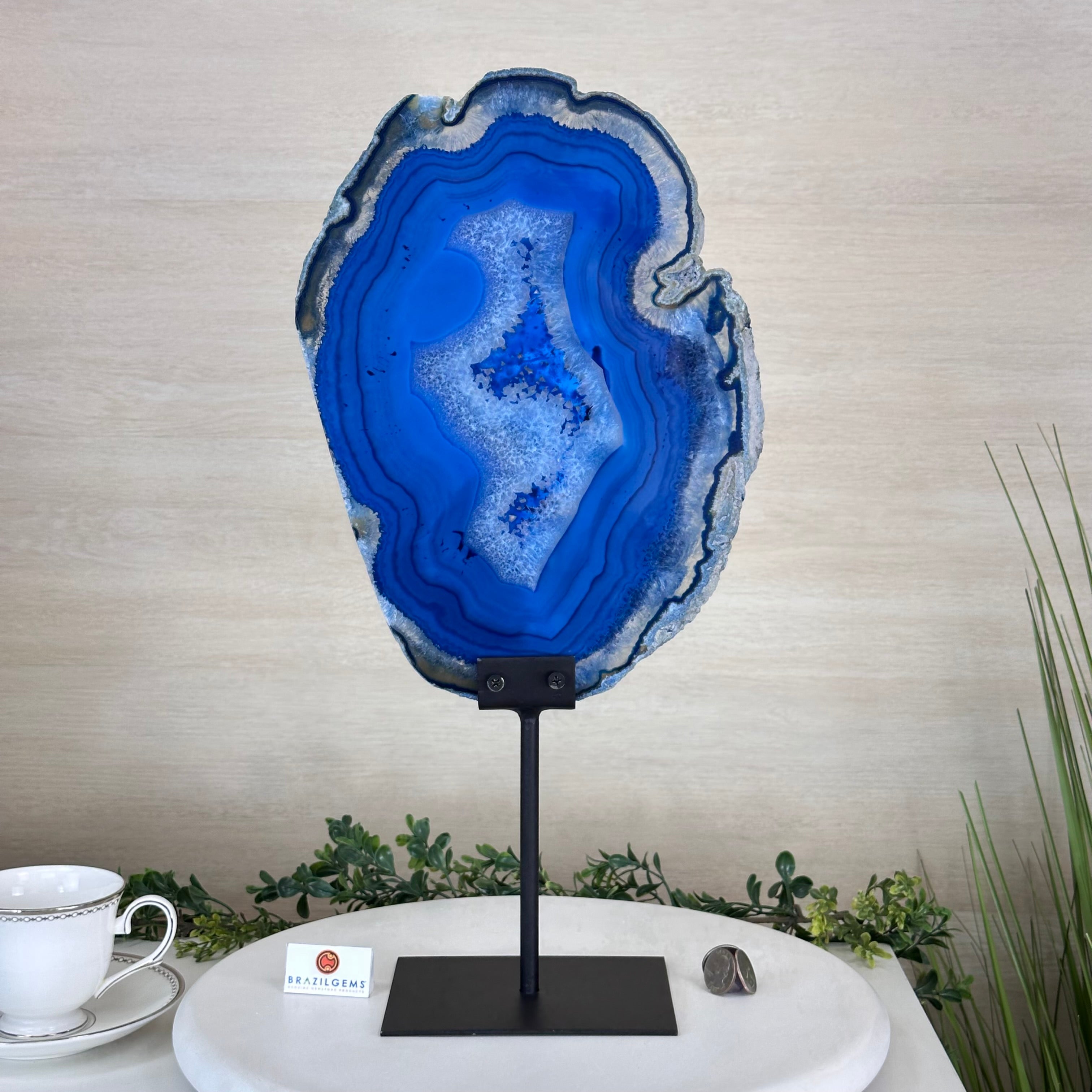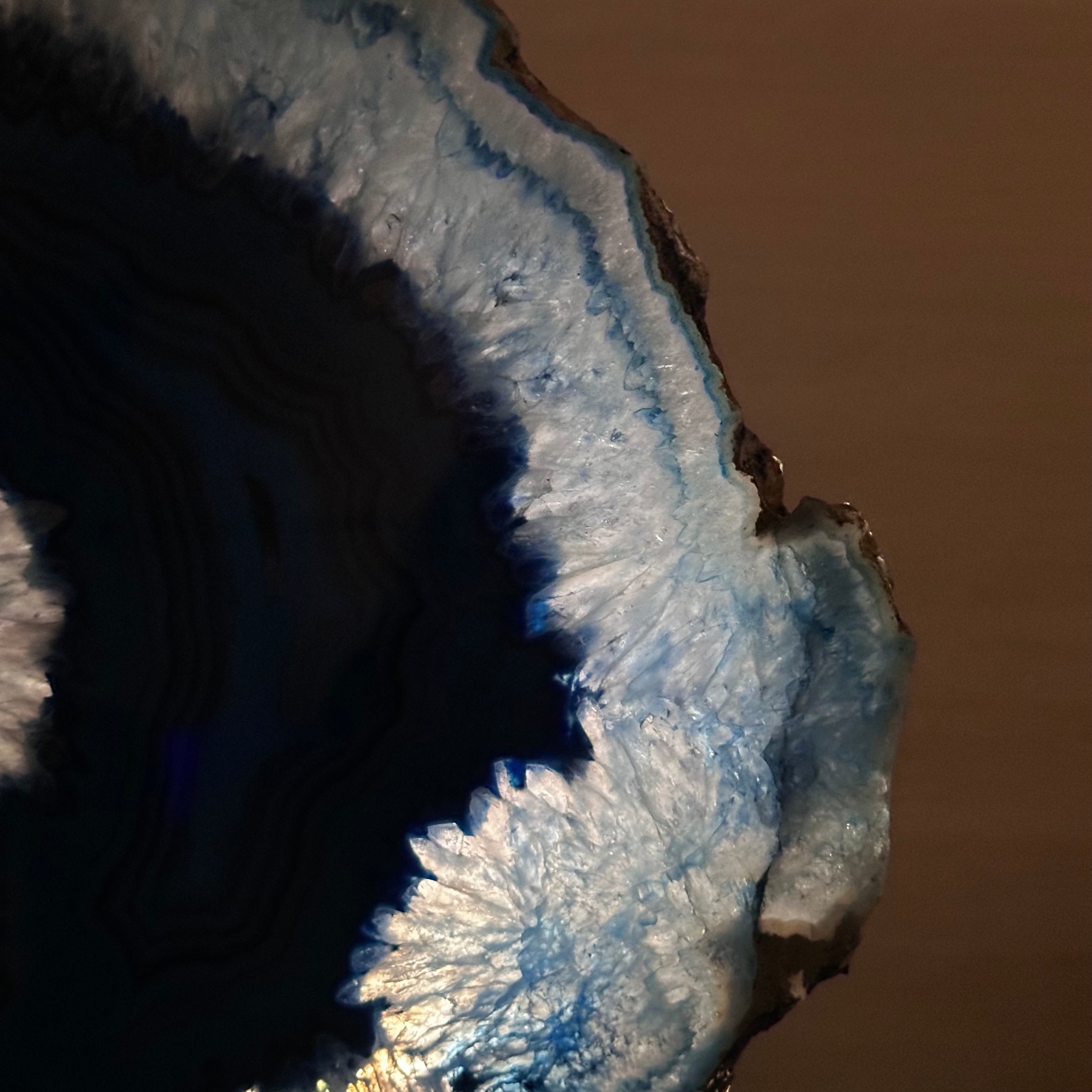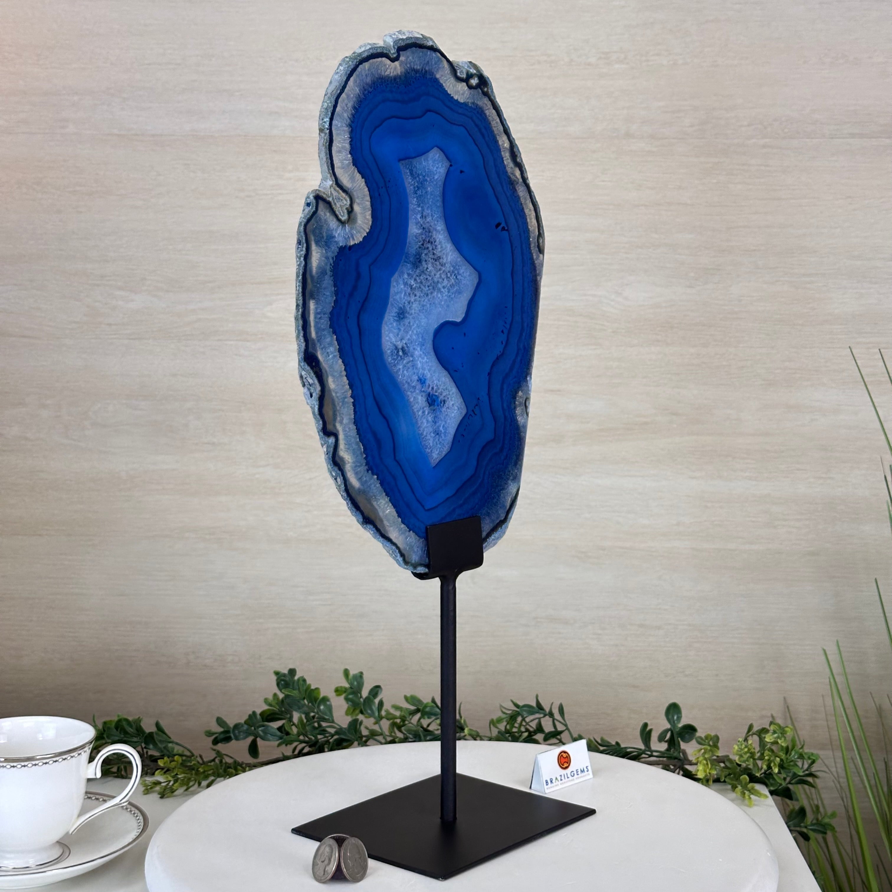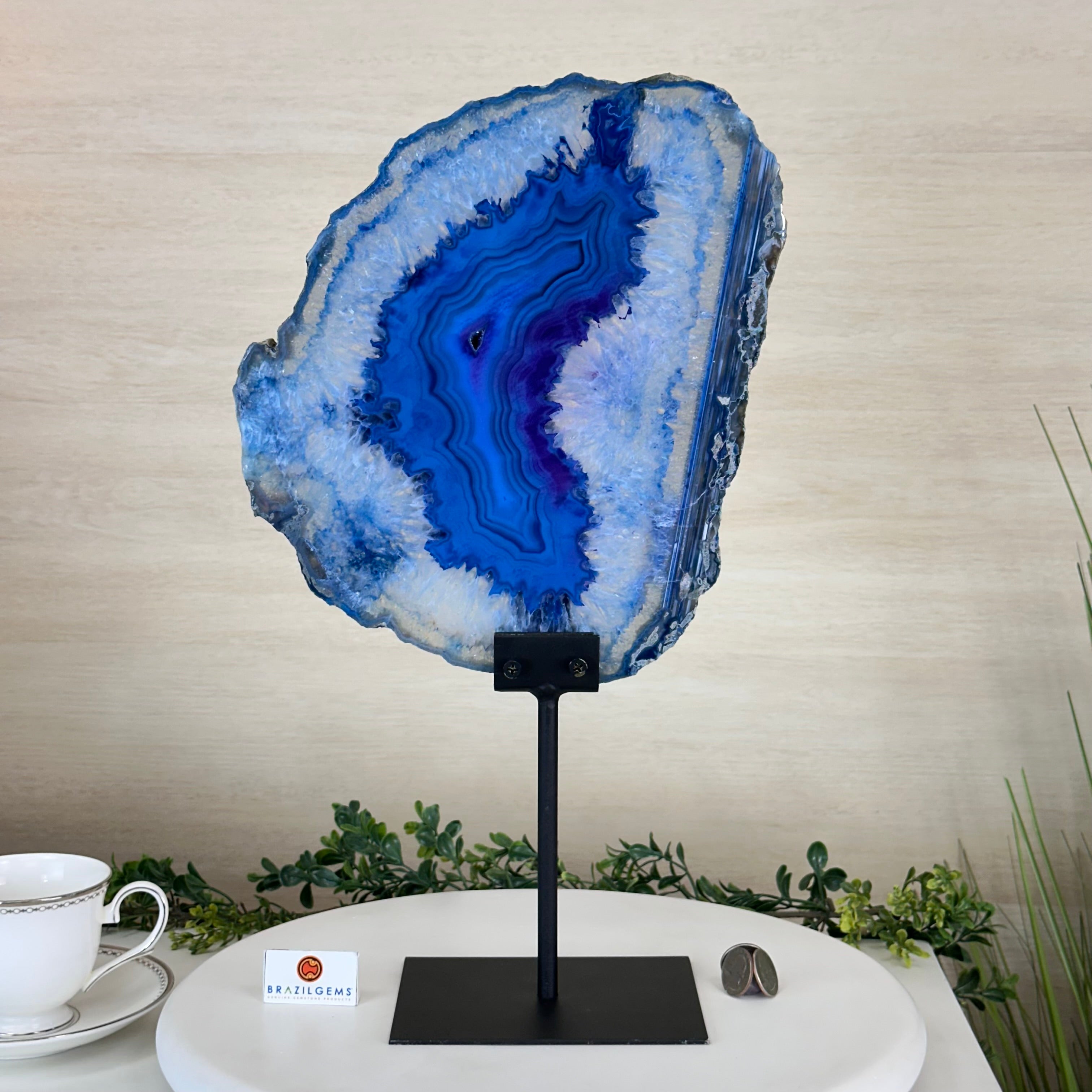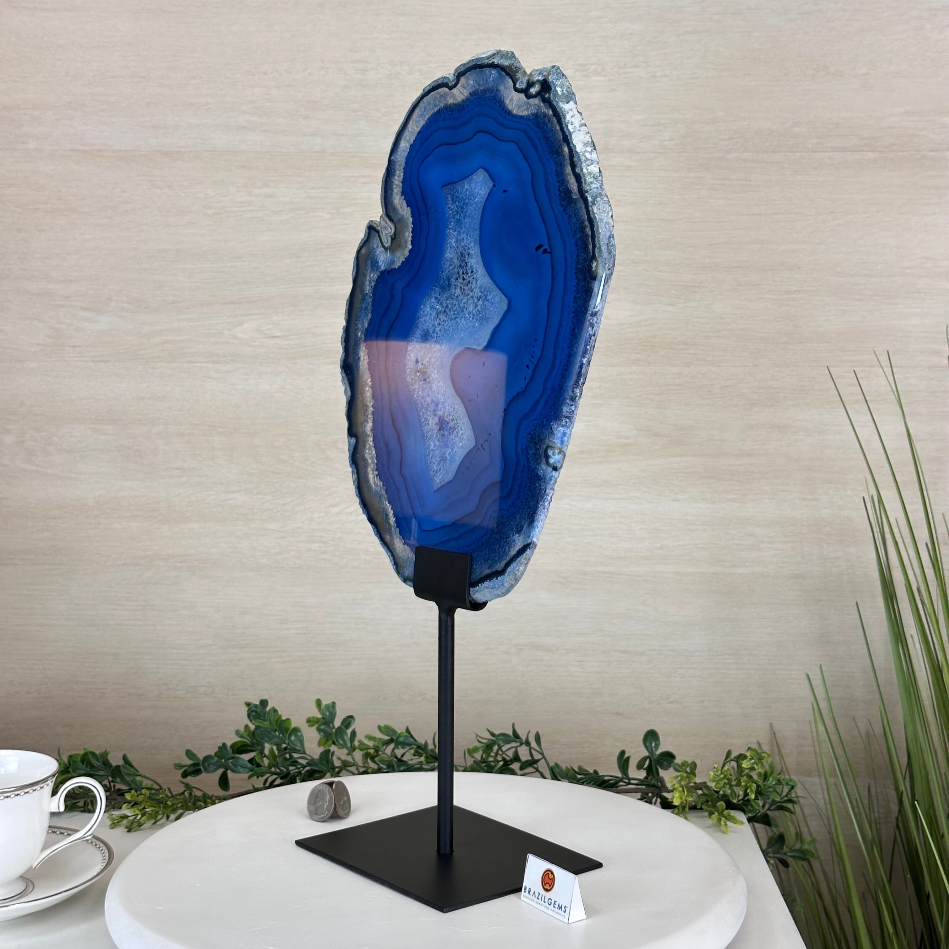 Brazilian Agate is formed in the cavities of ancient volcanic rocks. After the rock cools, microcrystal fibers collect as water pools or passes through. The layers build up over time, with different colors reflecting differences in the water’s composition. The result is a colorful reminder of the power of strength built with time.