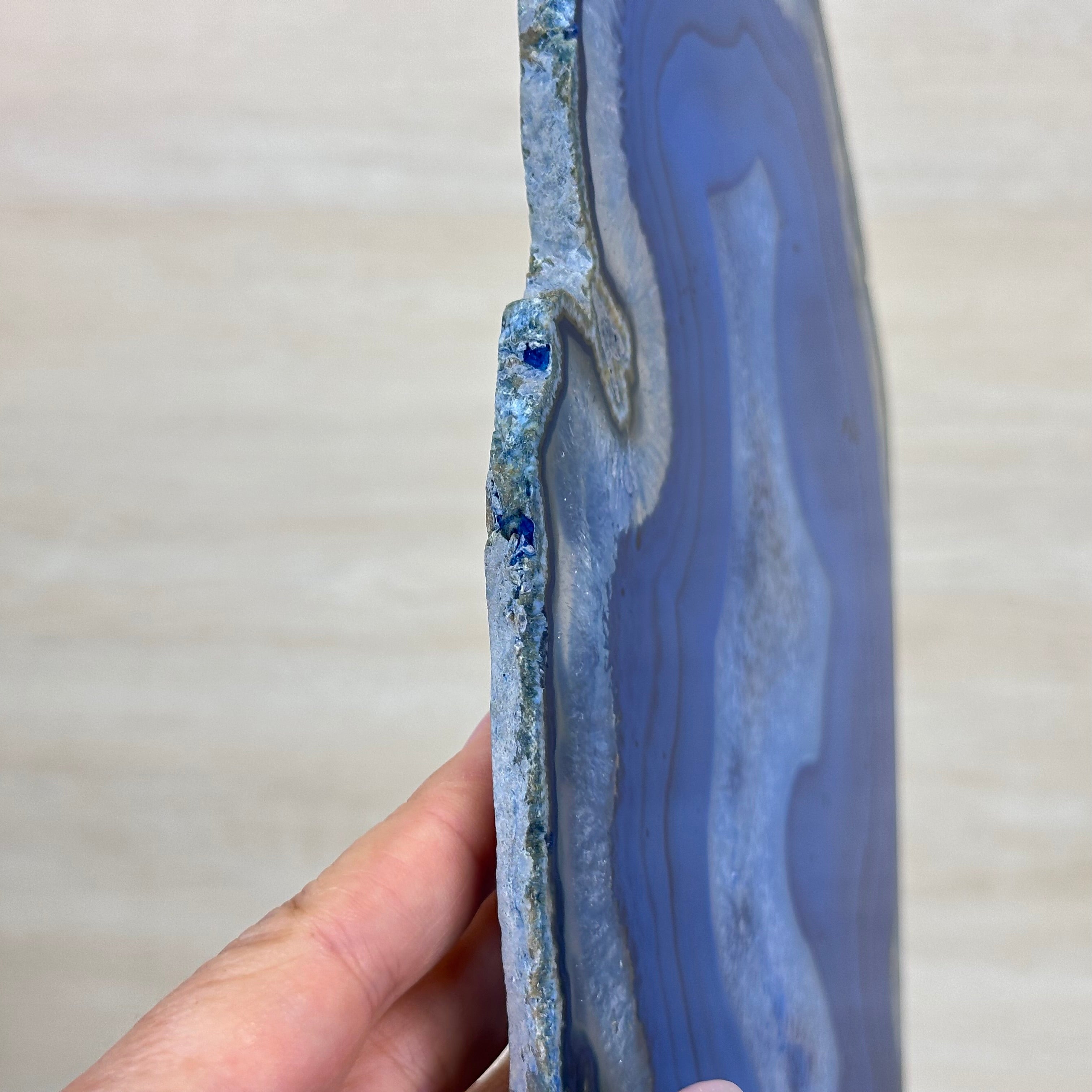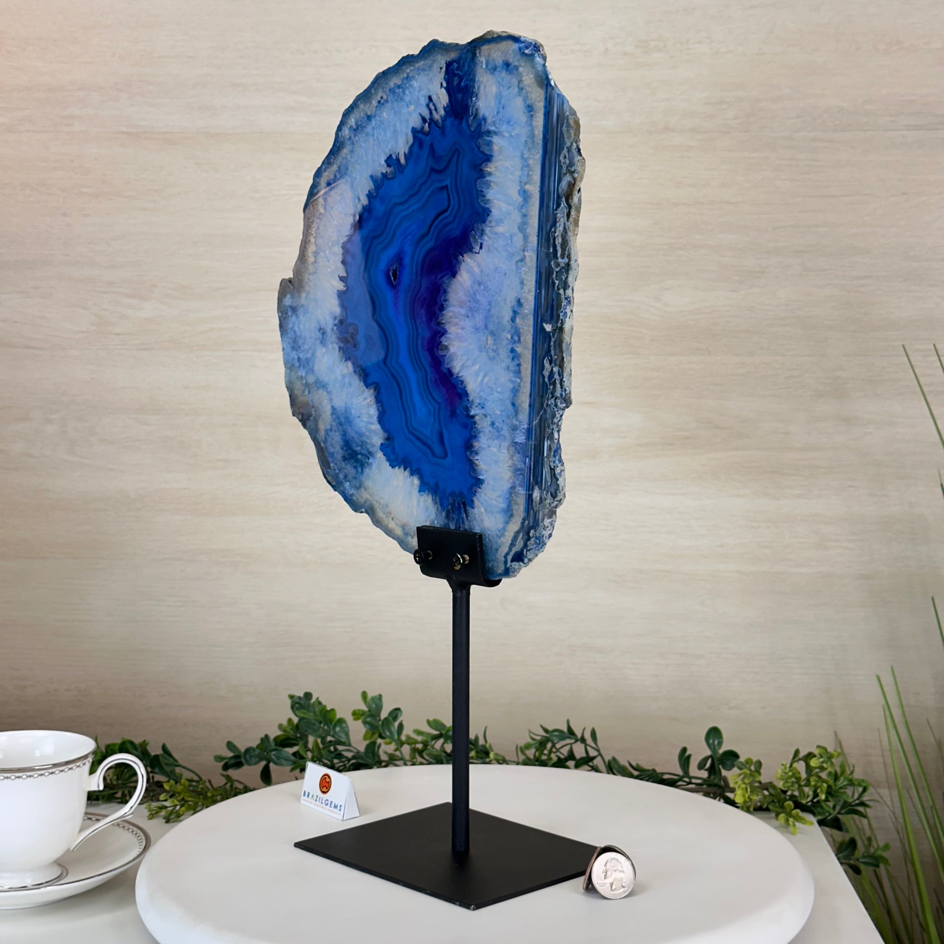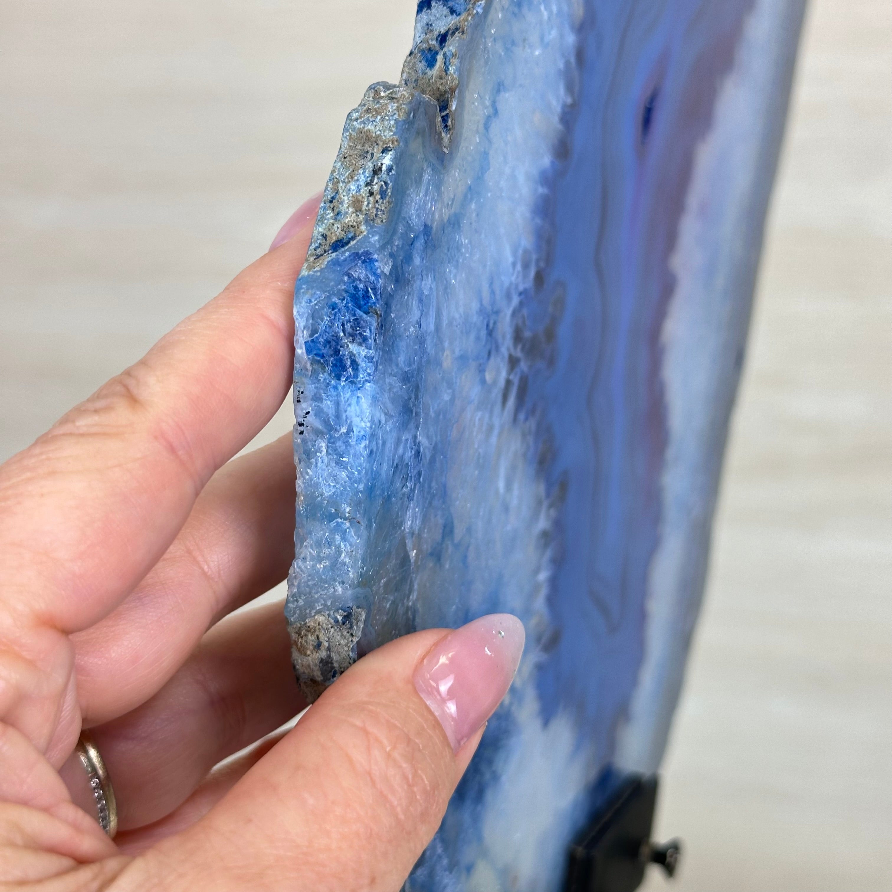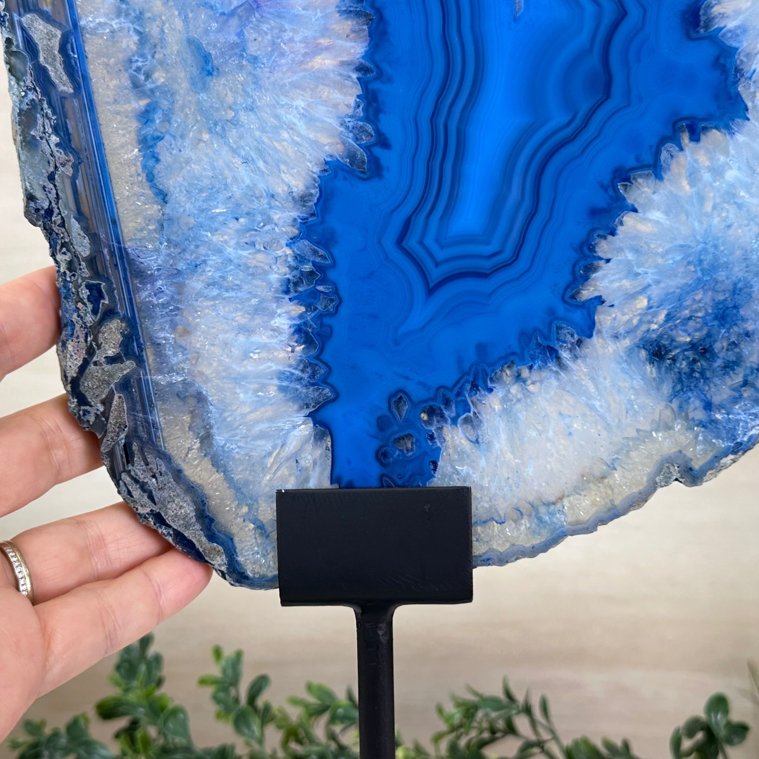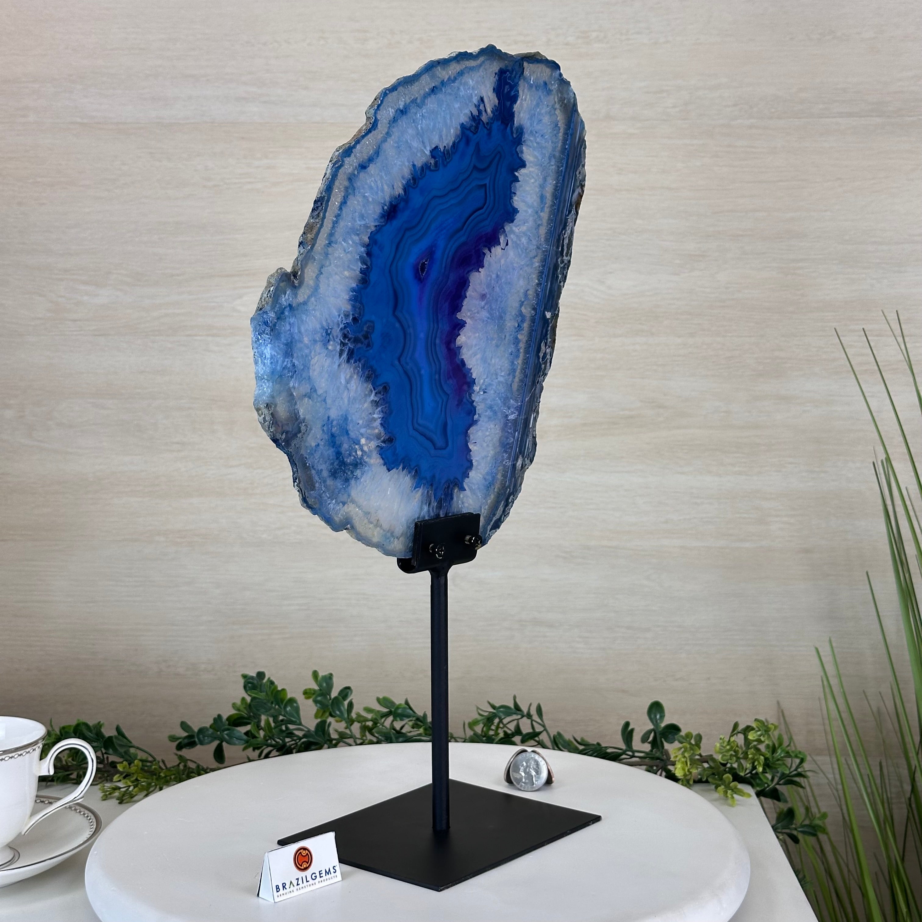 Brazilian Agate is formed in the cavities of ancient volcanic rocks. After the rock cools, microcrystal fibers collect as water pools or passes through. The layers build up over time, with different colors reflecting differences in the water’s composition. The result is a colorful reminder of the power of strength built with time.