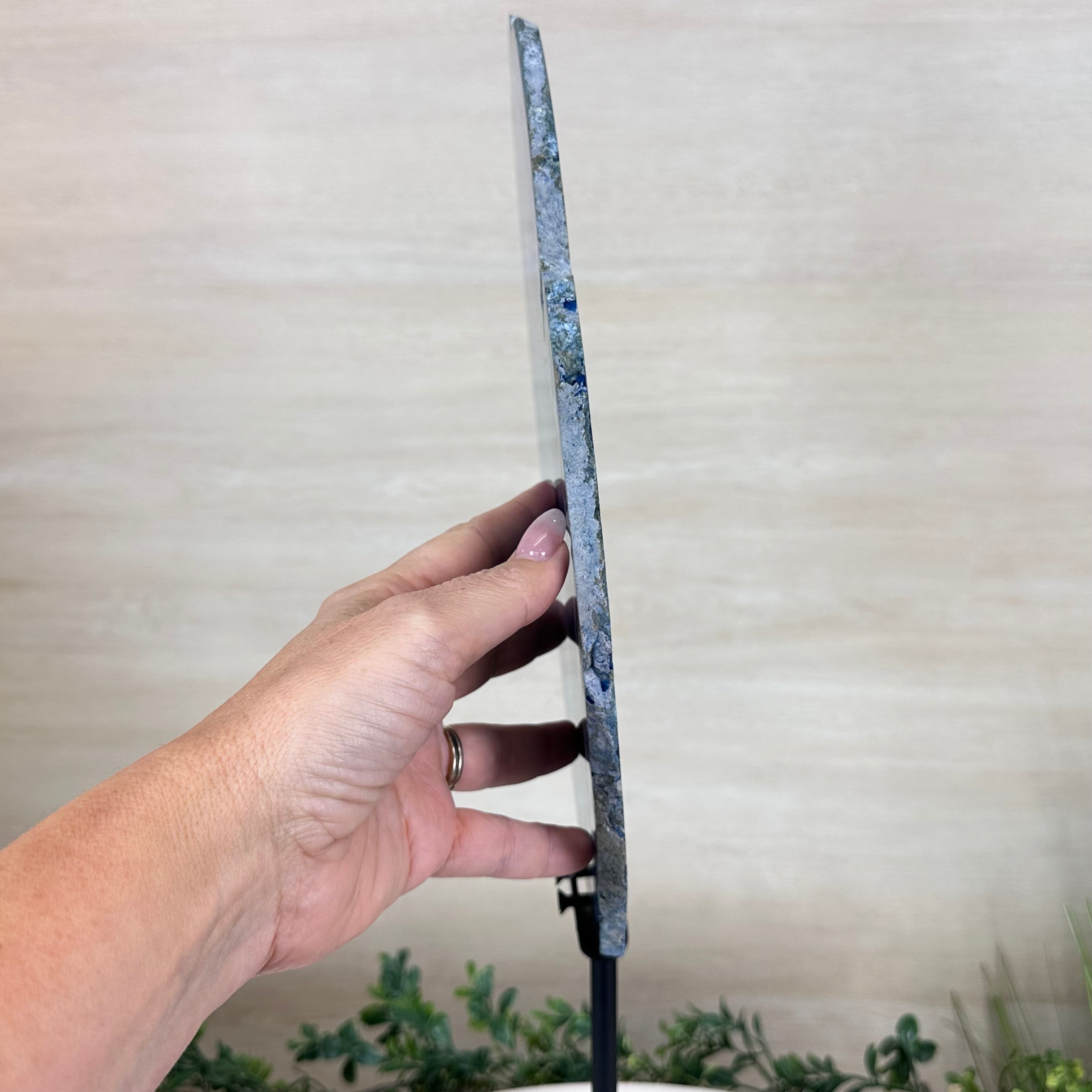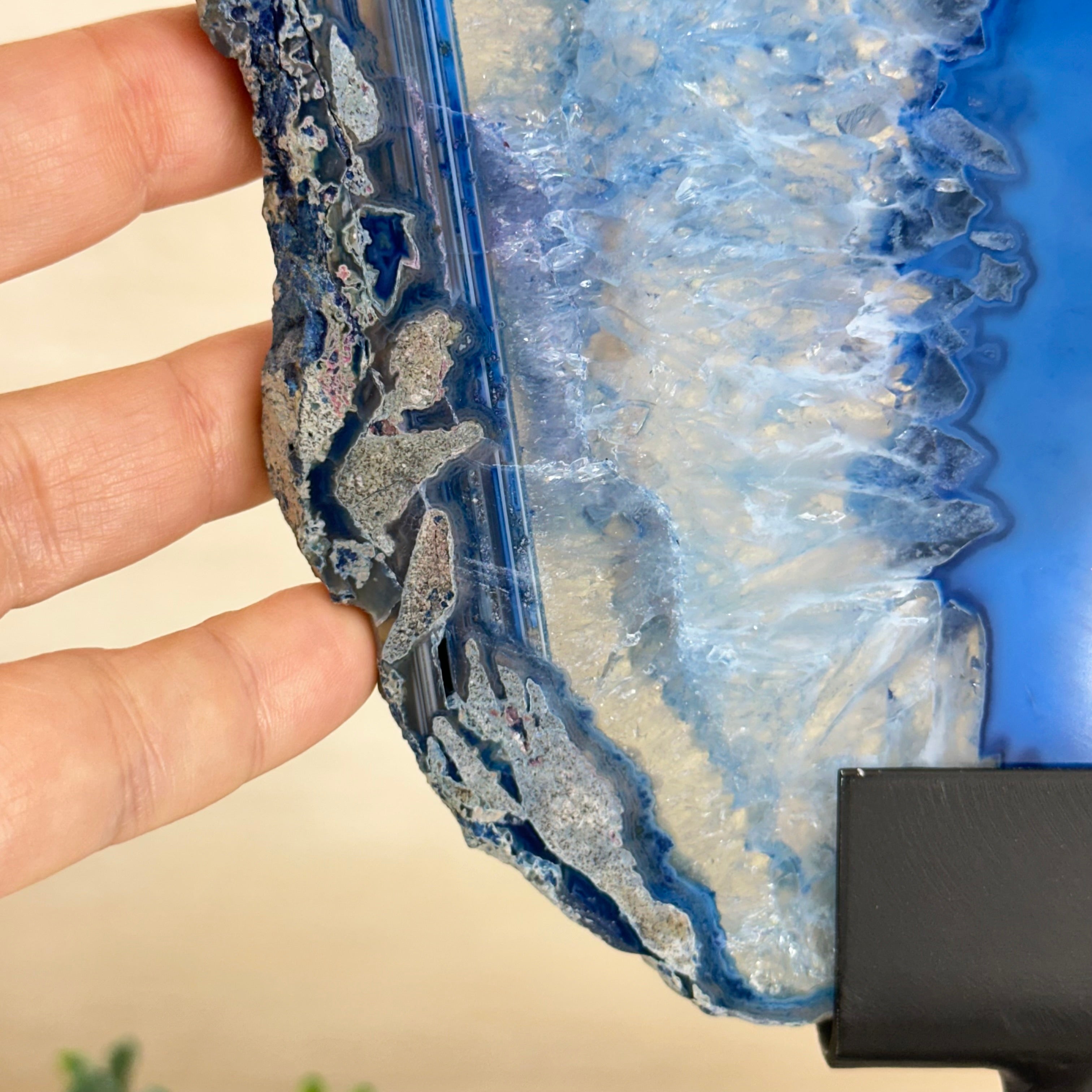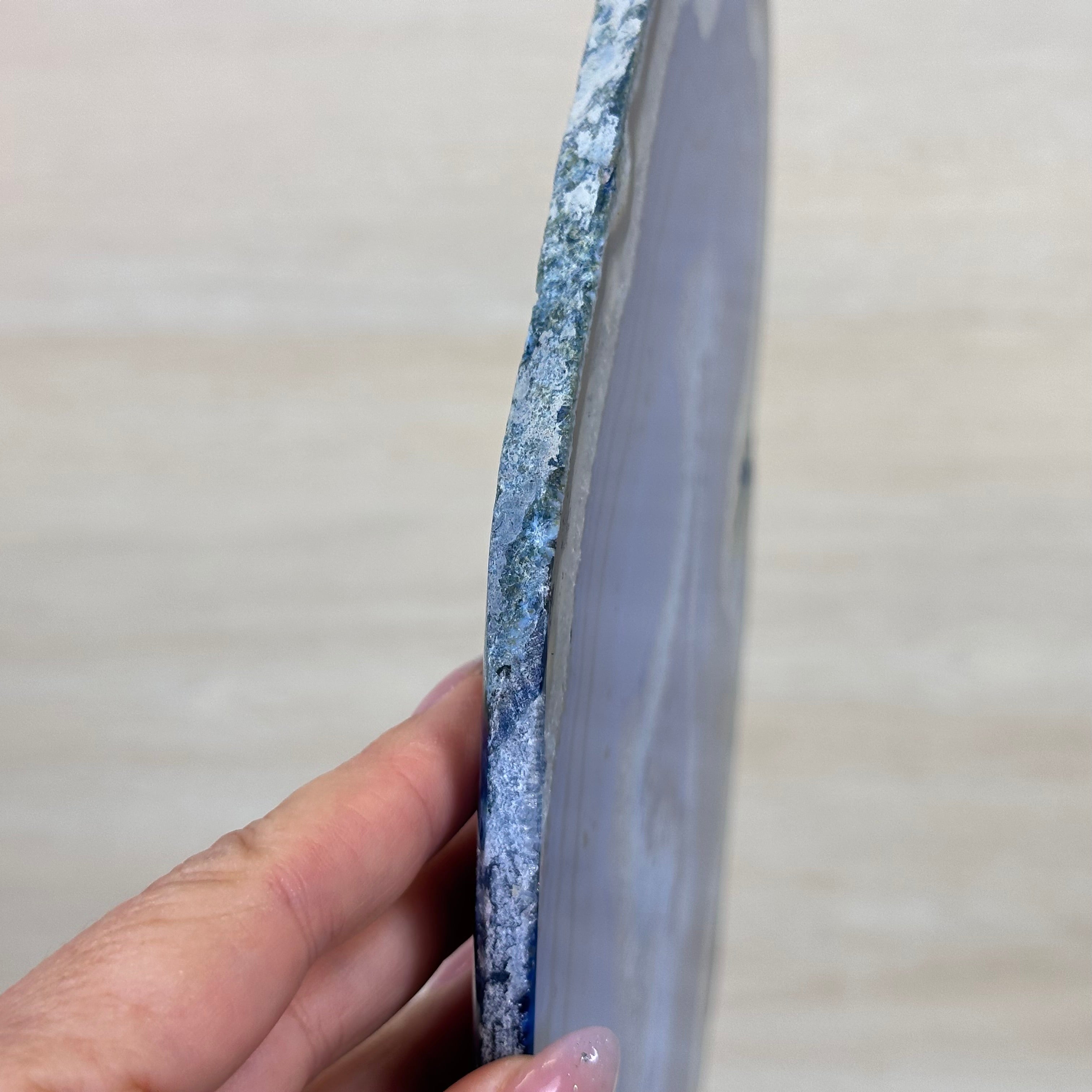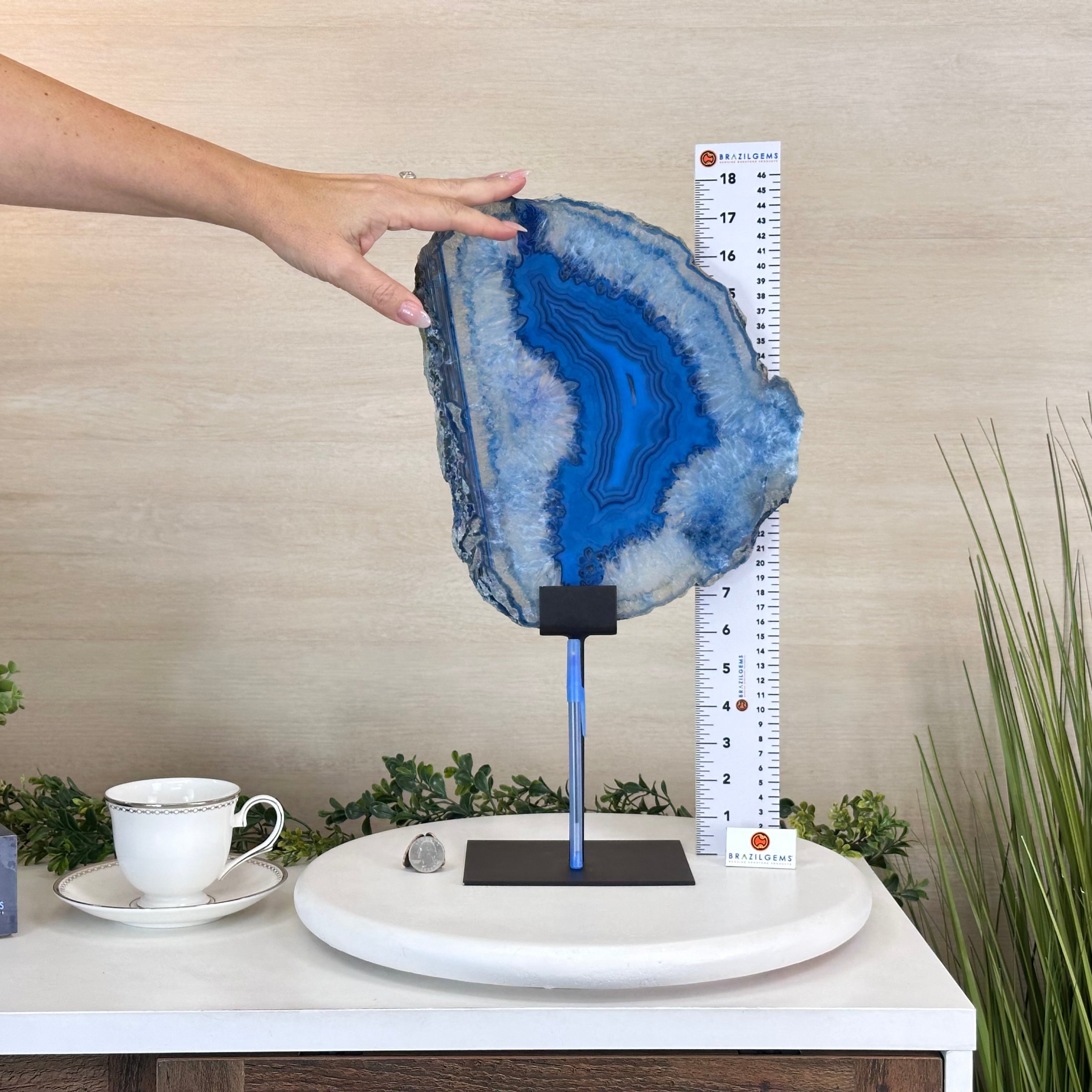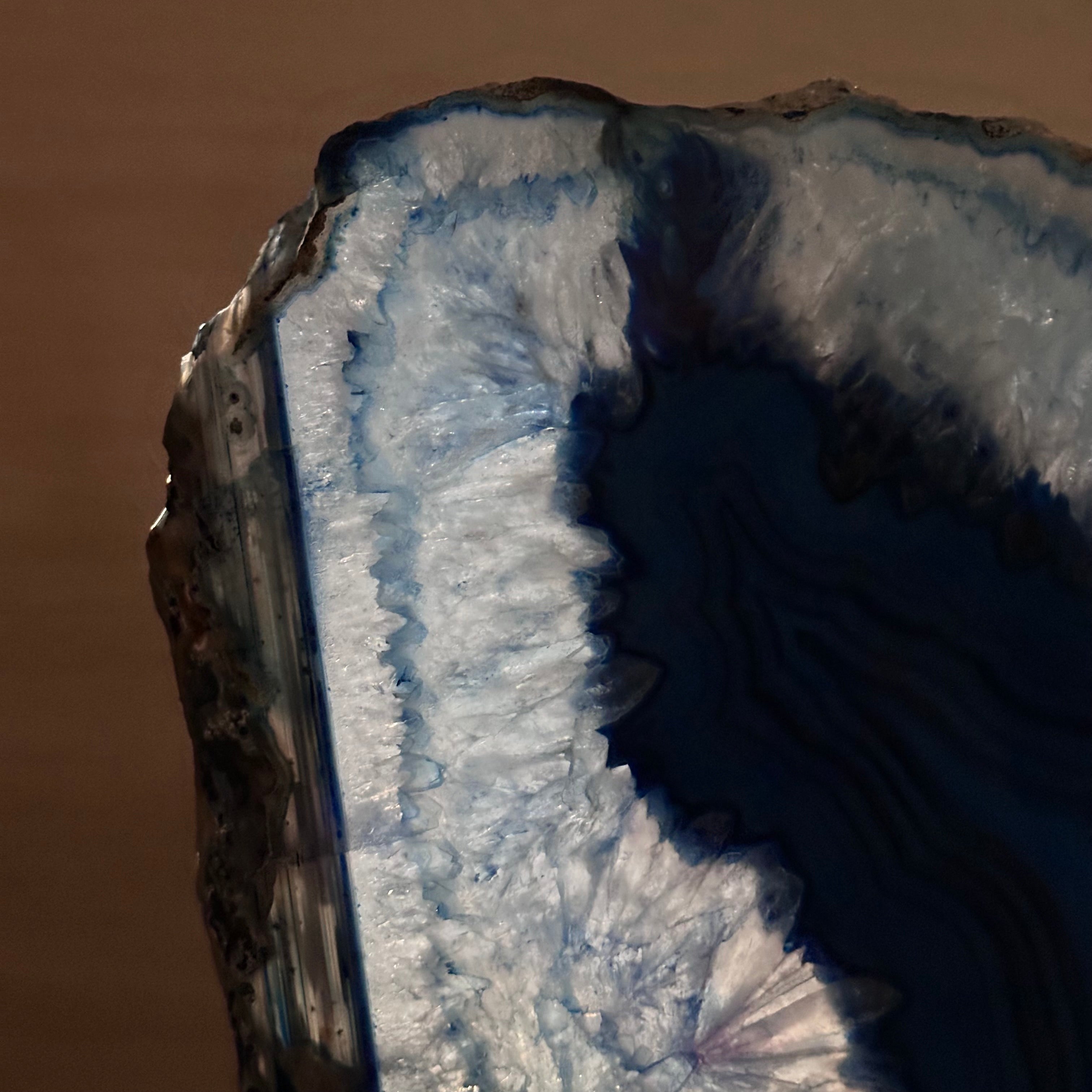 Brazilian Agate is formed in the cavities of ancient volcanic rocks. After the rock cools, microcrystal fibers collect as water pools or passes through. The layers build up over time, with different colors reflecting differences in the water’s composition. The result is a colorful reminder of the power of strength built with time.