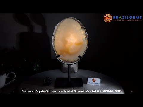 Natural Brazilian Agate Slice on a Metal Stand, 9.5" Tall #5067NA-030