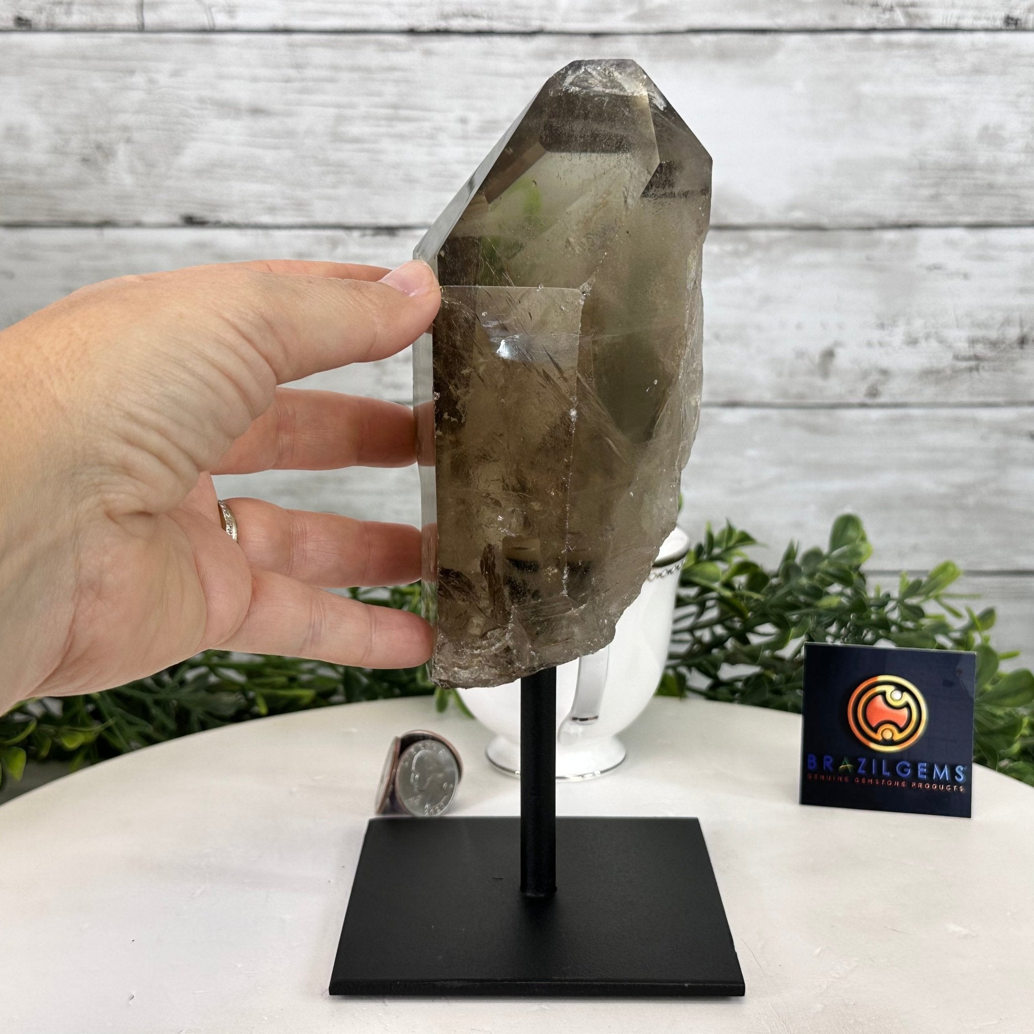 Quality Smoky Quartz Crystal Point on a Metal Stand, 8.5" Tall #3122SQ-005