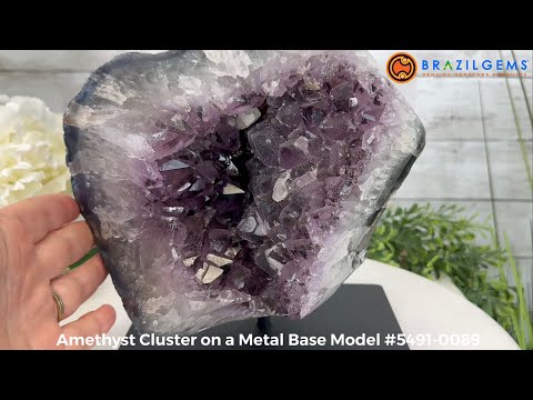 Extra Quality Amethyst Cluster on a Metal Base, 14.7 lbs & 9" Tall, Model #4491-0027