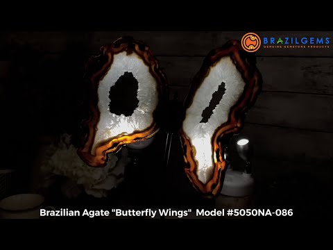 Brazil Gems® brings you this Natural Brazilian Agate Slices beautifully displayed as Butterfly Wings on a black metal stand. These are delicate and elegant pieces that will accent any décor and make for great gifts to a loved one. They are translucent and will look amazing with light behind or placed by a window.