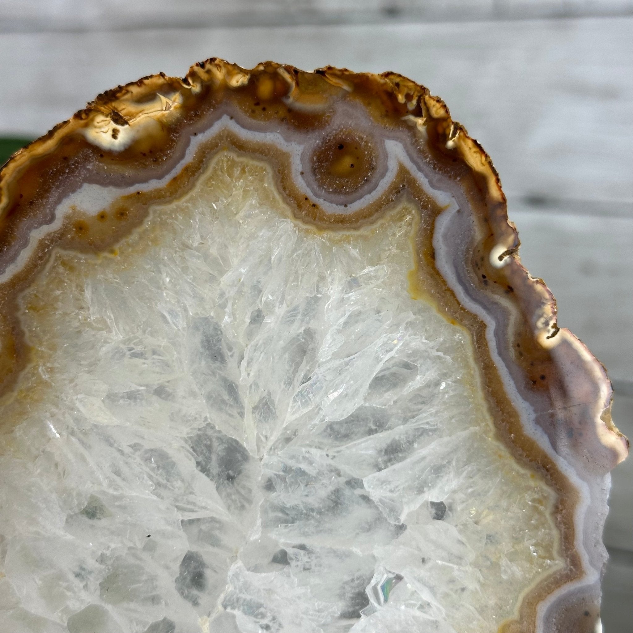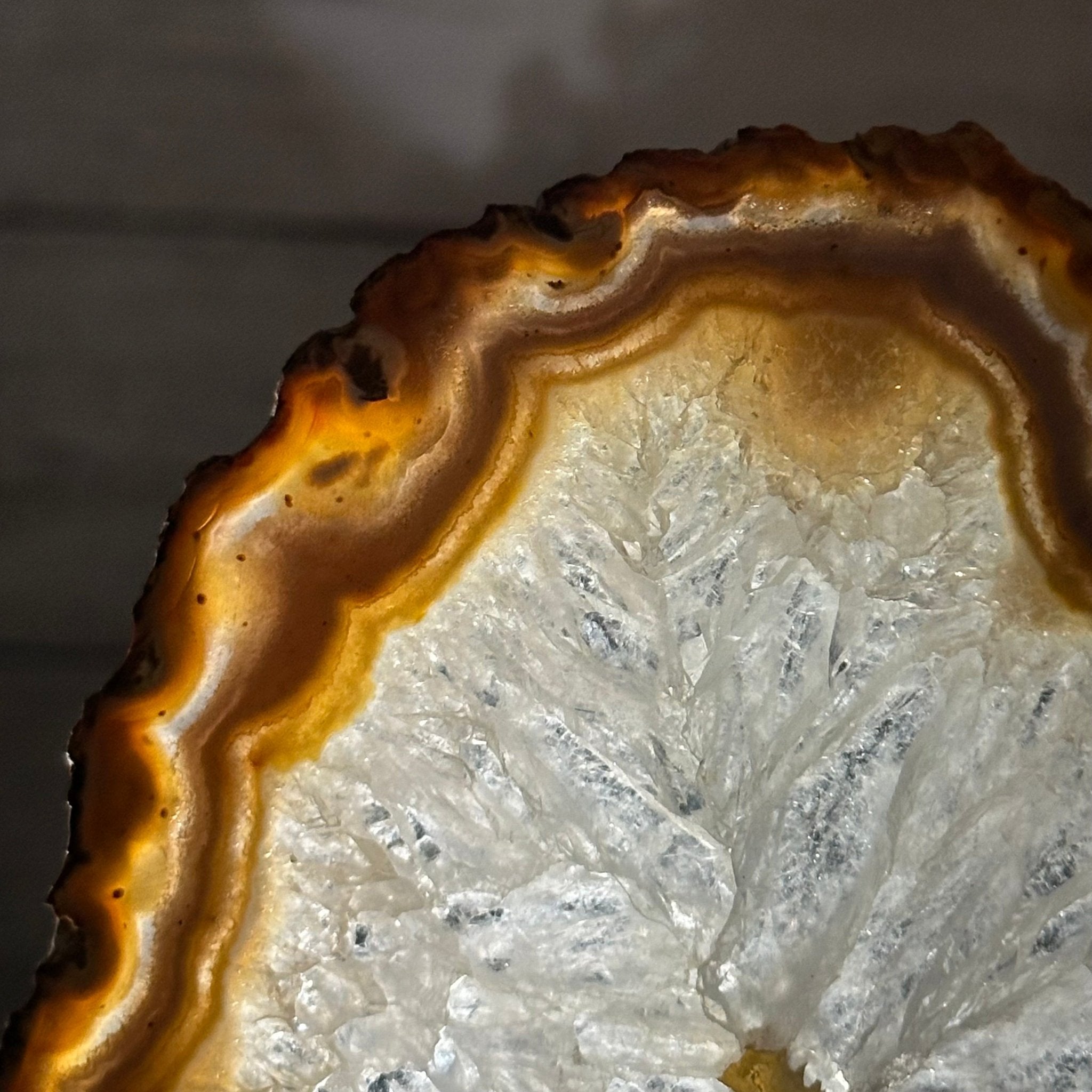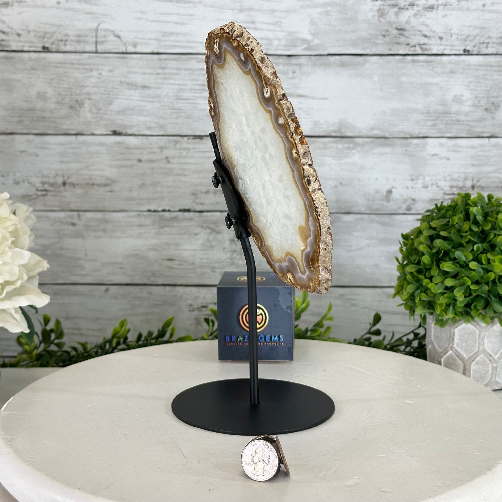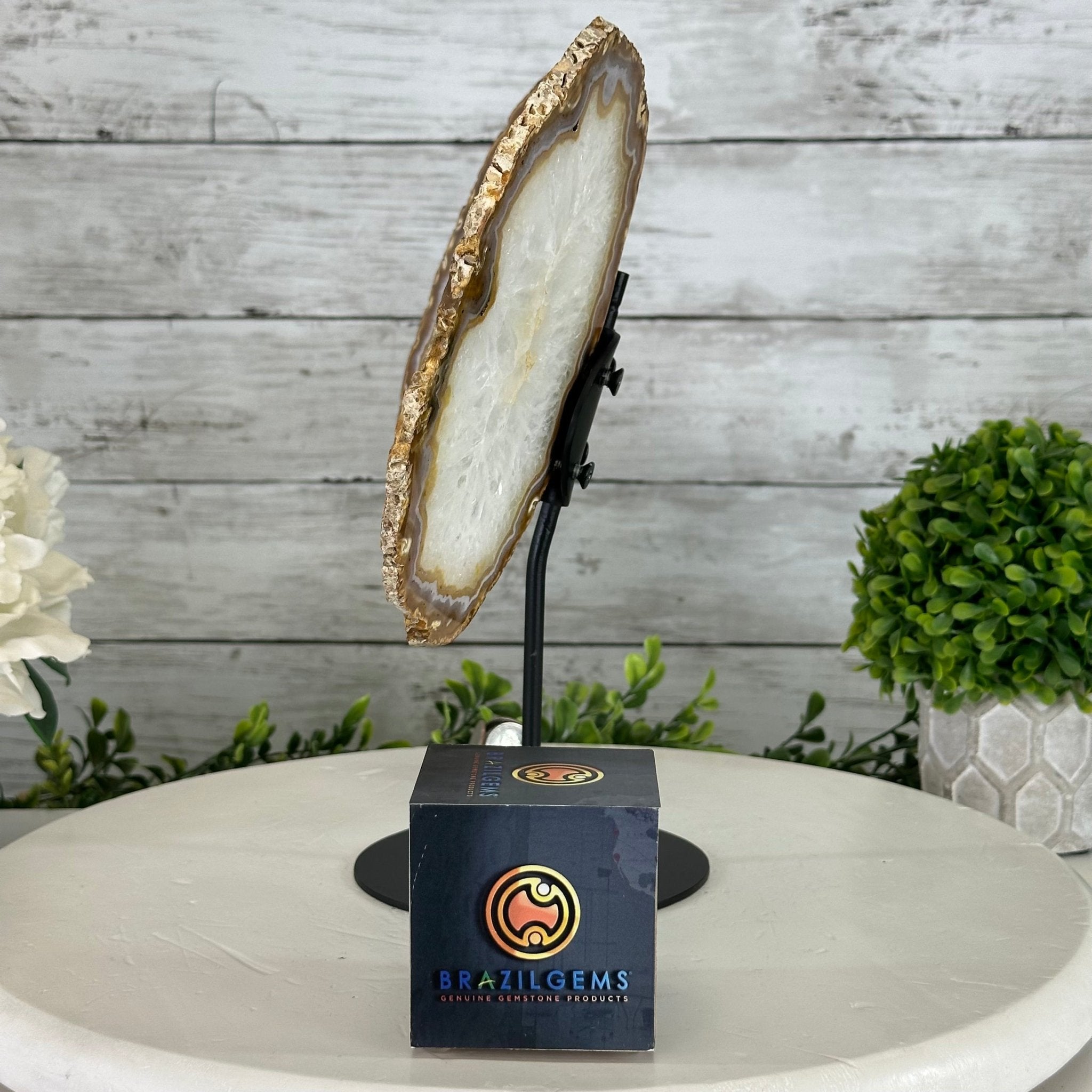 Brazil Gems® brings you this Natural Brazilian Agate Slices beautifully displayed as Butterfly Wings on a black metal stand. These are delicate and elegant pieces that will accent any décor and make for great gifts to a loved one. They are translucent and will look amazing with light behind or placed by a window.