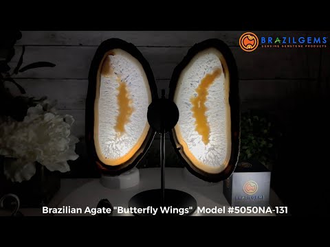 Brazil Gems® brings you this Natural Brazilian Agate Slices beautifully displayed as Butterfly Wings on a black metal stand. These are delicate and elegant pieces that will accent any décor and make for great gifts to a loved one. They are translucent and will look amazing with light behind or placed by a window.