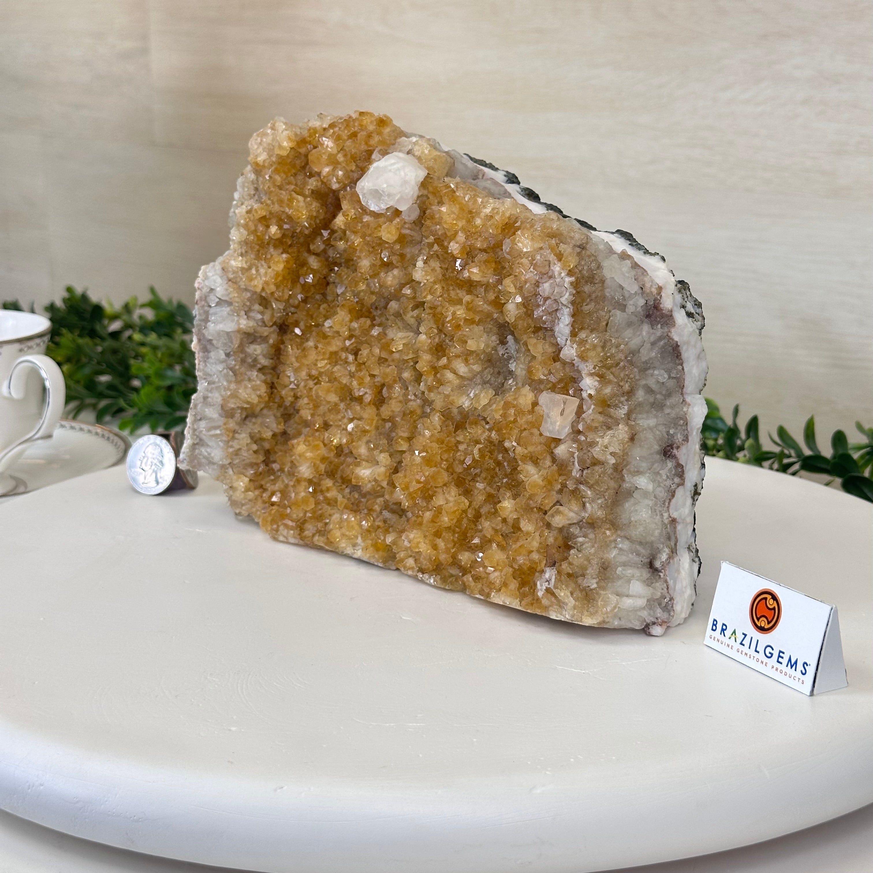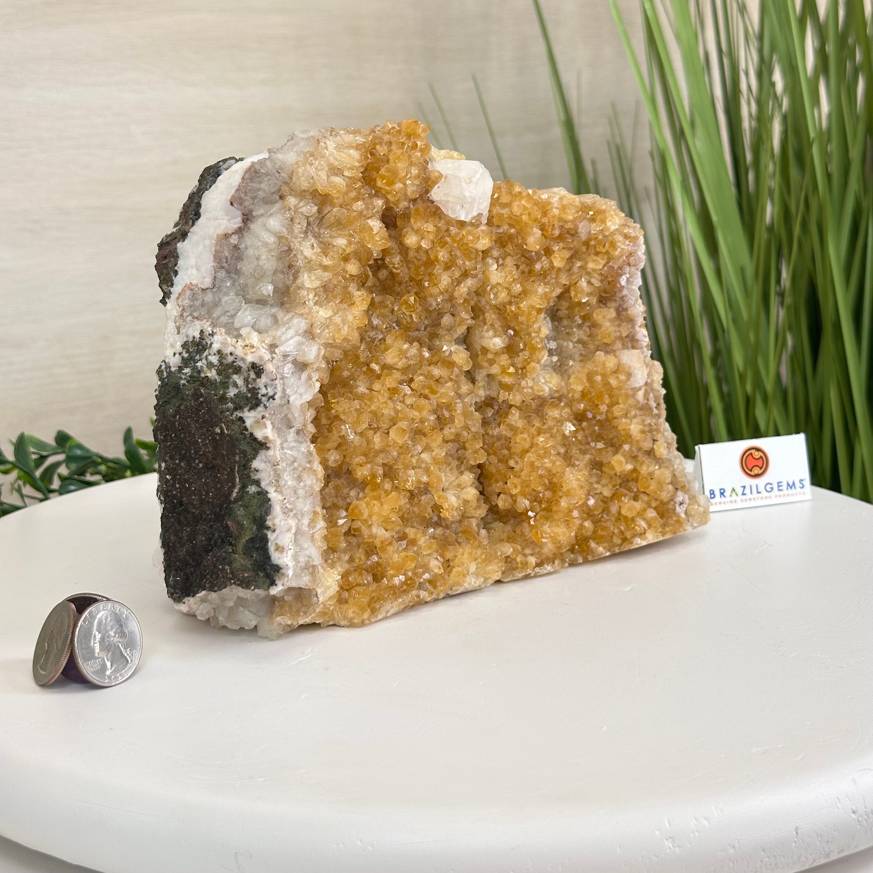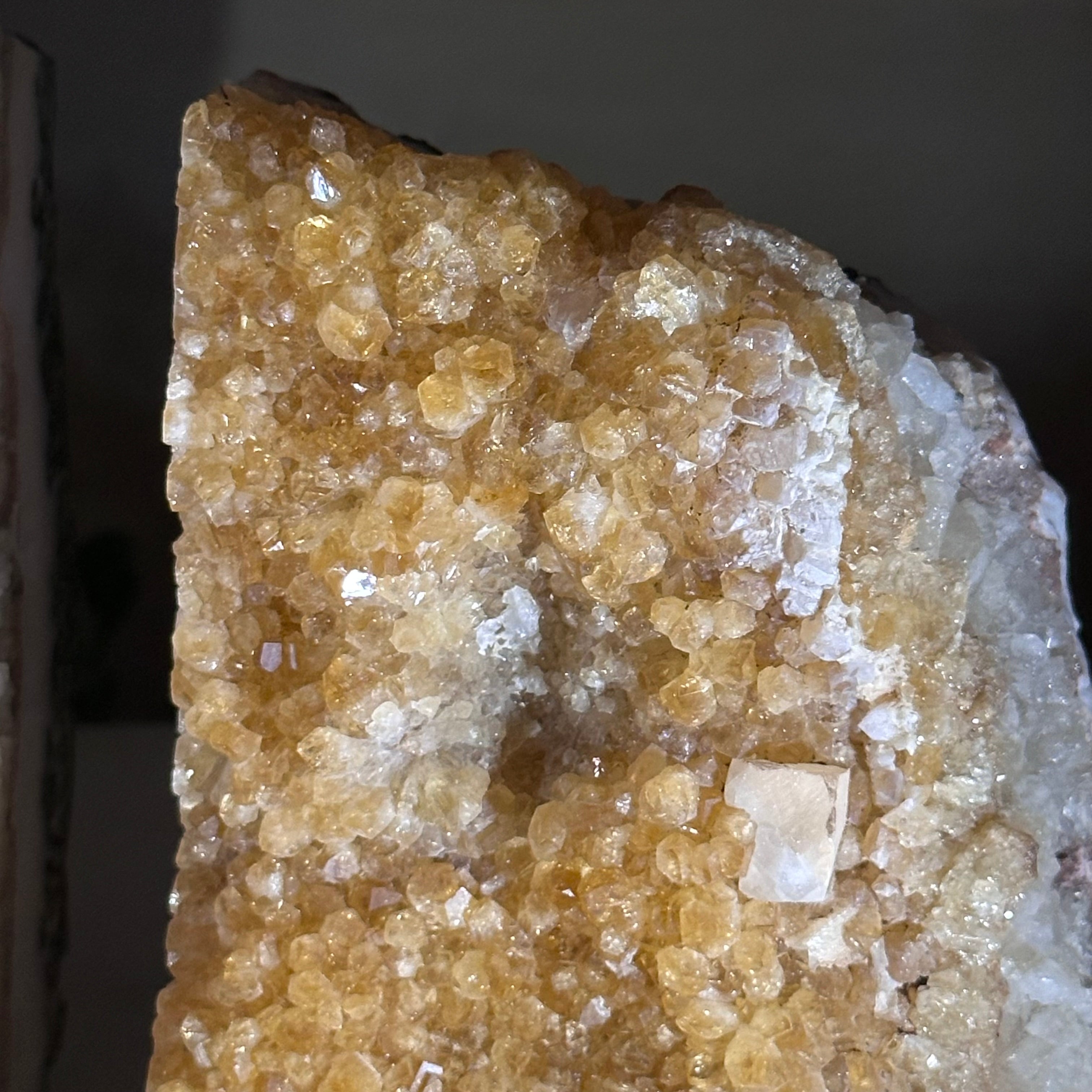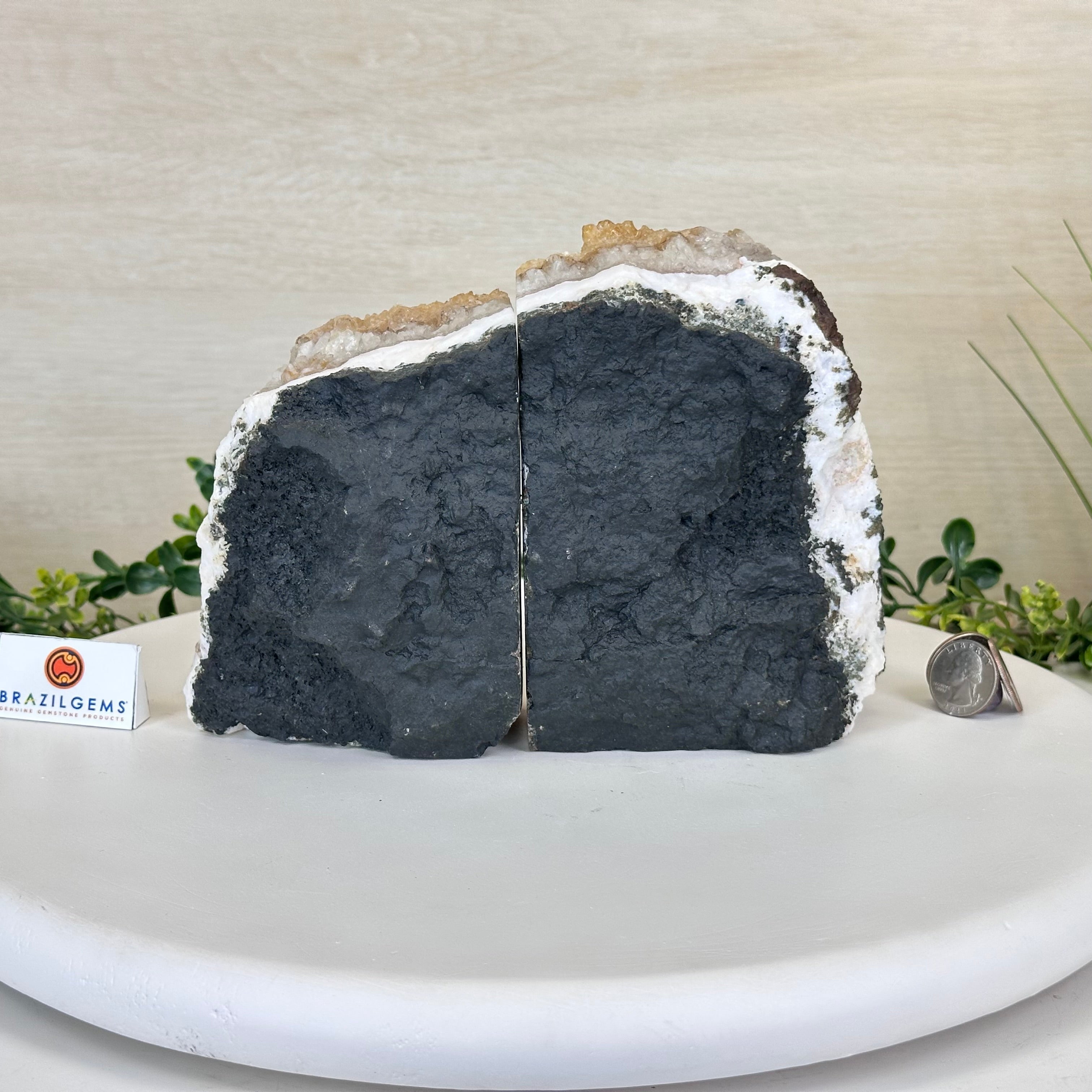 Formed from genuine Brazilian citrine geodes, these Citrine Crystal bookends showcase sparkling drusy points across the front, with interior sides and bases polished smooth for balance and stability. Each pair reveals citrine’s warm amber and golden hues, blending raw crystal radiance with refined craftsmanship. As is the case for the majority of Citrine on the market from Brazil, this Citrine has been heated to give it its beautiful amber color.