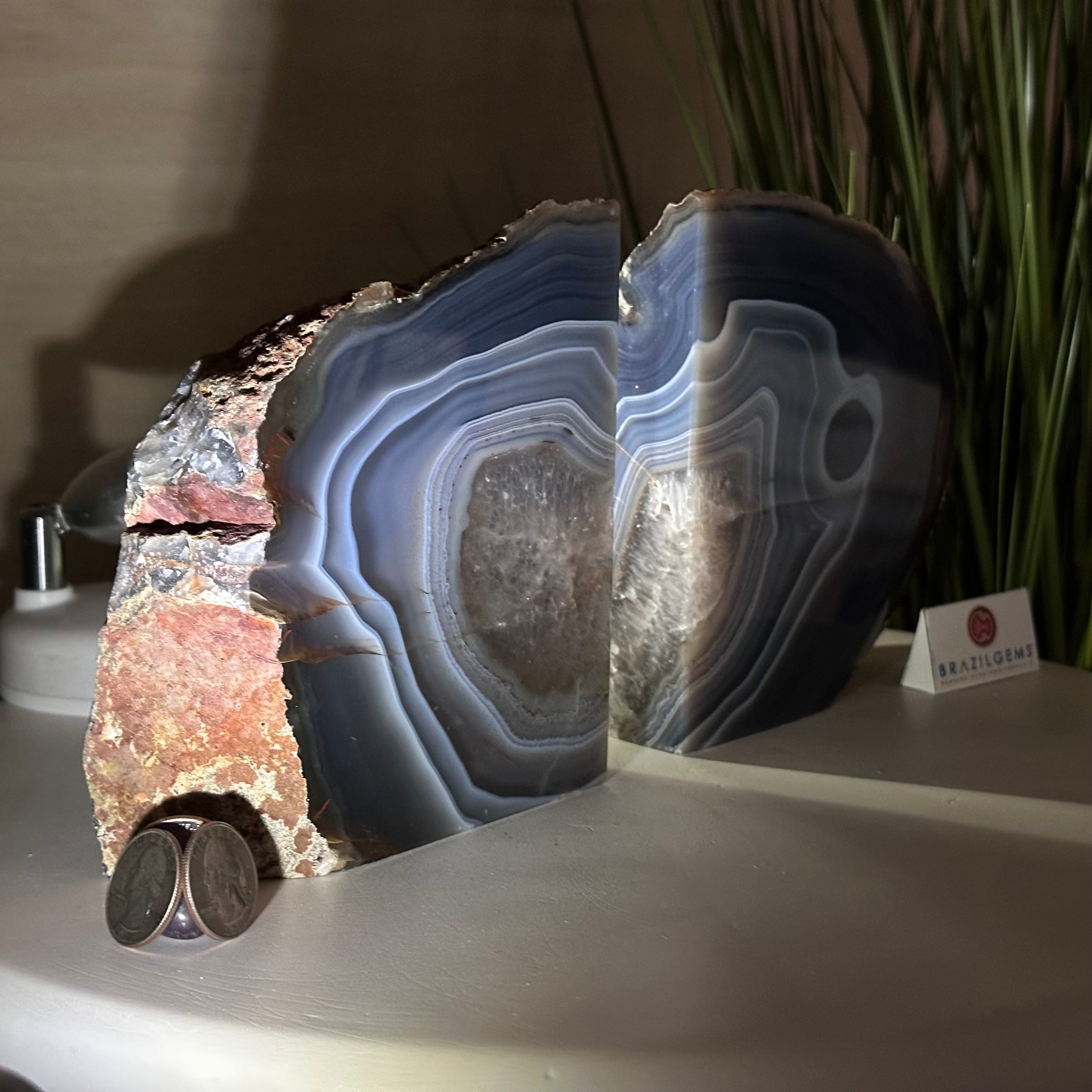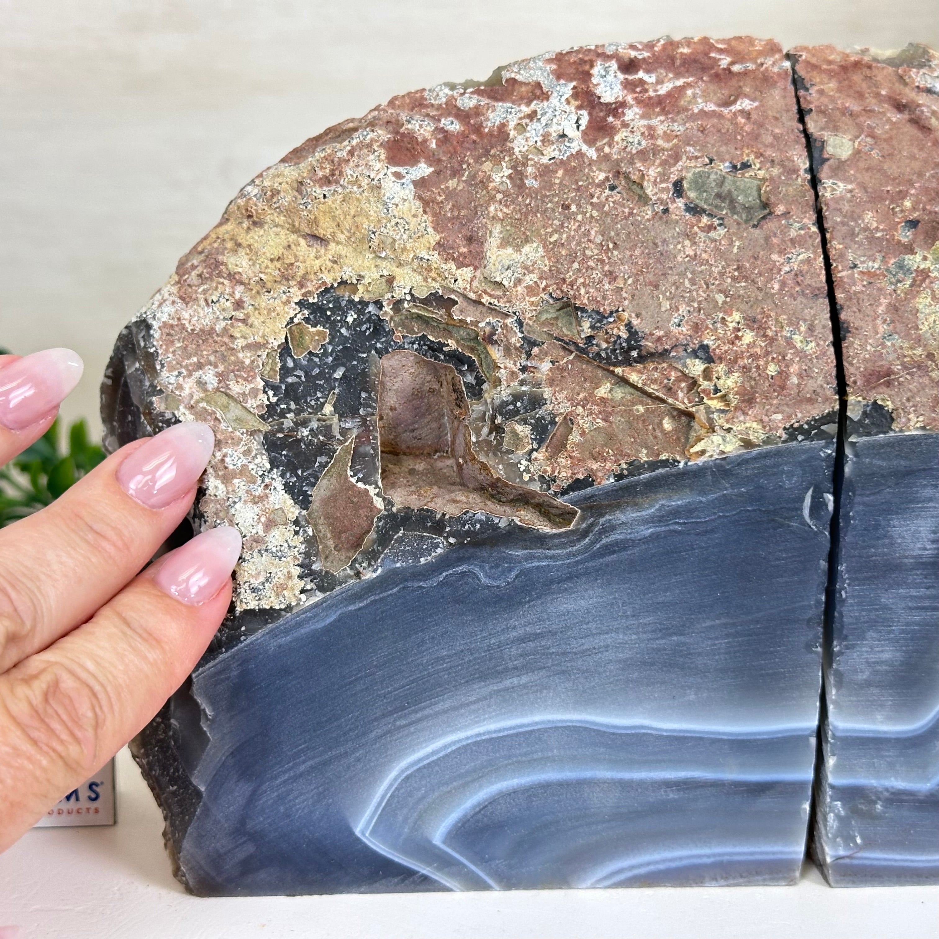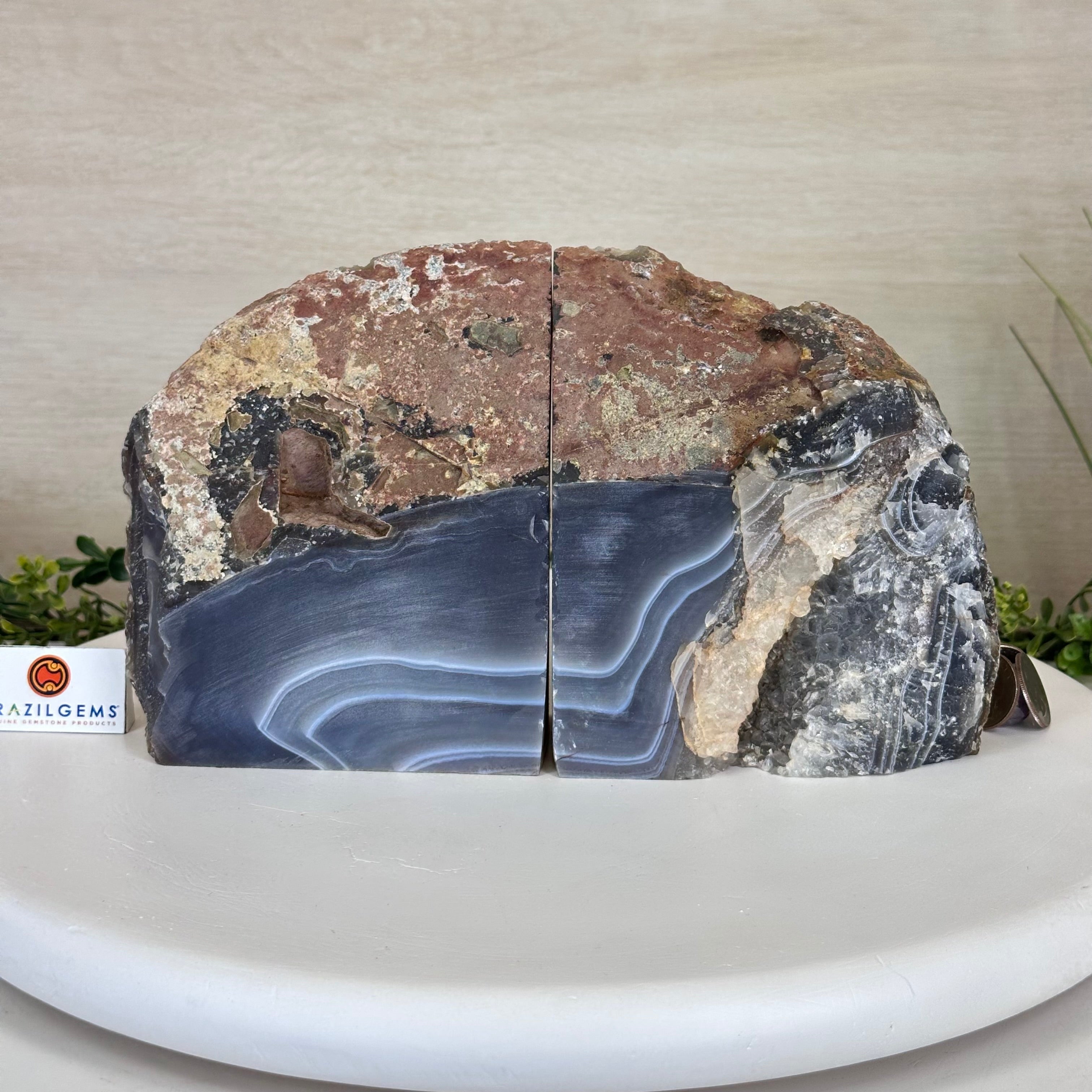 Natural Brazilian Agate Stone Bookends, 8 lbs & 5.9" Tall #5151NA-065