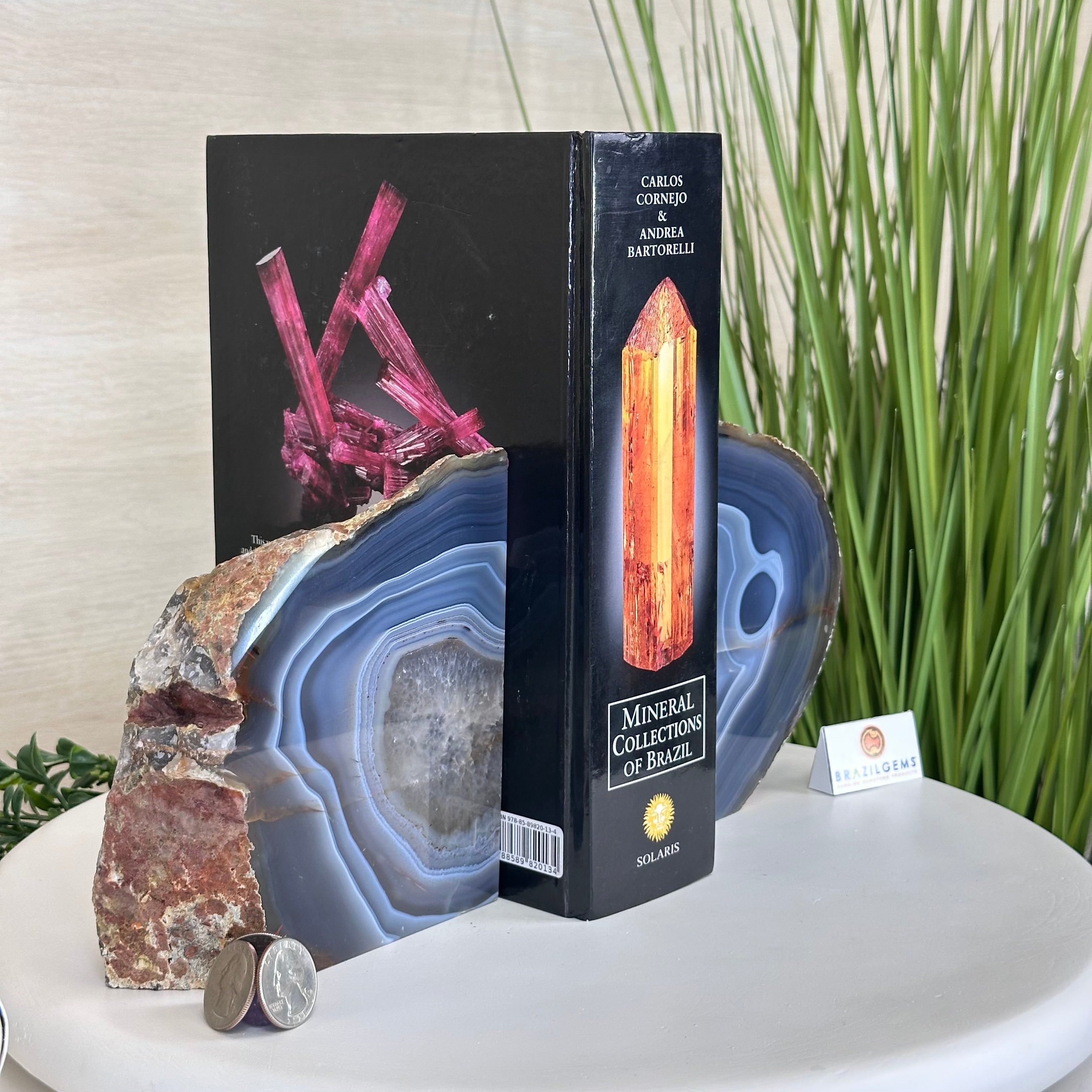 These are polished Natural Brazilian Agate stones perfectly cut to be used as Bookends. With striking colors and unique design you'll enjoy this piece for years to come.