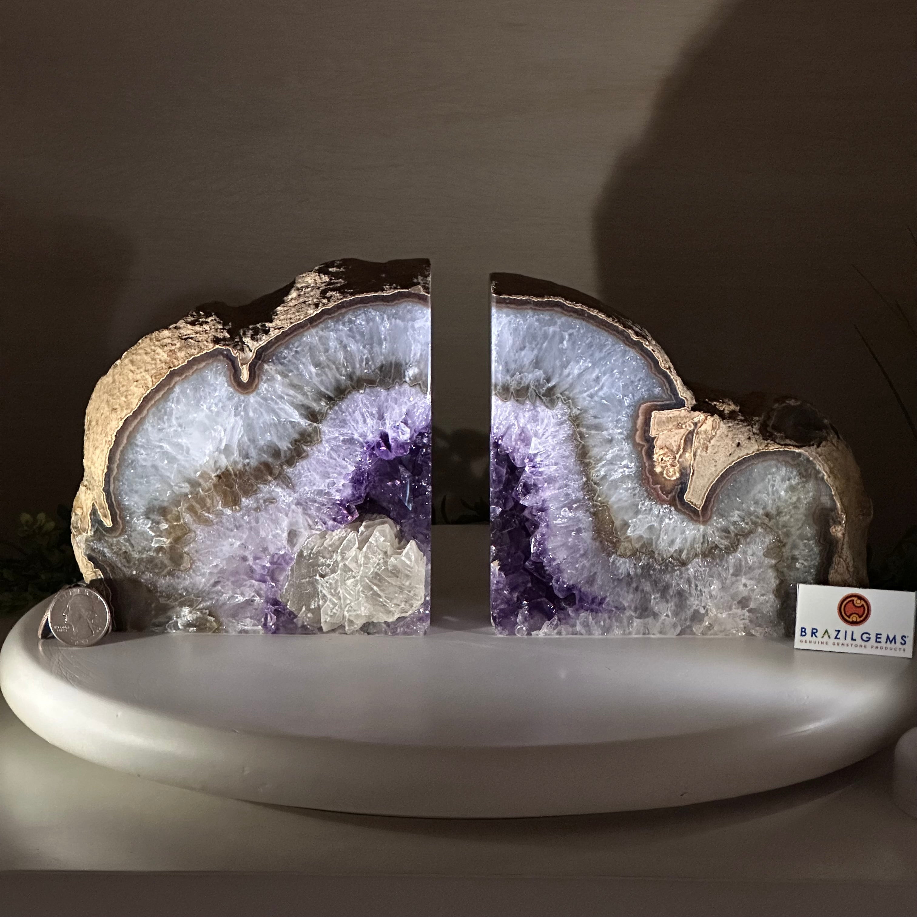 Natural Brazilian Agate Stone Bookends, 10.2 lbs & 5.8" Tall #5151NA-066