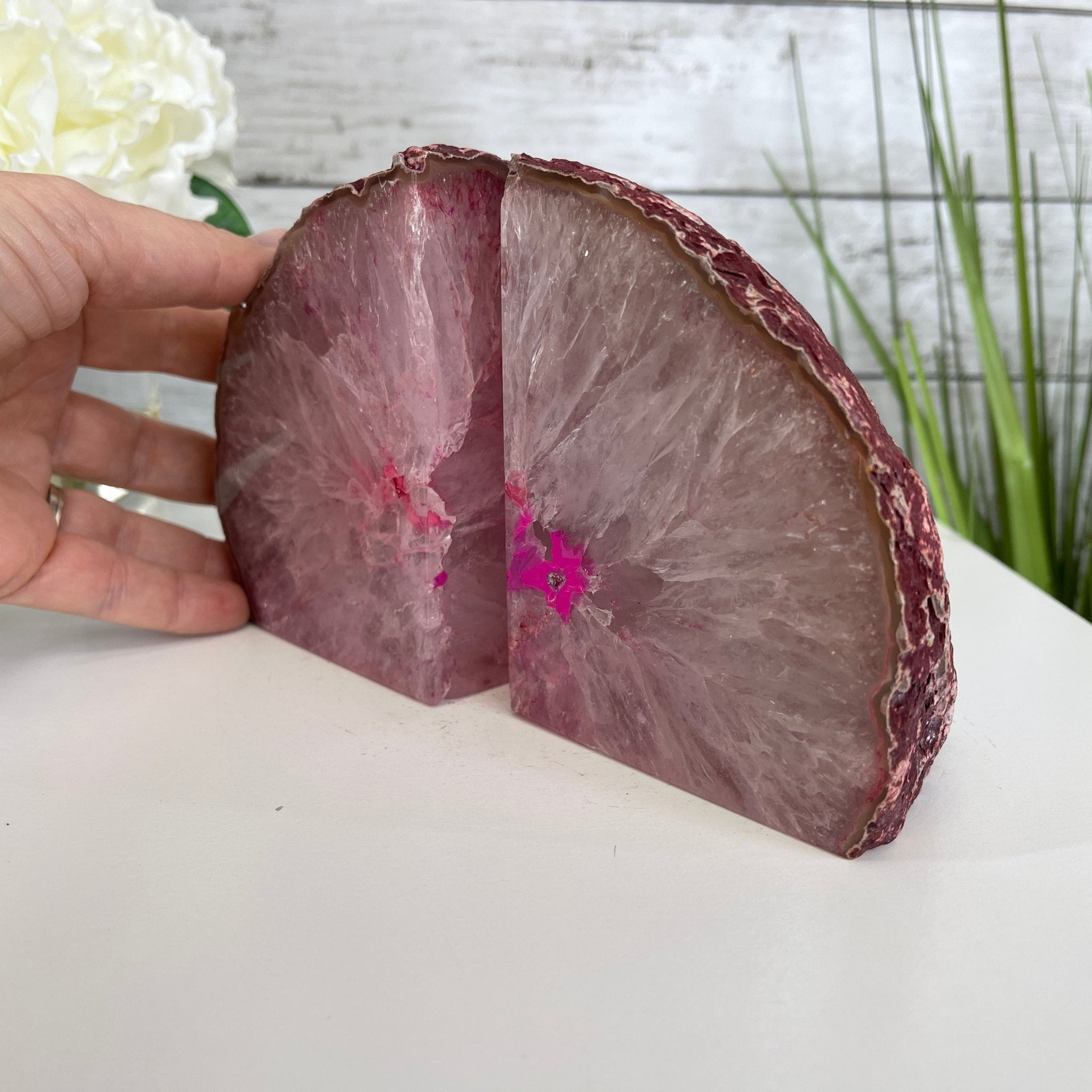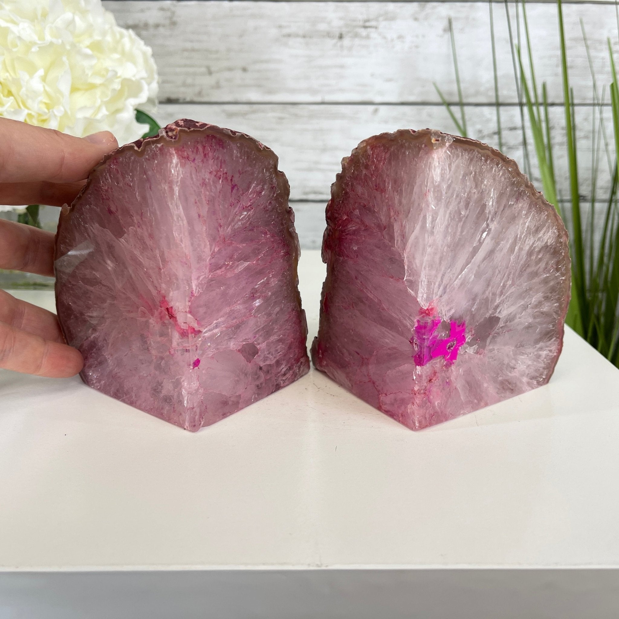 Pink Dyed Brazilian Agate Stone Bookends, 6 lbs & 4.5" Tall #5151-0023