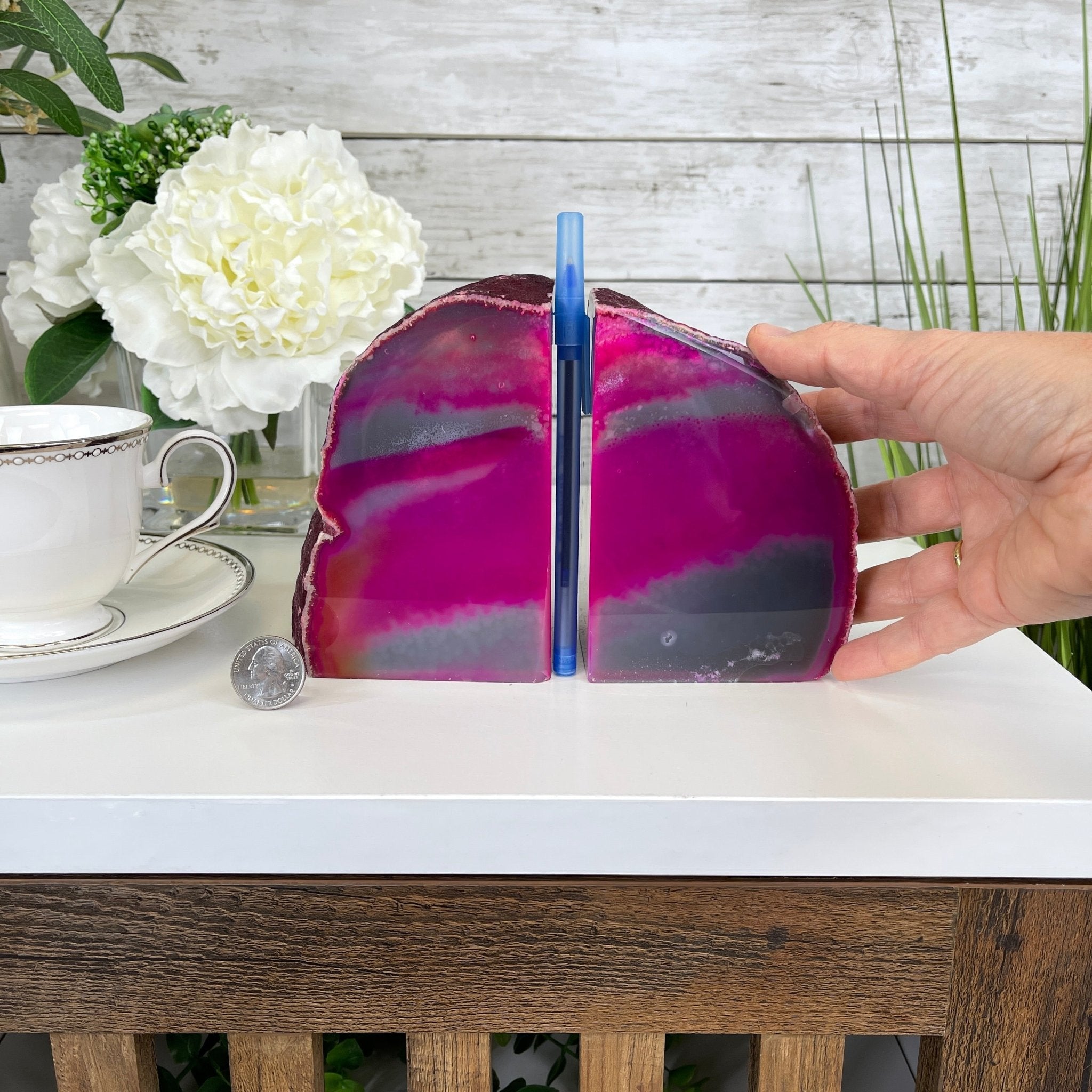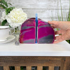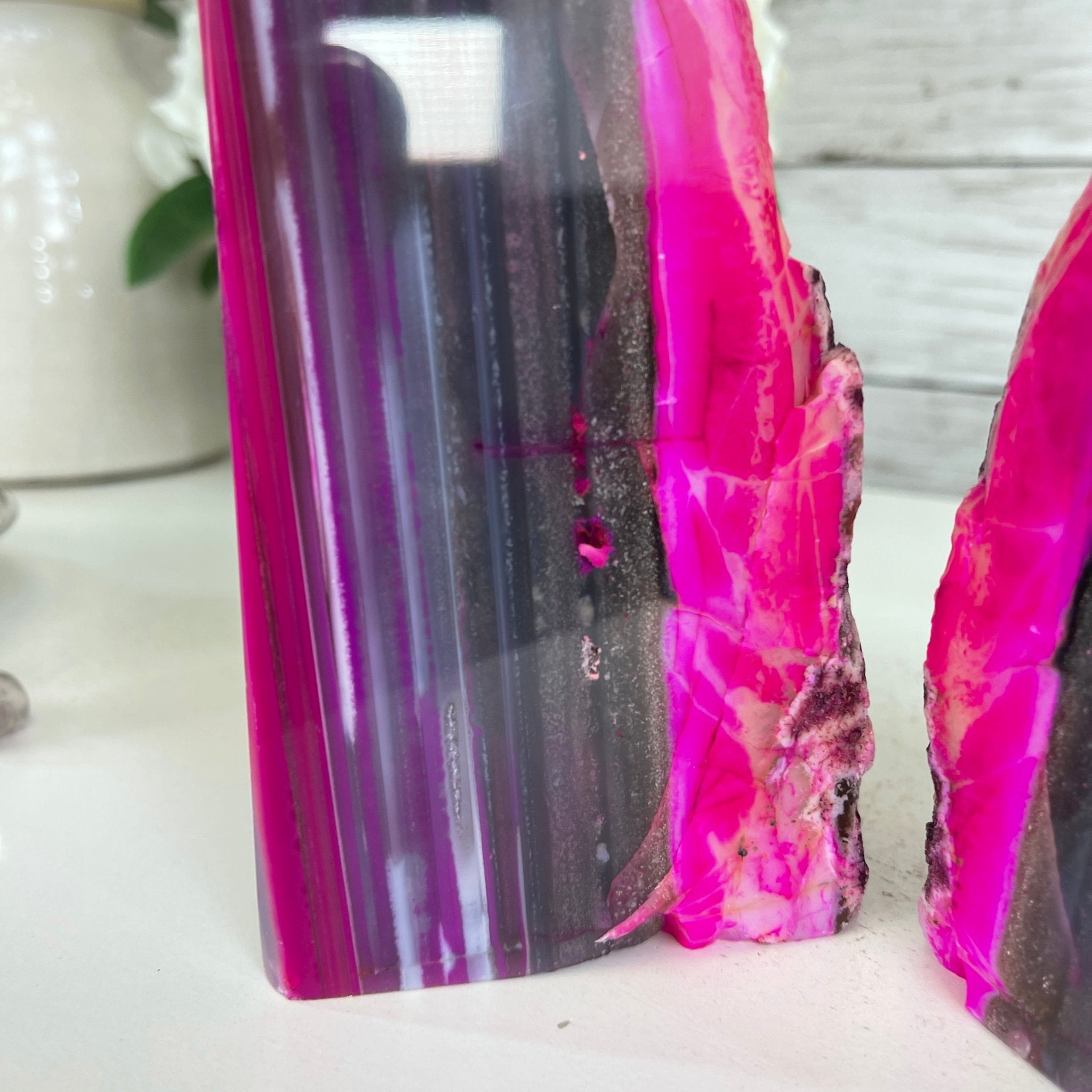Pink Dyed Brazilian Agate Stone Bookends, 6.2 lbs & 5.2" Tall #5151-0024