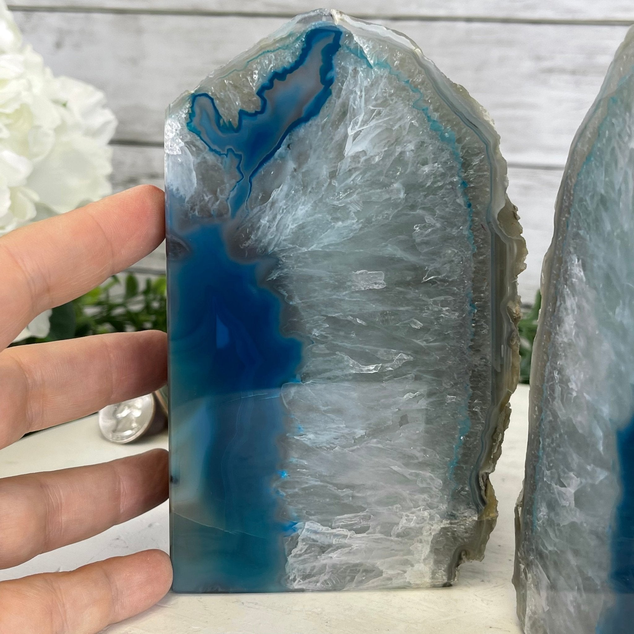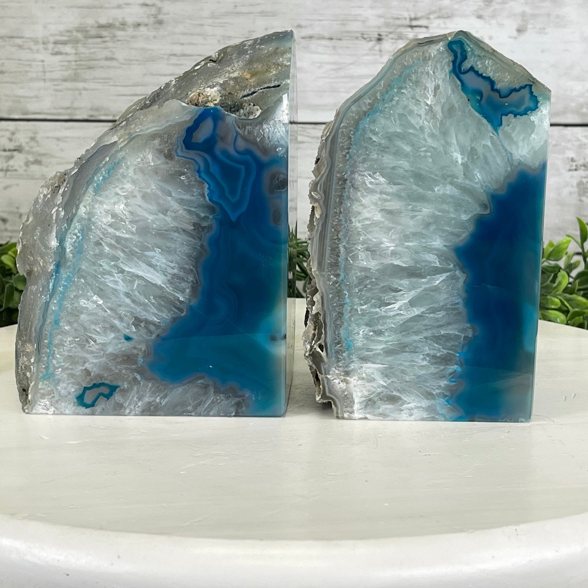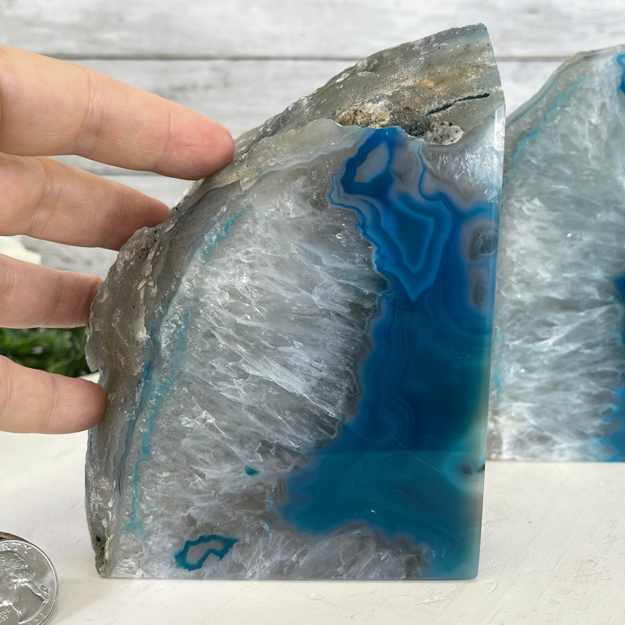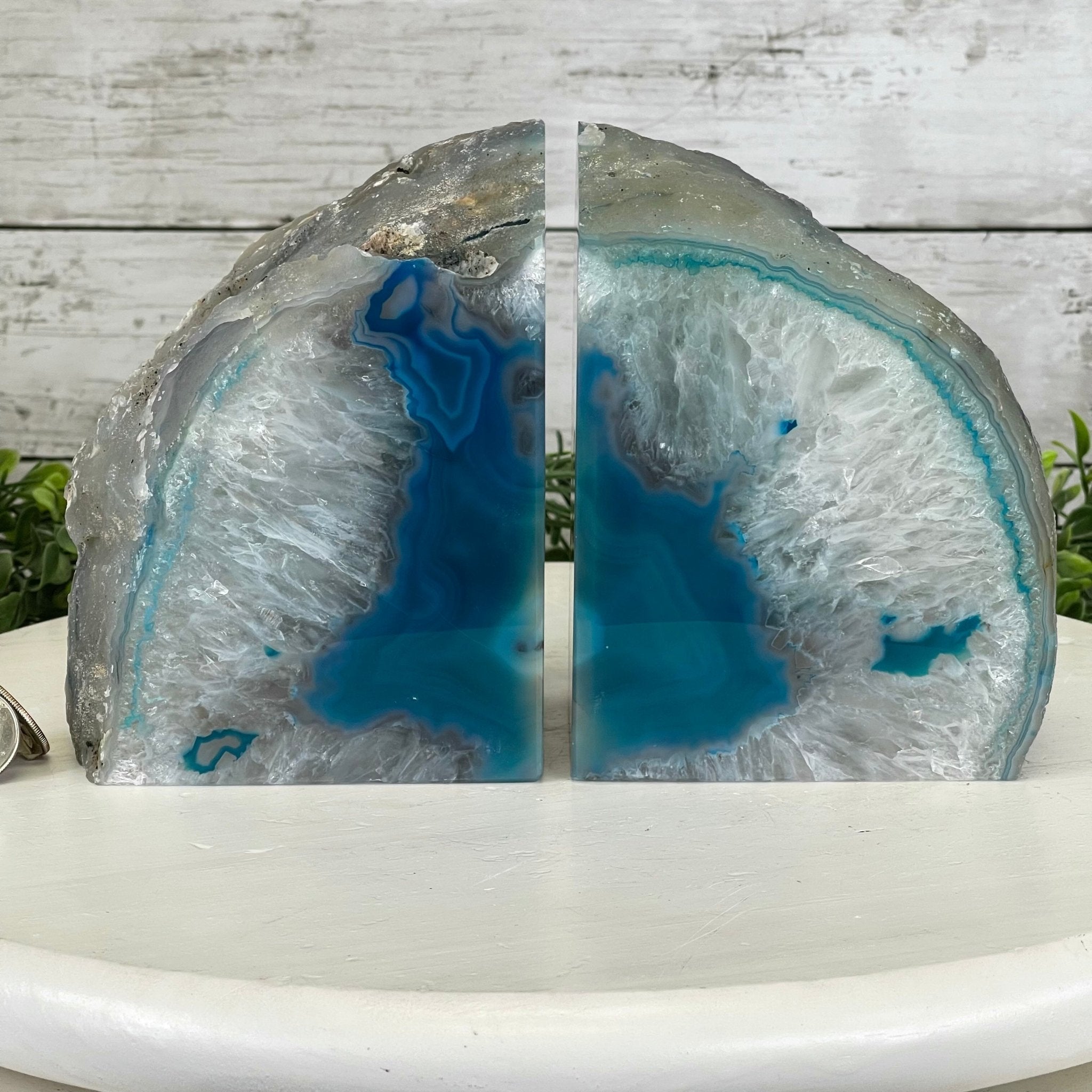 Teal Dyed Brazilian Agate Stone Bookends, 11.5 lbs & 5.8" Tall #5151TL-022
