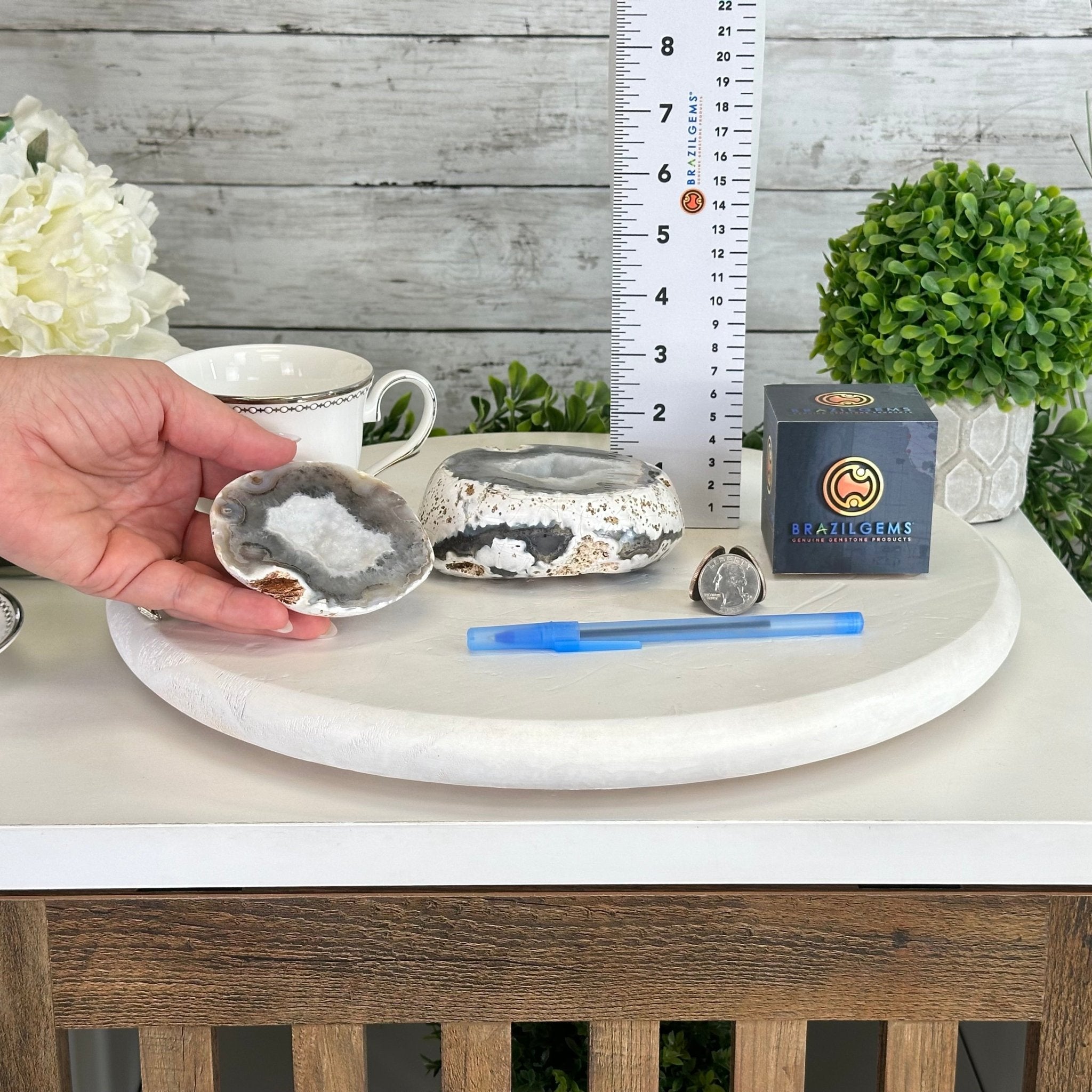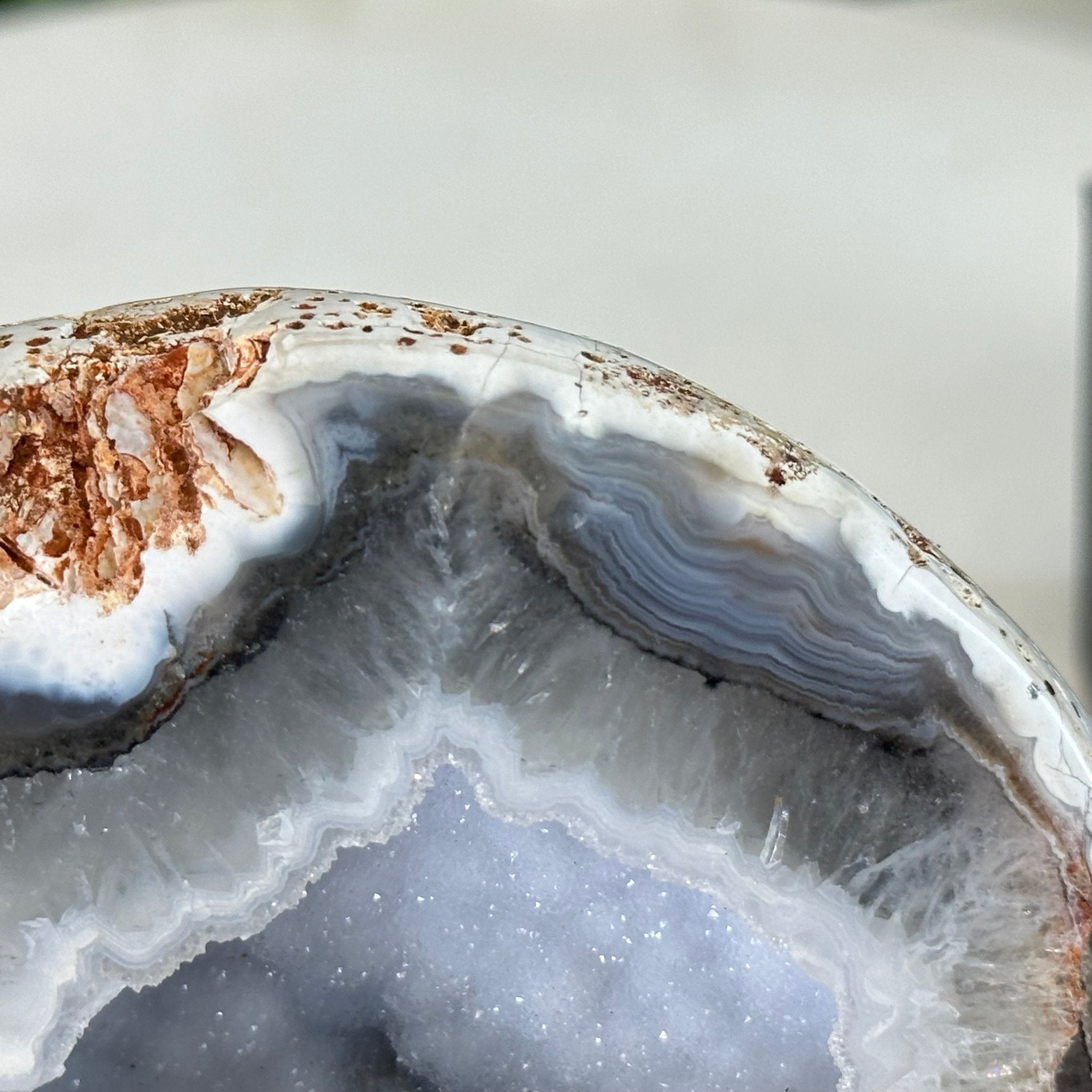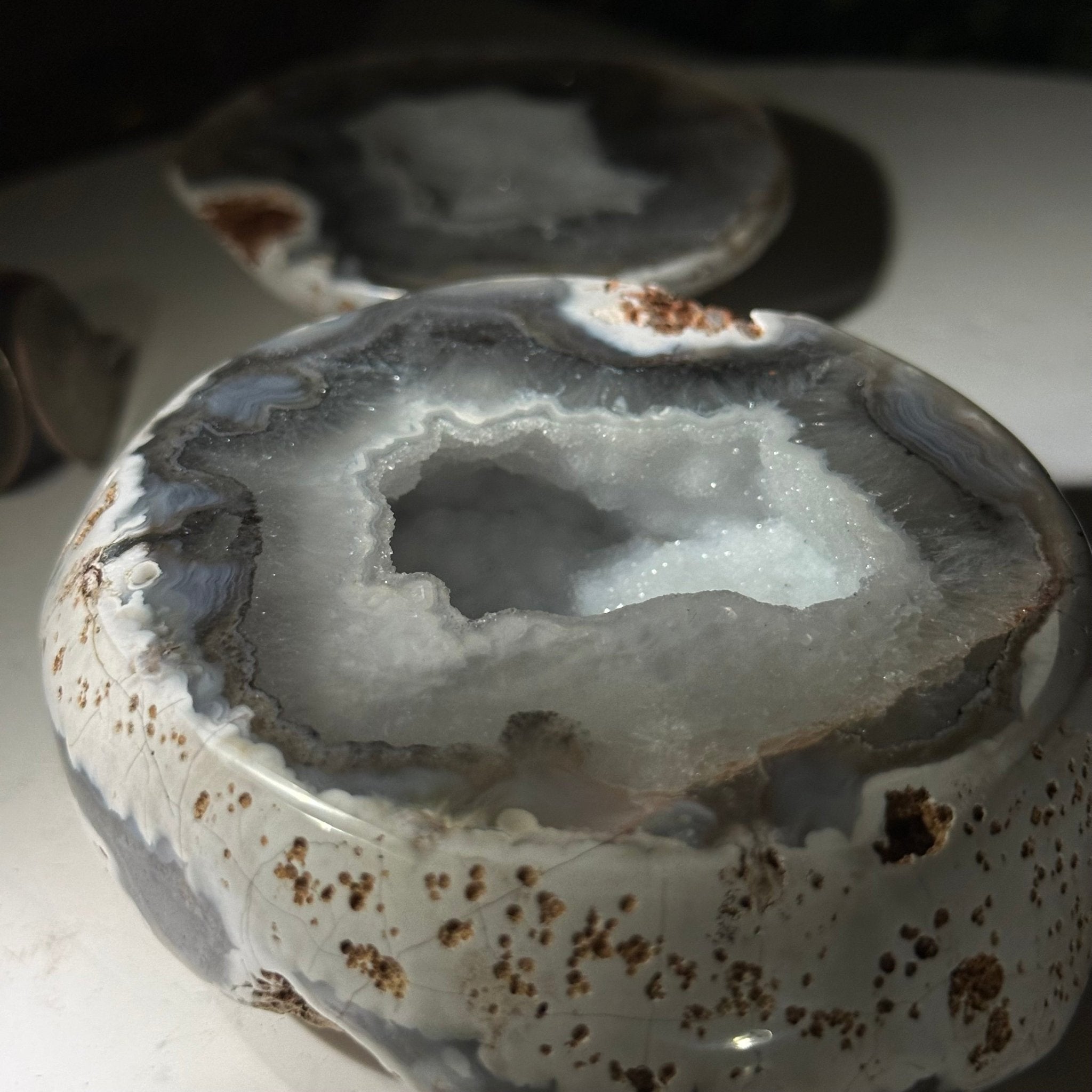 Brazil Gems® brings you this Polished Brazilian Agate Geode "Jewelry Box". It is a whole agate gemstone cut into two pieces with the lid not attached to the geode. The natural outer shell looks as amazing as the crystals inside.
