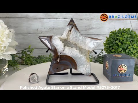 This is a polished Brazilian Agate Geode perfectly handcrafted into the shape of a Star then placed on a black metal stand. With its polished edges and natural crystals shining through you'll enjoy this piece for years to come.