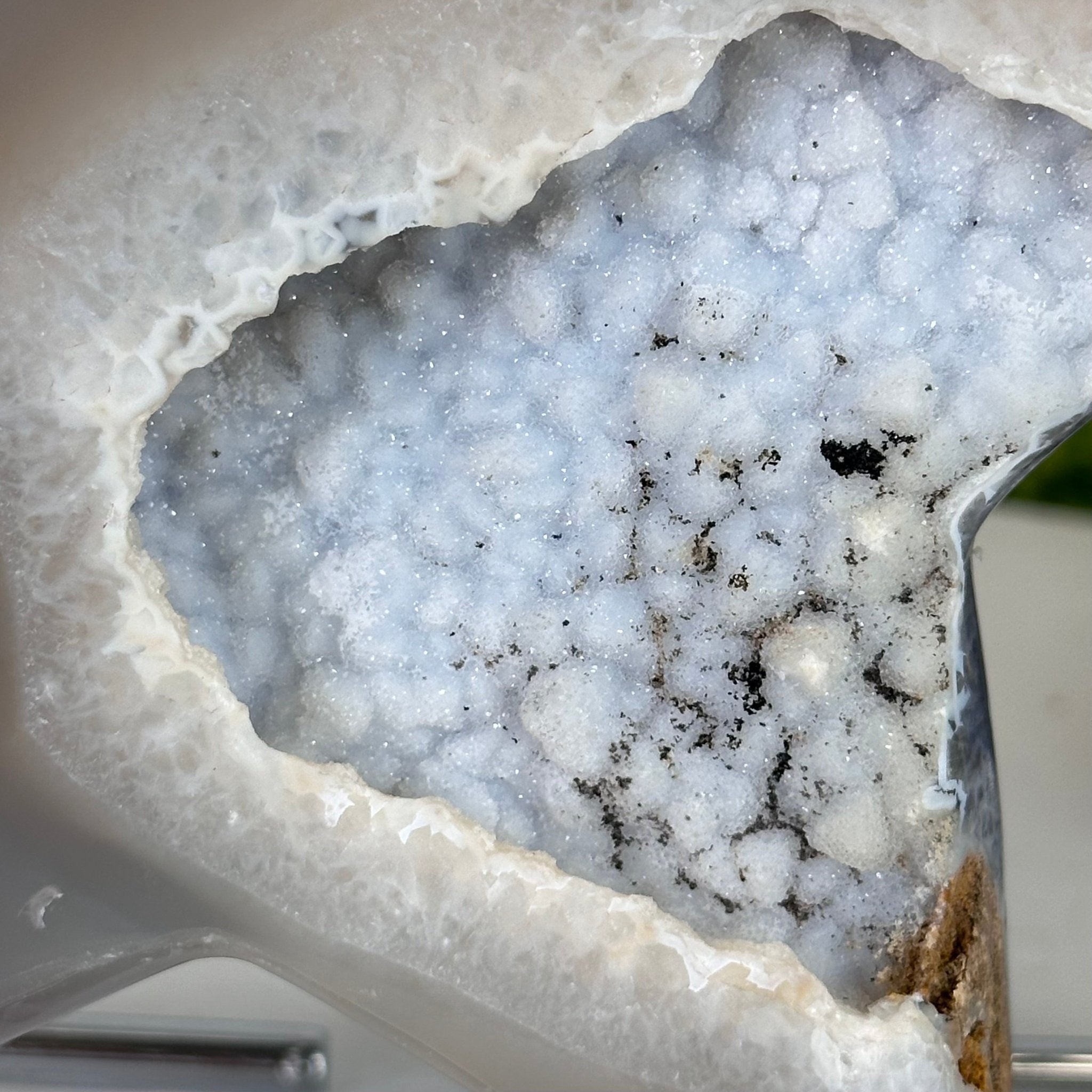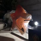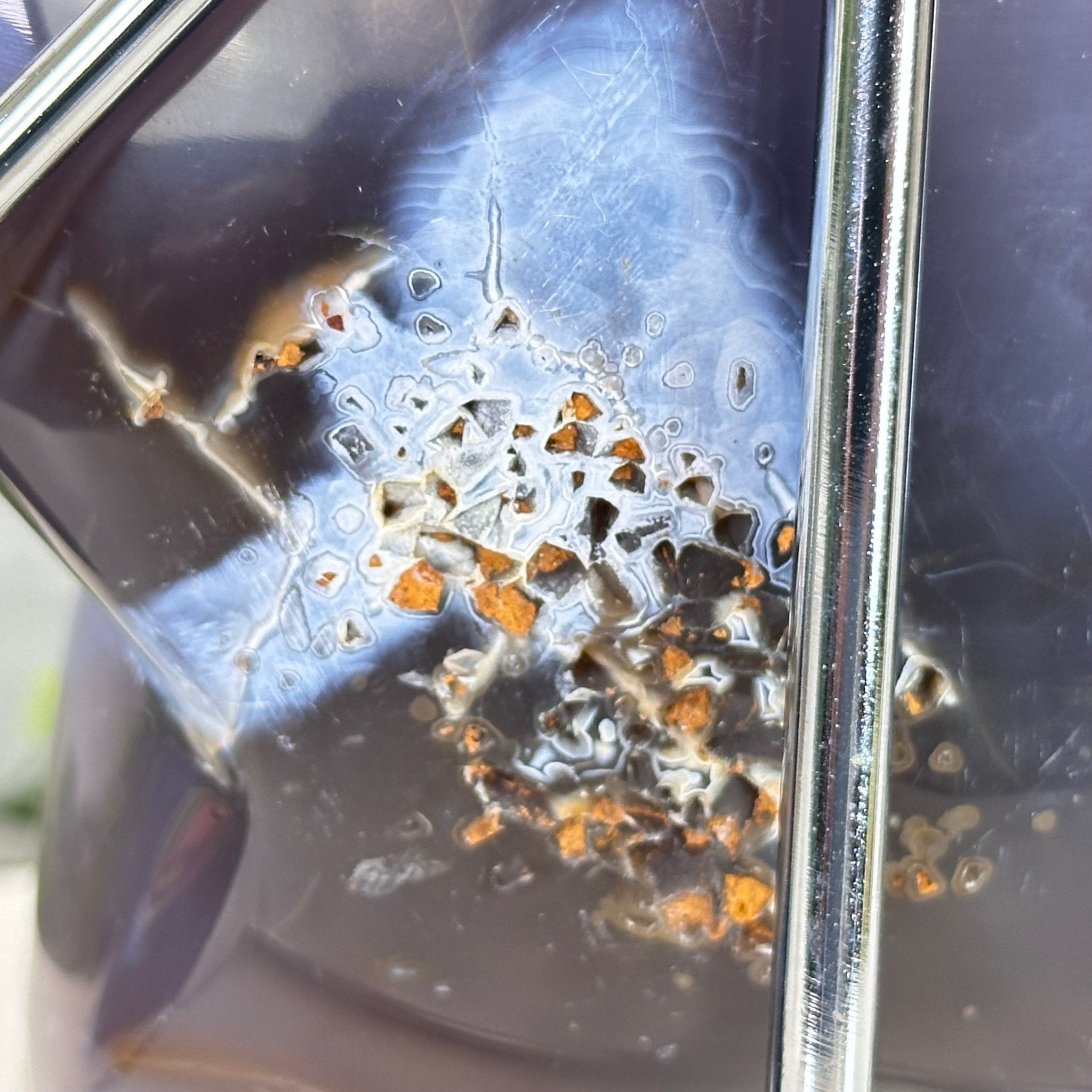 Disclaimer: This is a natural gemstone sold as is and as you see it in its images and video. It is the exact piece you will receive. It may contain natural imperfections and/or imperfections, broken edges and scratches from the extraction, polishing, prepping and mounting processes. The metal stand has been hand welded to fit this exact piece. Light not included. We take every effort to get measurements as exact as possible but they are done by human hands & eyes and therefore may have minor discrepancies.