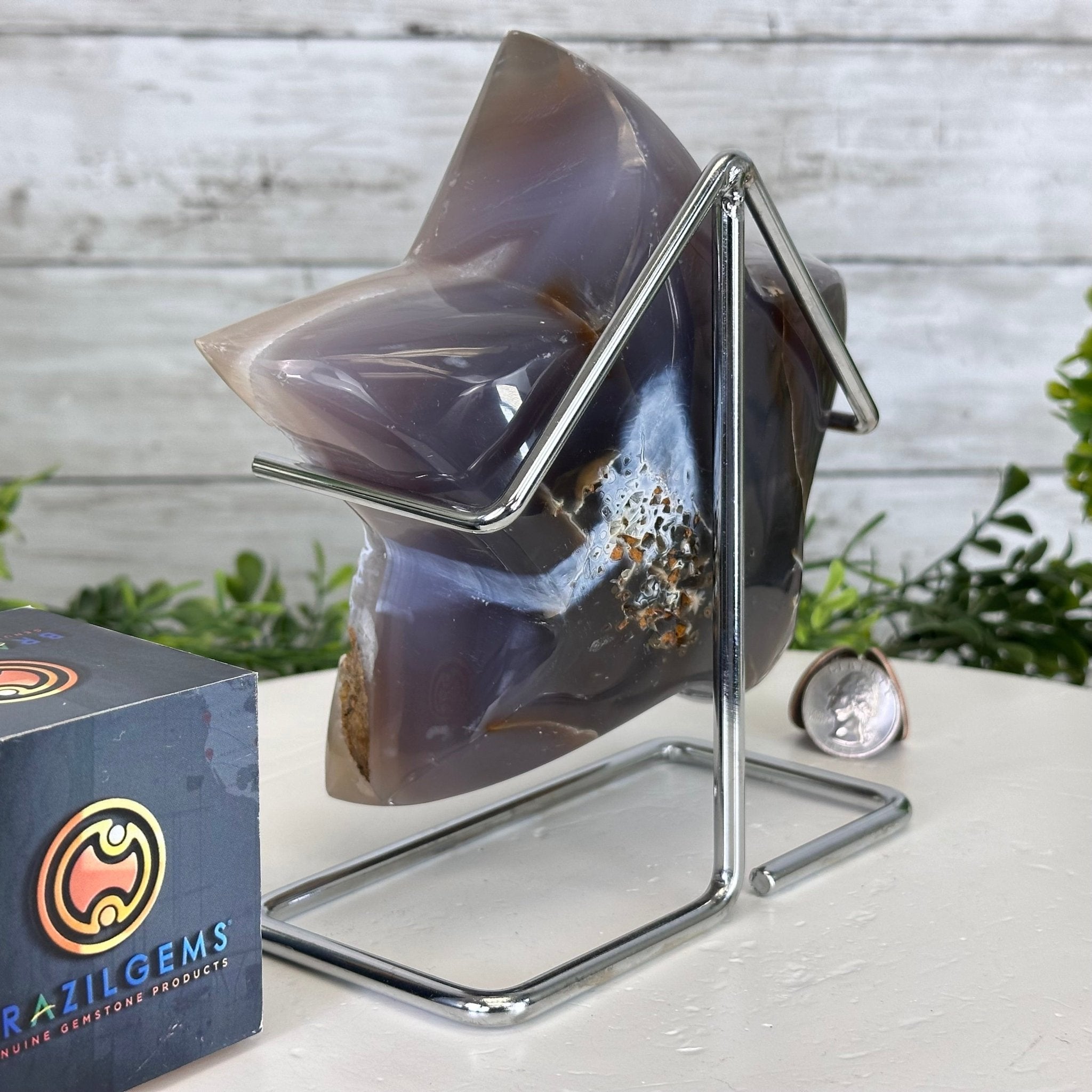 Polished Agate Star on a Metal Stand, 3.6 lbs & 6.7" Tall #5273-0020