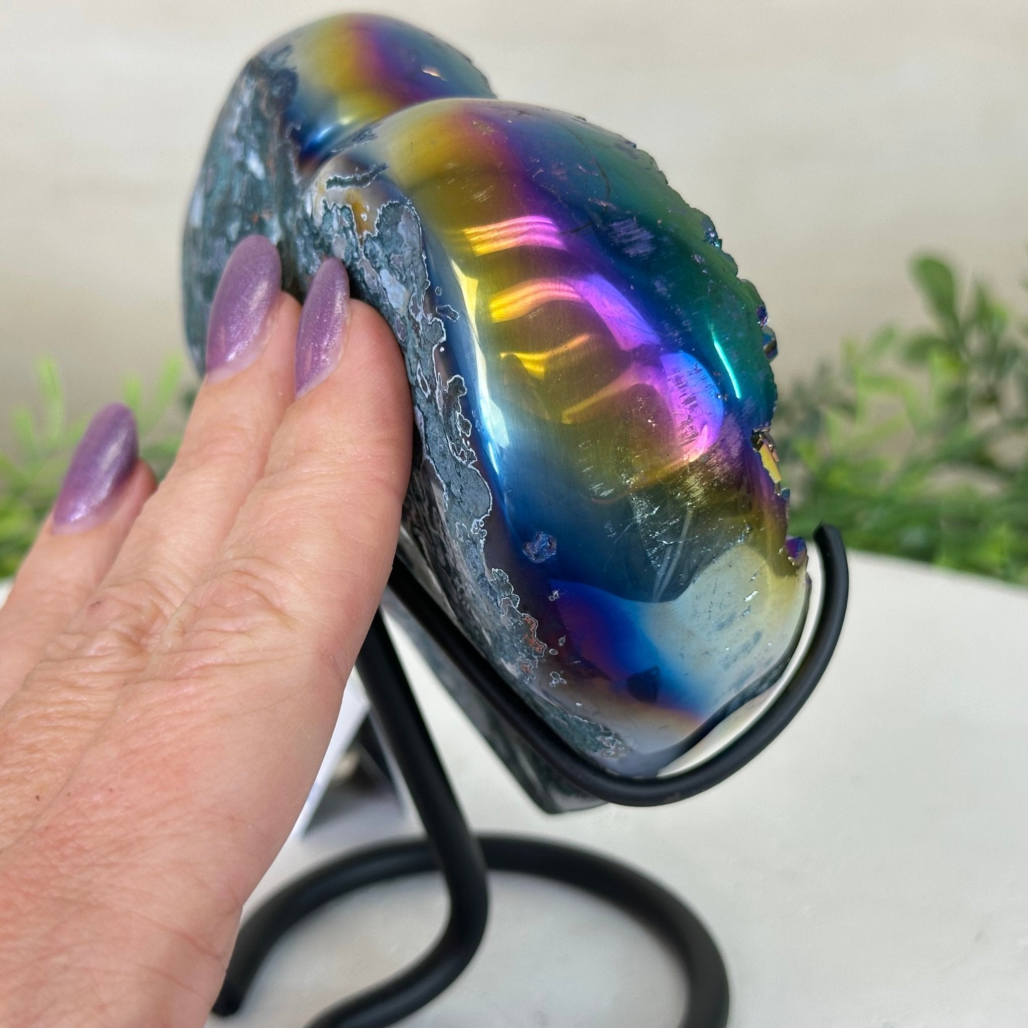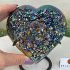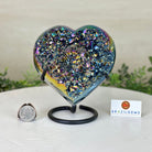 Rainbow Aura Quartz Heart on a Metal Stand, 2.2 lbs & 5.5" Tall #5463RA-059