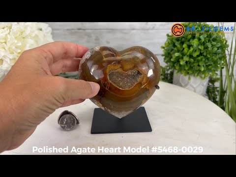Polished Agate Heart Geode on a Metal Stand, 2.2 lbs & 4.8" Tall, Model #5468-0029 by Brazil Gems