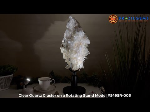 A testament to nature's sublime artistry, this extraordinary Brazilian Super Quality Clear Quartz Cluster by Brazil Gems® will boost your crystal collection to new heights. Elevated upon an elegant rotating metal foundation, its commanding presence and radiant crystalline formations instantly captivate the observer's gaze. Each transparent facet reveals an intricate tableau of geological phenomena—a silent narrative of Earth's patient craftsmanship over countless millennia.