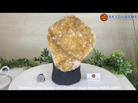 This premium Brazilian Citrine Druze Cluster by Brazil Gems® has a sturdy cement base, showcasing rich amber tones and nicely formed crystal points. A perfect piece to display in a shelf or desk.
