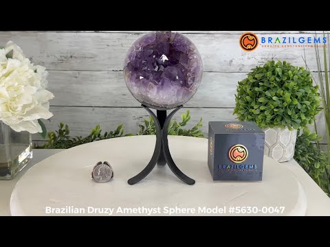 Brazil Gems® brings you this Brazilian Druzy Amethyst Sphere on a black metal stand. Beautifully crafted from a larger geode, this polished piece will become a conversation starter every single time.