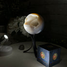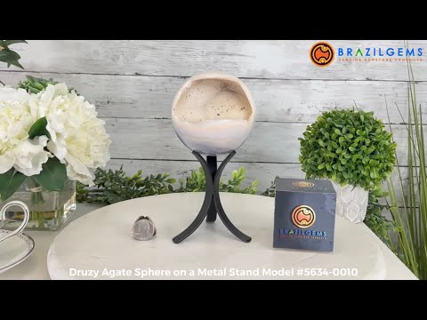 Discover the sophistication of this Brazilian Druzy Agate Sphere on a black metal stand by Brazil Gems®. Beautifully crafted from a larger geode, this polished piece will become a conversation starter every single time.