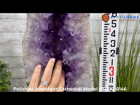 Large Extra Plus Quality Polished Brazilian Amethyst Cathedral, 157 lbs & 50.6” Tall Model #5602-0146 by Brazil Gems