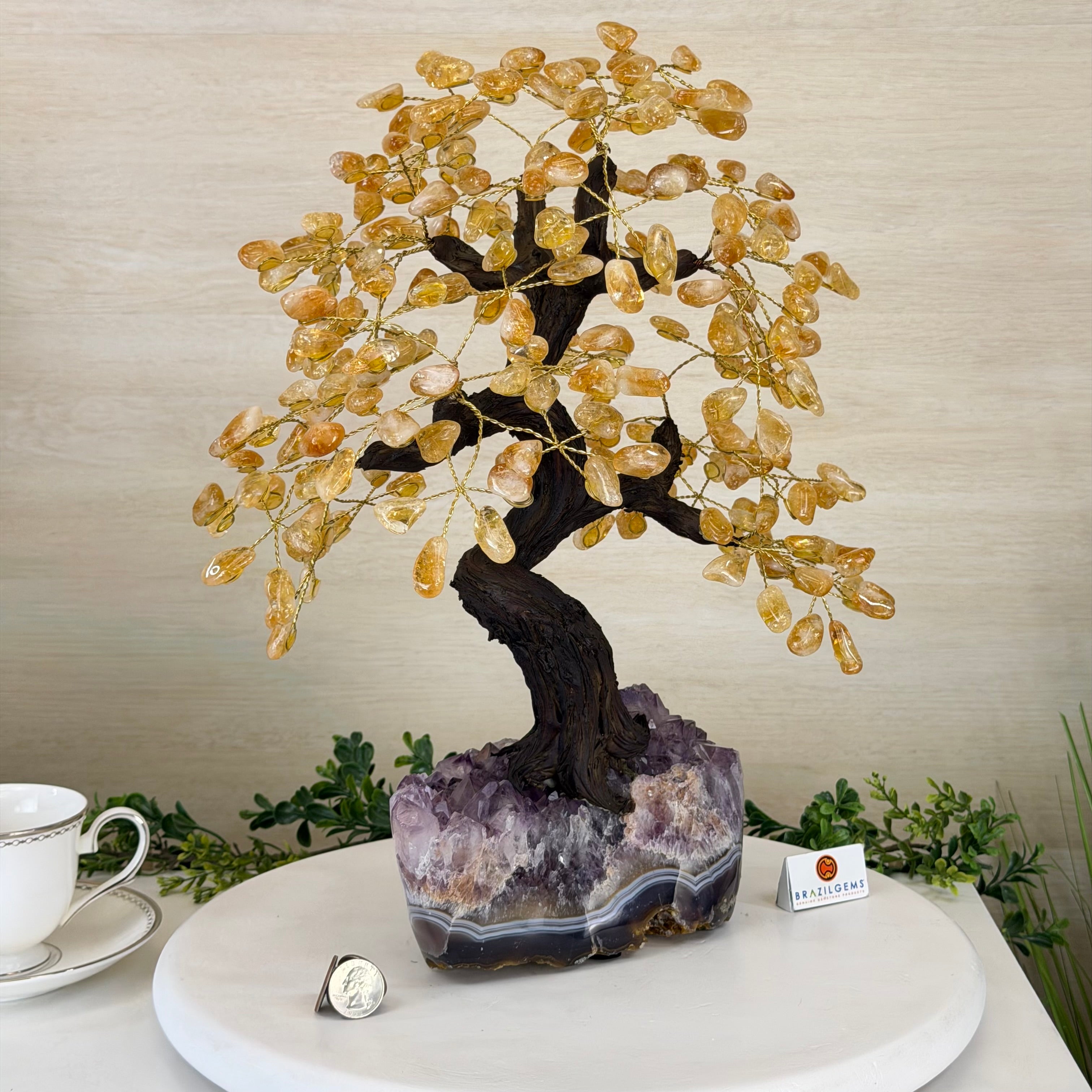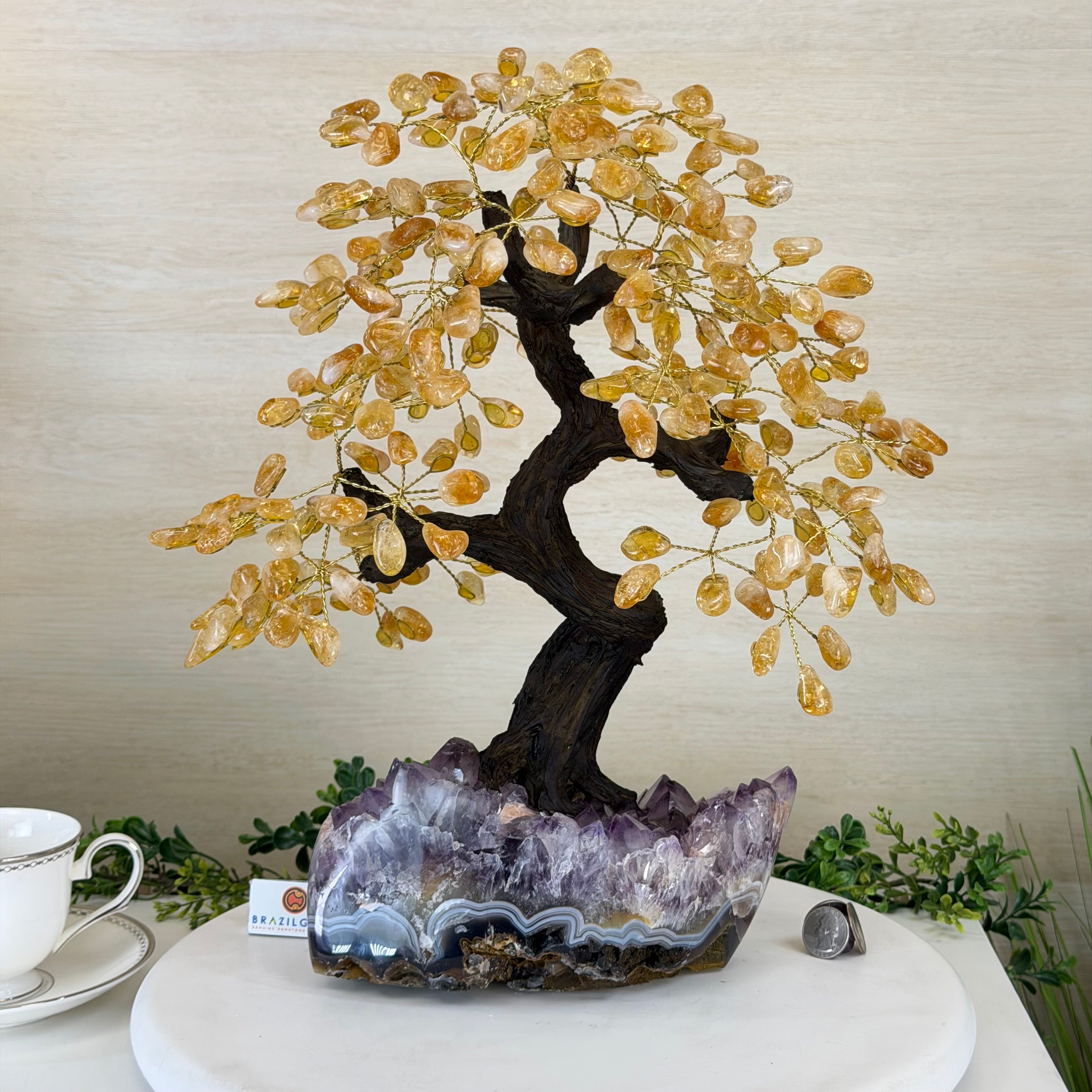 Much of the Citrine in circulation today from Brazil were originally Amethysts that have been heated in kilns. The process mimics and speeds up the naturally occurring process that geo-thermal heat hadn't yet had a chance to do which is to give these gemstones their beautiful range of amber colors.