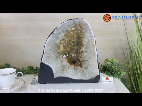 Enhance your home decor with this Standard Plus Quality Brazilian Citrine Cathedral by Brazil Gems®. It boosts nicely shaped amber color crystal points with a white crystals band along the edges.