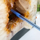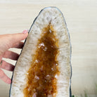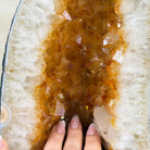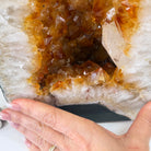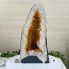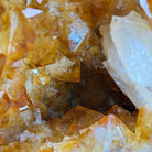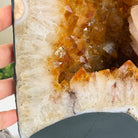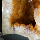 This impressive Extra Plus Quality Brazilian Citrine Cathedral Geode, features radiant golden-amber crystals will enhance your favorite space. This geode displays sparkling citrine points and distinctive white crystal bands along the outer edges, creating a dramatic natural contrast.